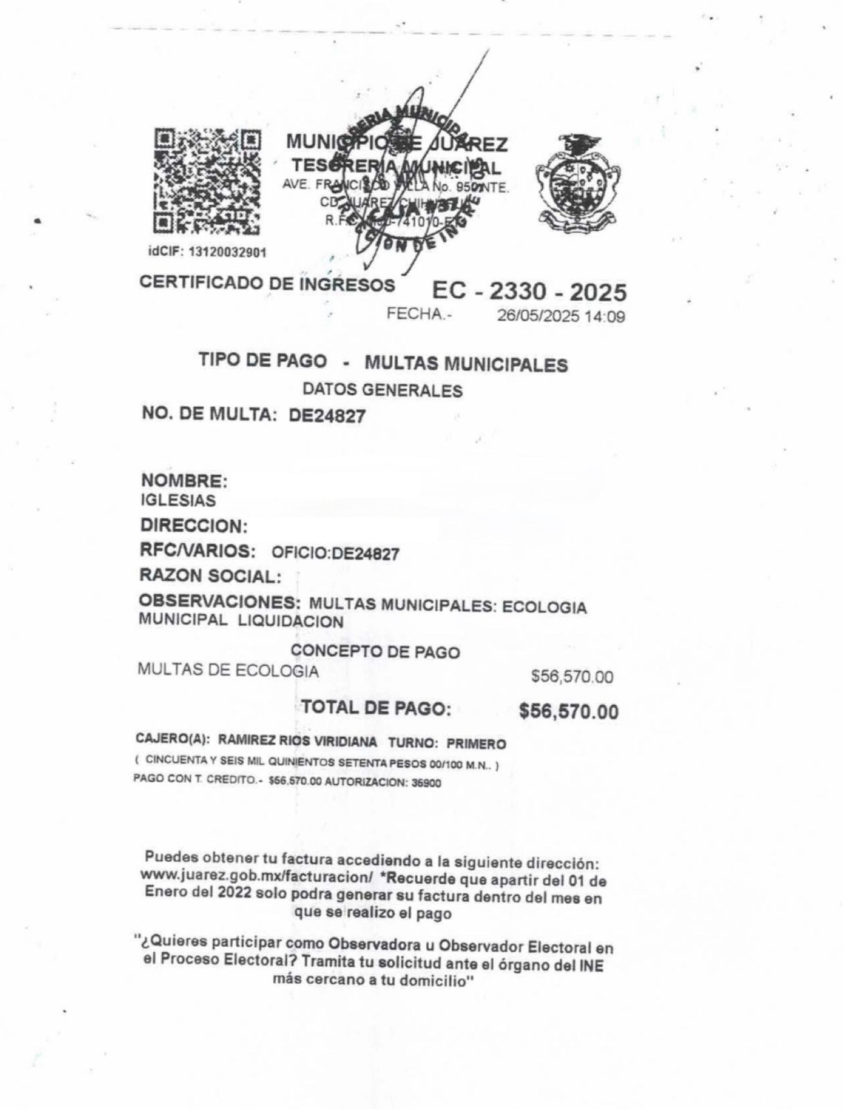 Funcionarios municipales tuvieron este día una reunión con los representantes de la empresa que retiró varios árboles del camellón en la avenida Ejército Nacional, quienes hoy mismo pagaron la sanción de 500 UMAS, que equivalen a 56 mil 570 pesos.