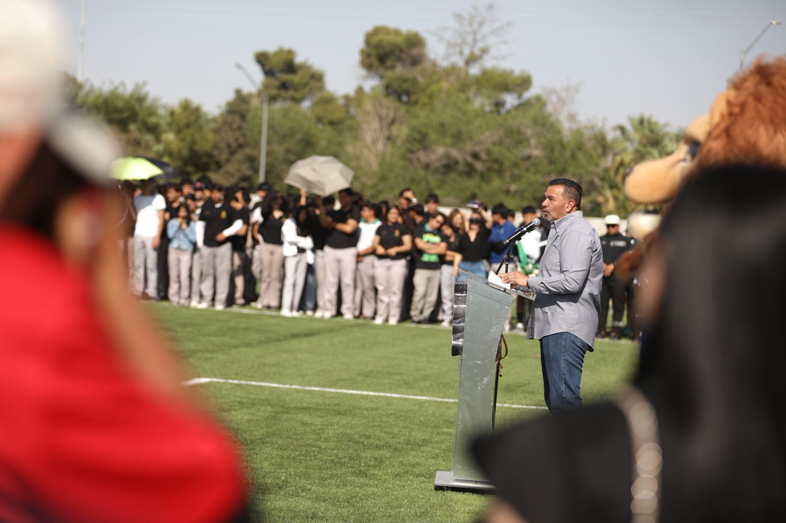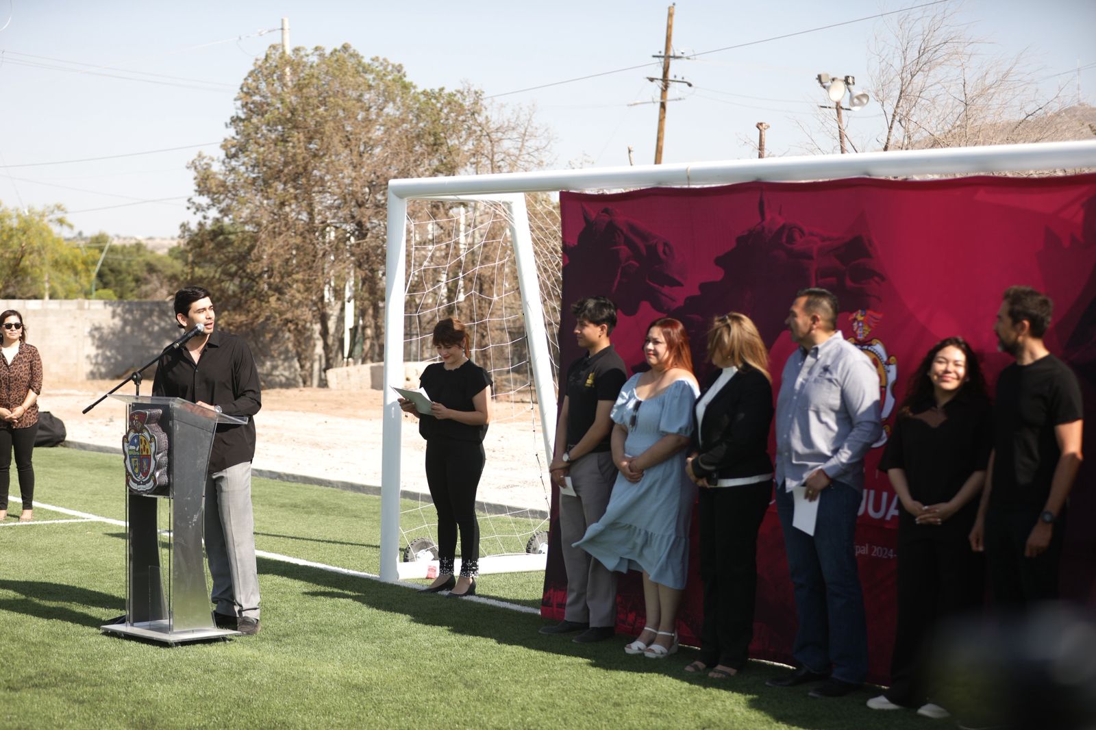 Este día, el Presidente Municipal, Cruz Pérez Cuéllar, entregó la cancha de fútbol rápido a los alumnos del Colegio de Bachilleres 19, ubicado en la Zona de El Chamizal.