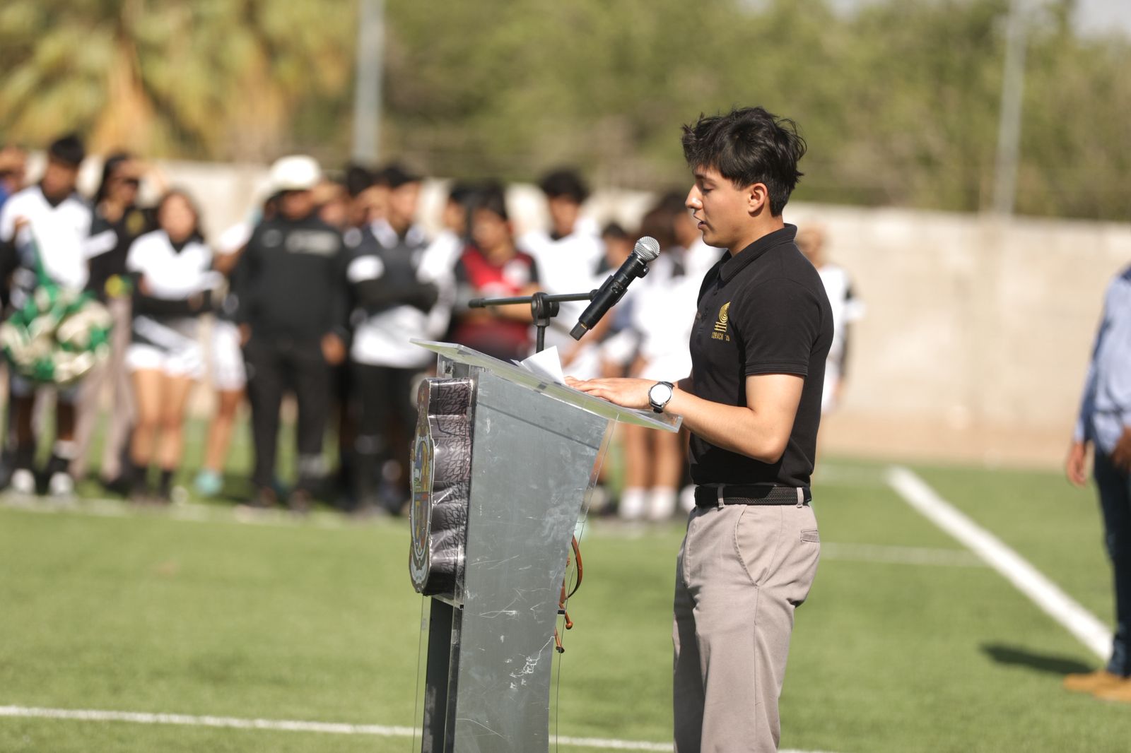 En representación de los alumnos del Colegio de Bachilleres 19, Gabriel Muñoz Mercado, dio unas palabras de agradecimiento al Presidente Pérez Cuéllar.