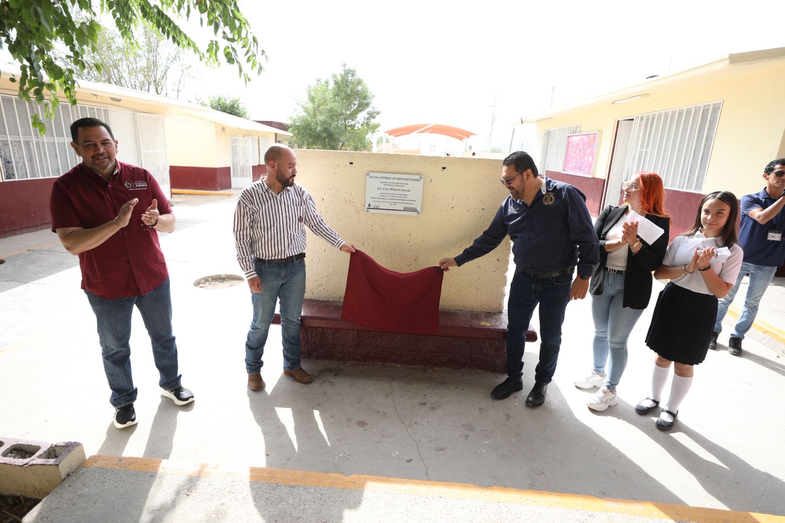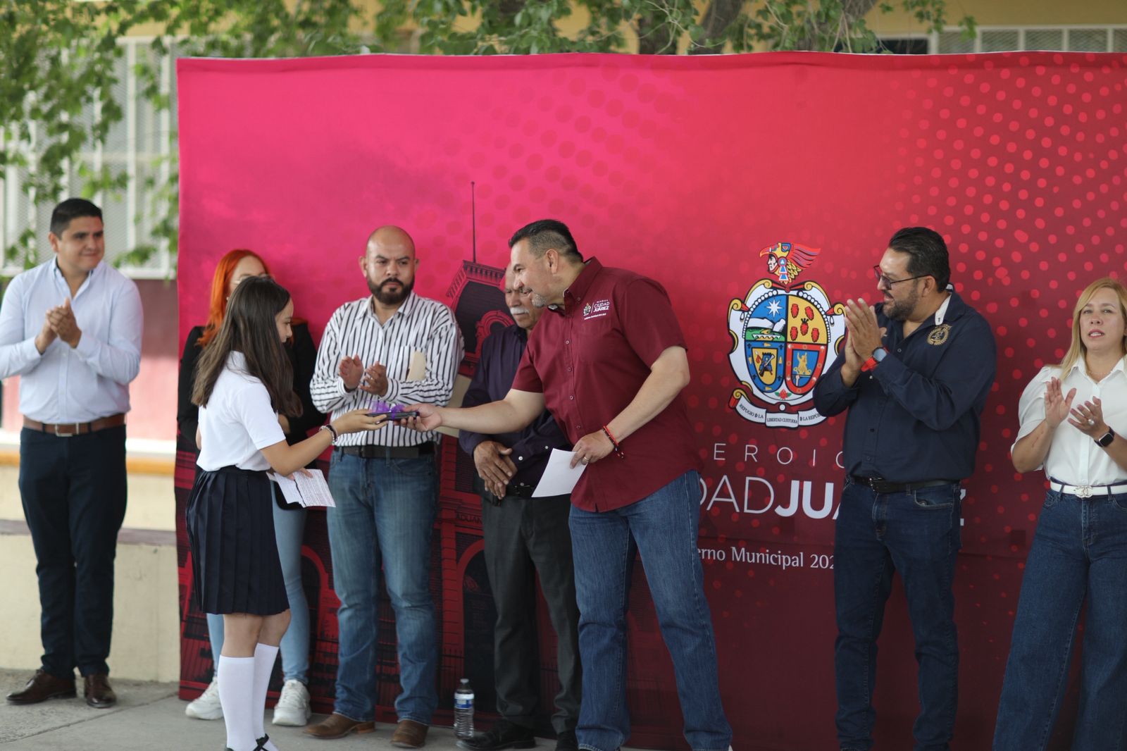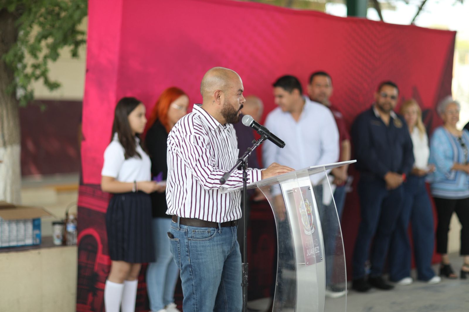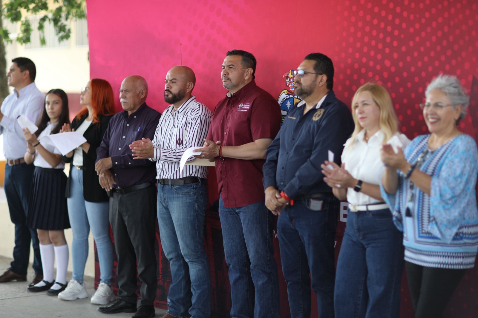 Acudieron a la entrega el coordinador de Infraestructura Educativa del Municipio, Ismael Rueda; el director de Educación, Guillermo Alvídrez; el regidor Jorge Marcial Bueno; la Síndica Municipal, Ana Carmen Estrada y el titular de Servicios Públicos, Arturo Rivera.