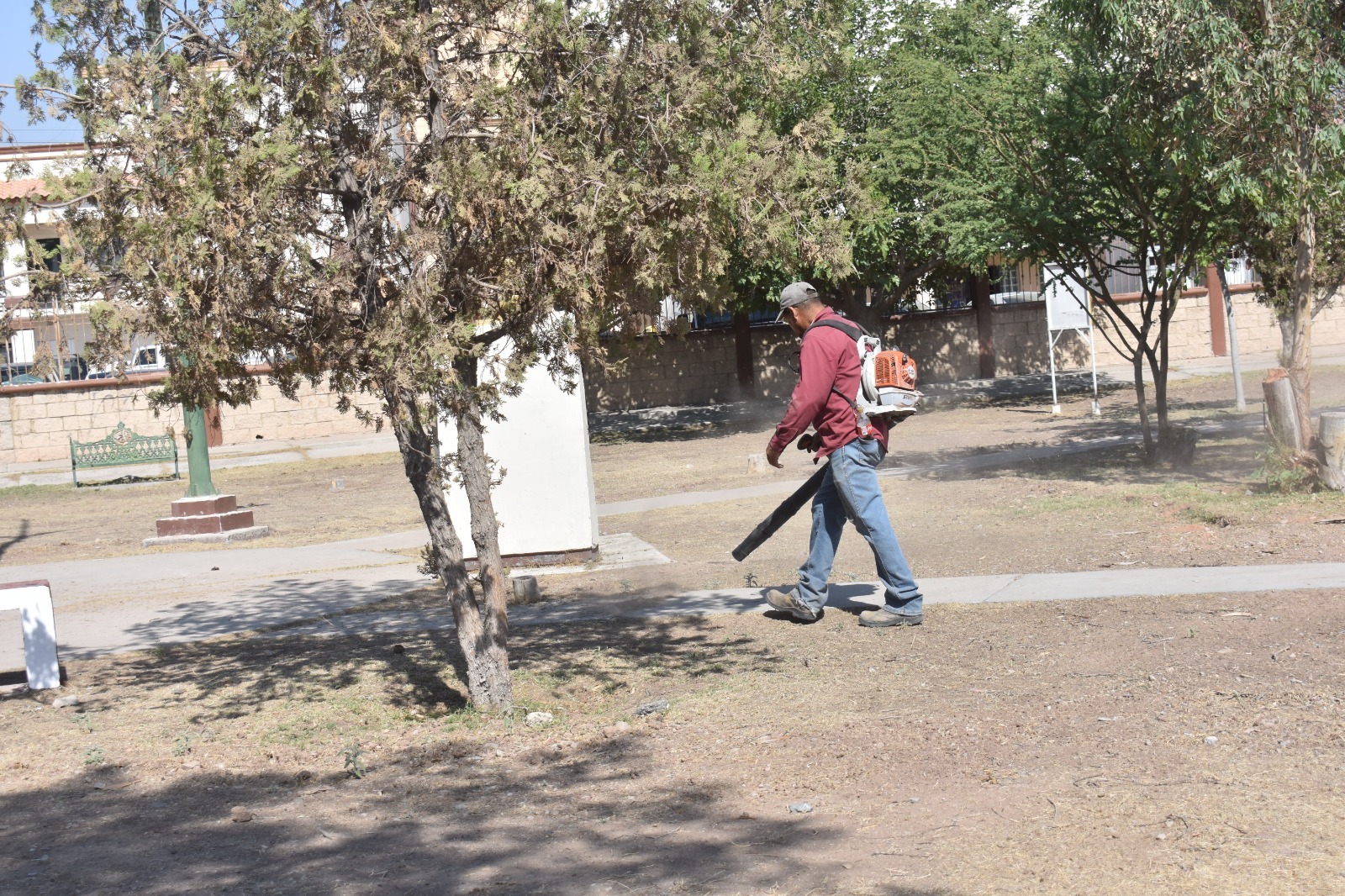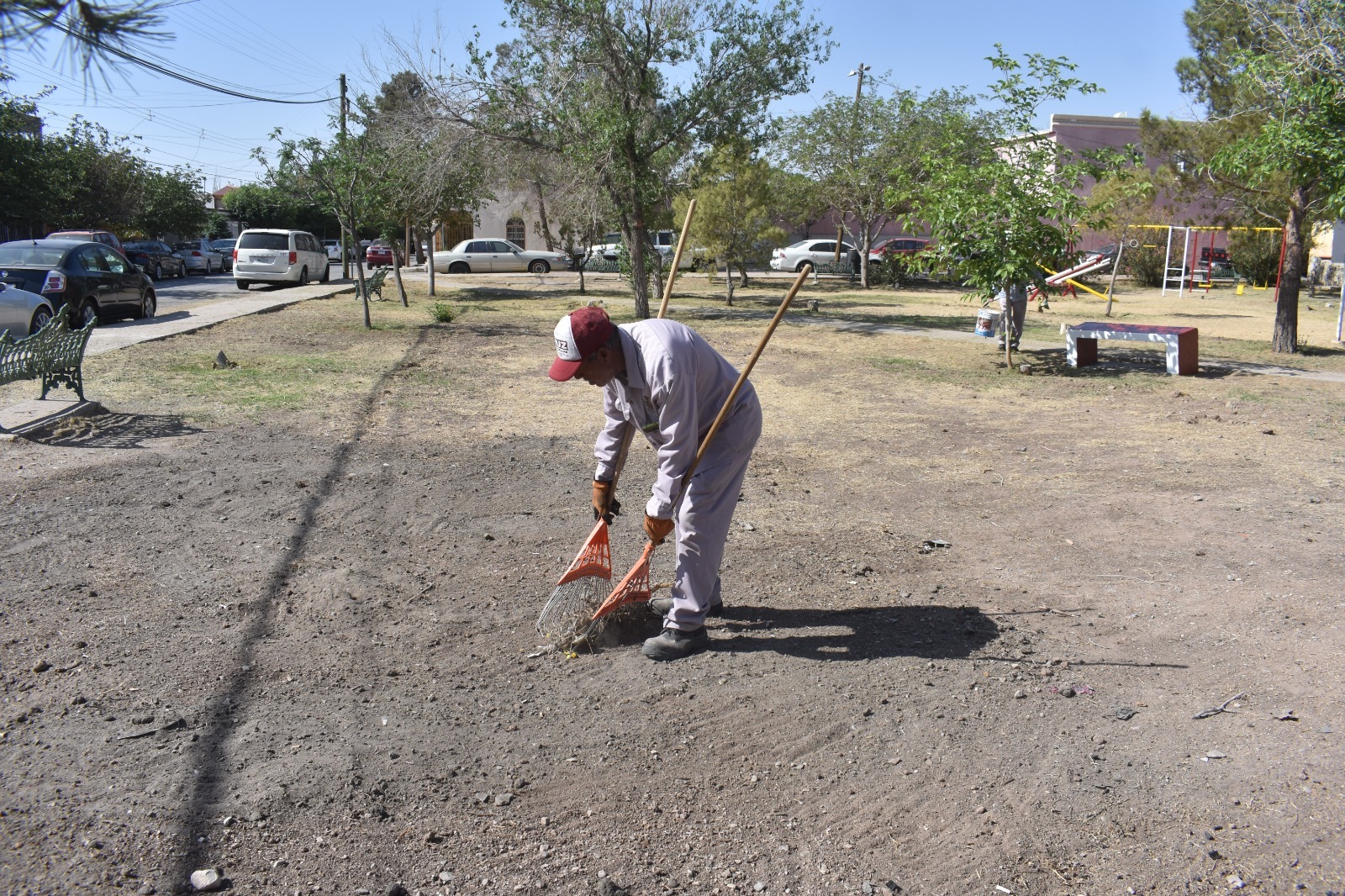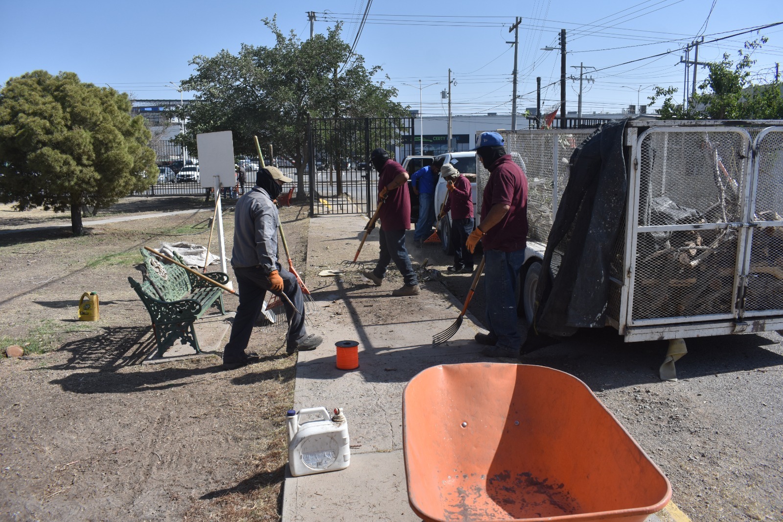 La Dirección de Parques y Jardines del Gobierno Municipal realiza labores de mantenimiento y reforestación en el parque de la Unidad Habitacional Benito Juárez, ubicada sobre la calle Camino Viejo a San José, como parte de las acciones derivadas del retiro de árboles en el camellón de la avenida Ejército Nacional.