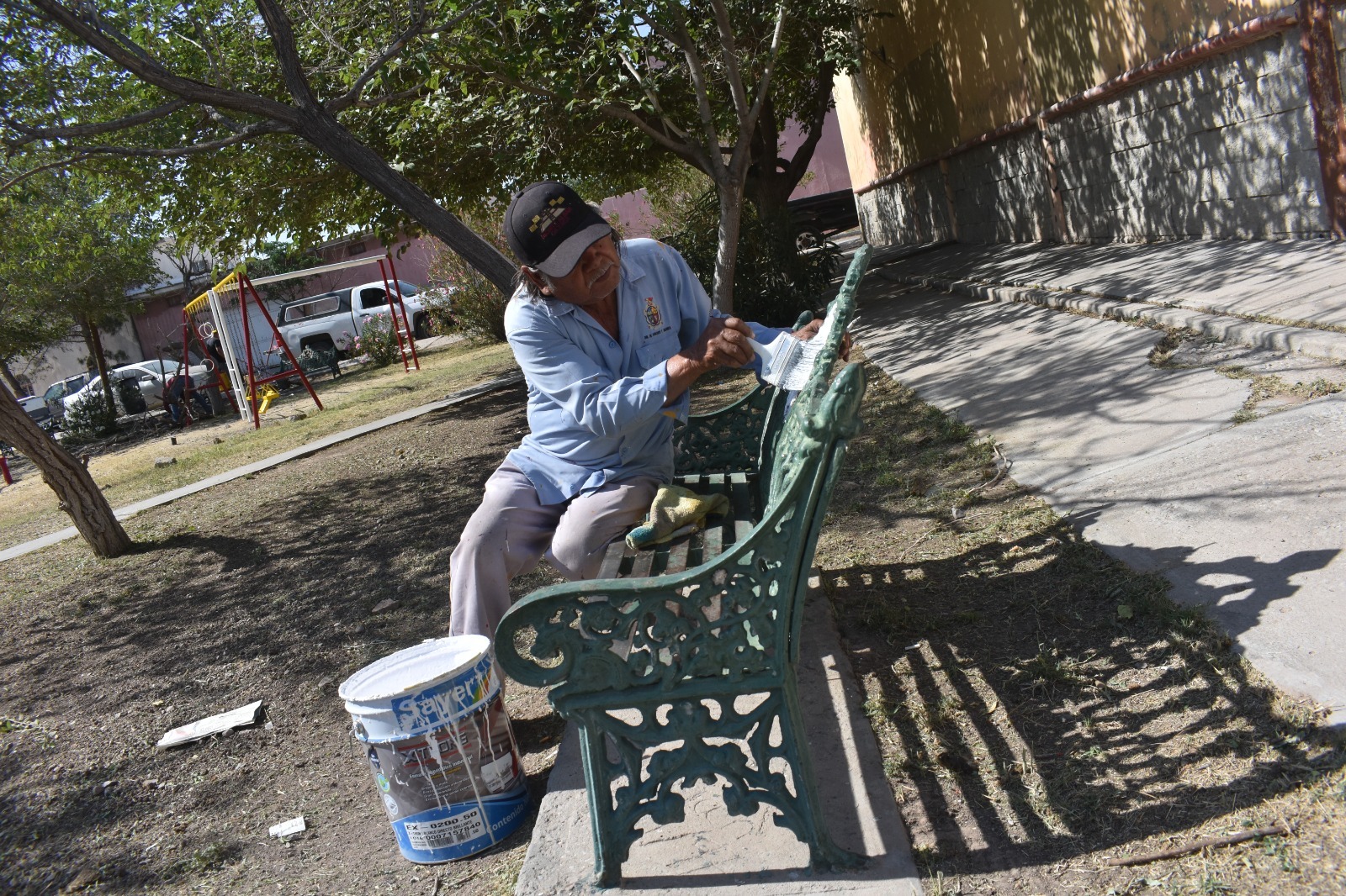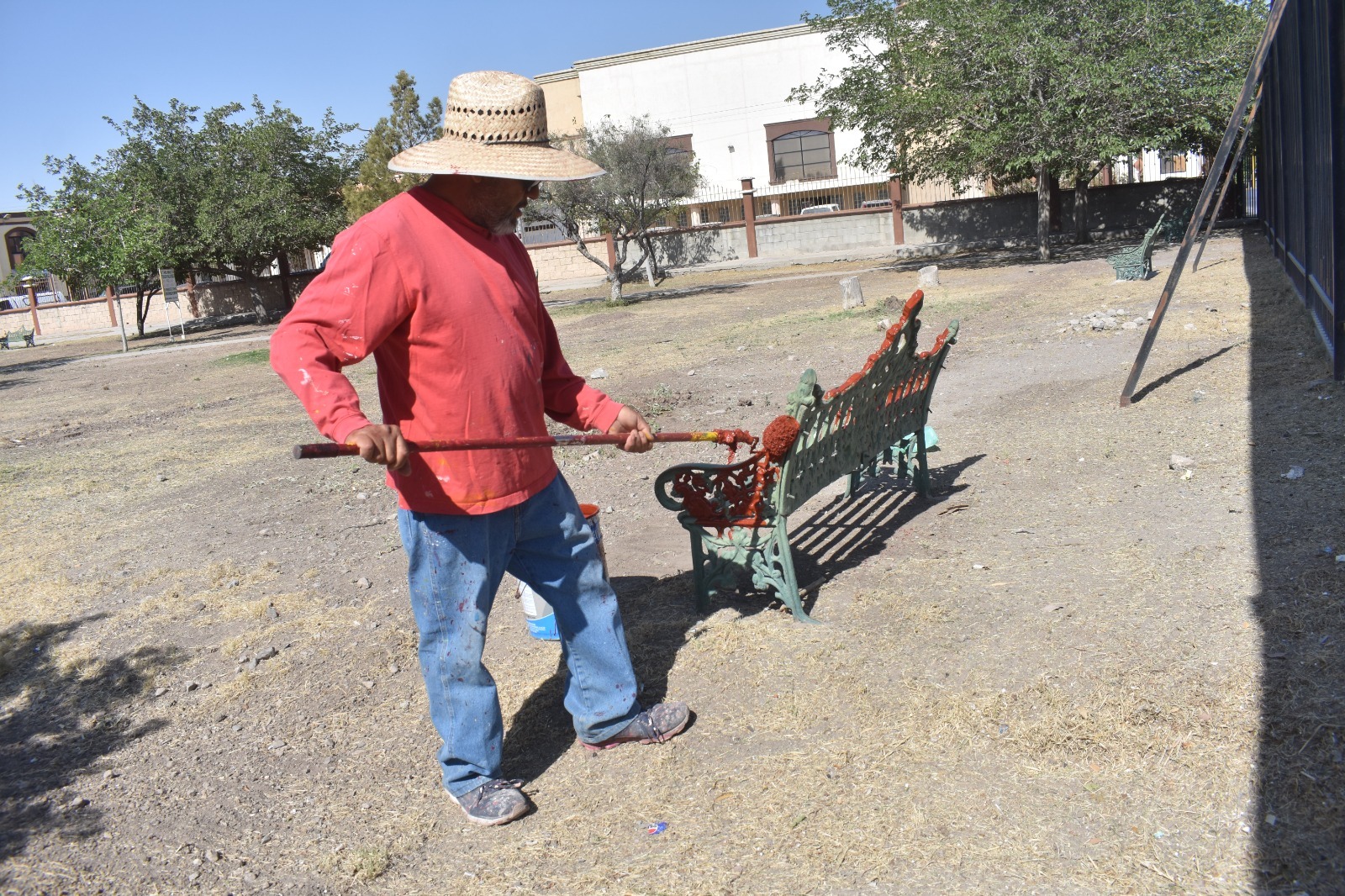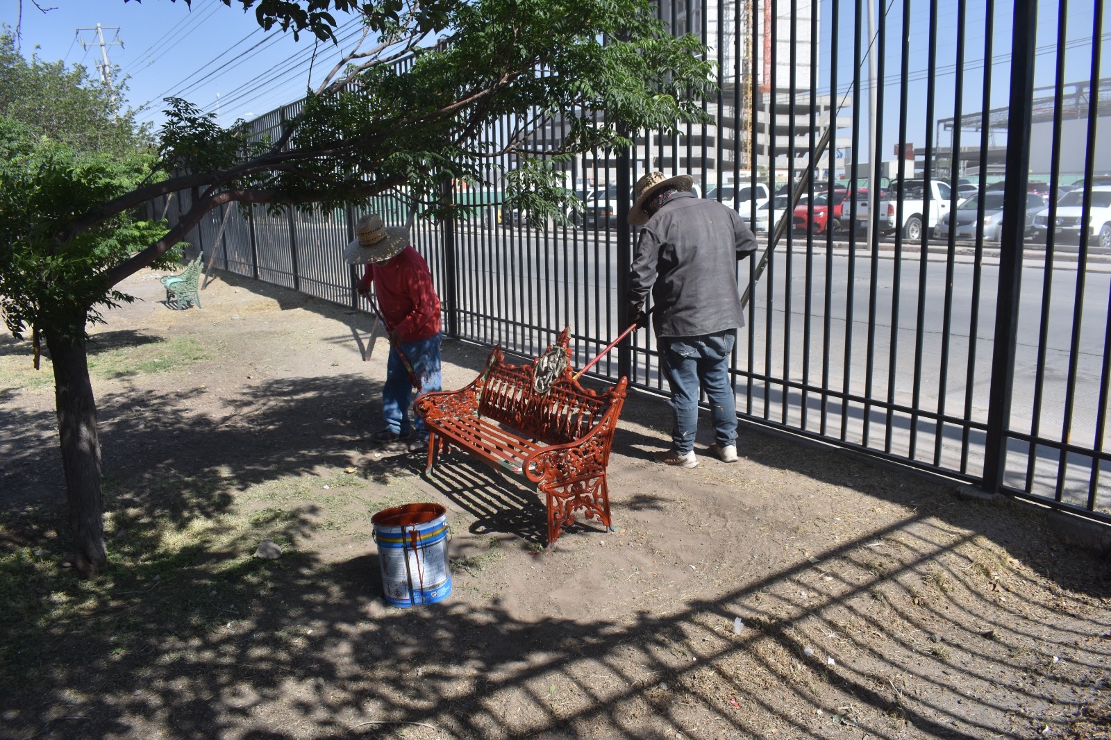 La Dirección de Parques y Jardines del Gobierno Municipal realiza labores de mantenimiento y reforestación en el parque de la Unidad Habitacional Benito Juárez, ubicada sobre la calle Camino Viejo a San José, como parte de las acciones derivadas del retiro de árboles en el camellón de la avenida Ejército Nacional.