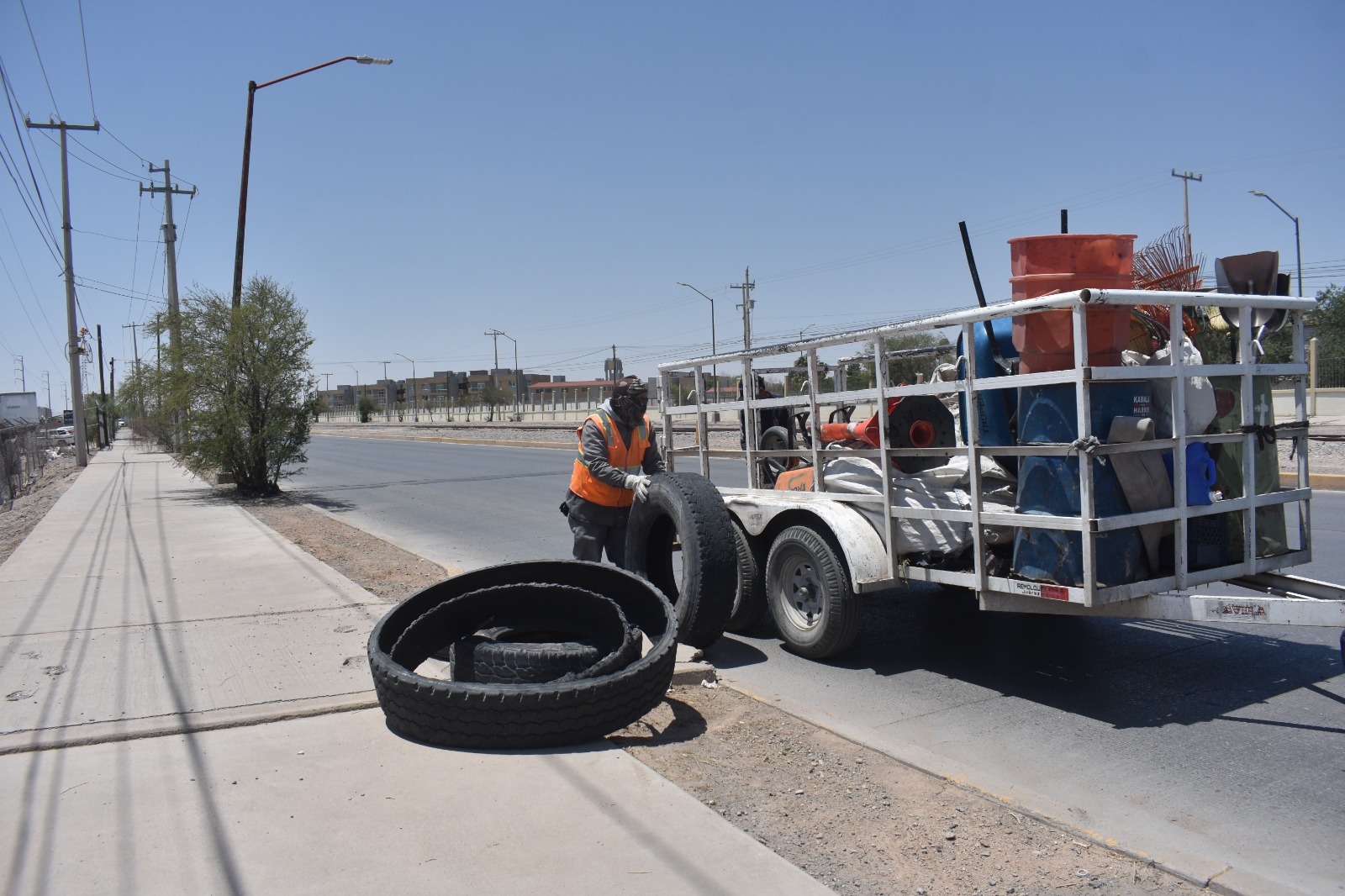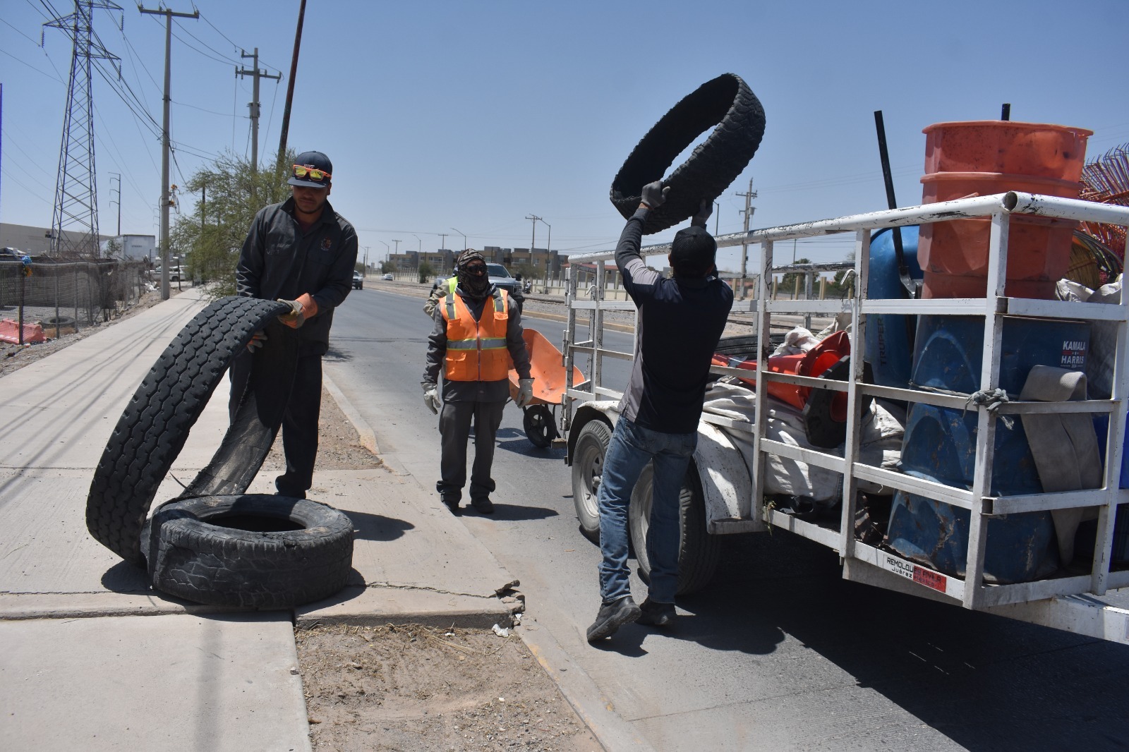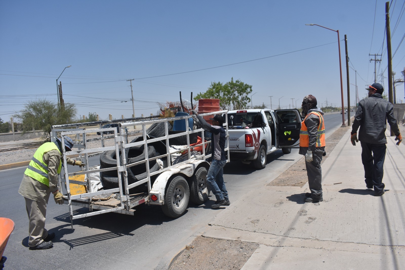 Este operativo se lleva a cabo en preparación para un evento importante de la corporación federal, y contempla trabajos intensivos durante los próximos dos días. Las labores incluyen limpieza de banquetas laterales y camellones centrales, corte y retiro de hierba, recolección de tiliches, neumáticos y residuos sólidos.
