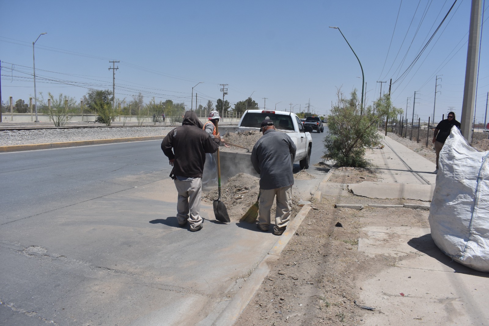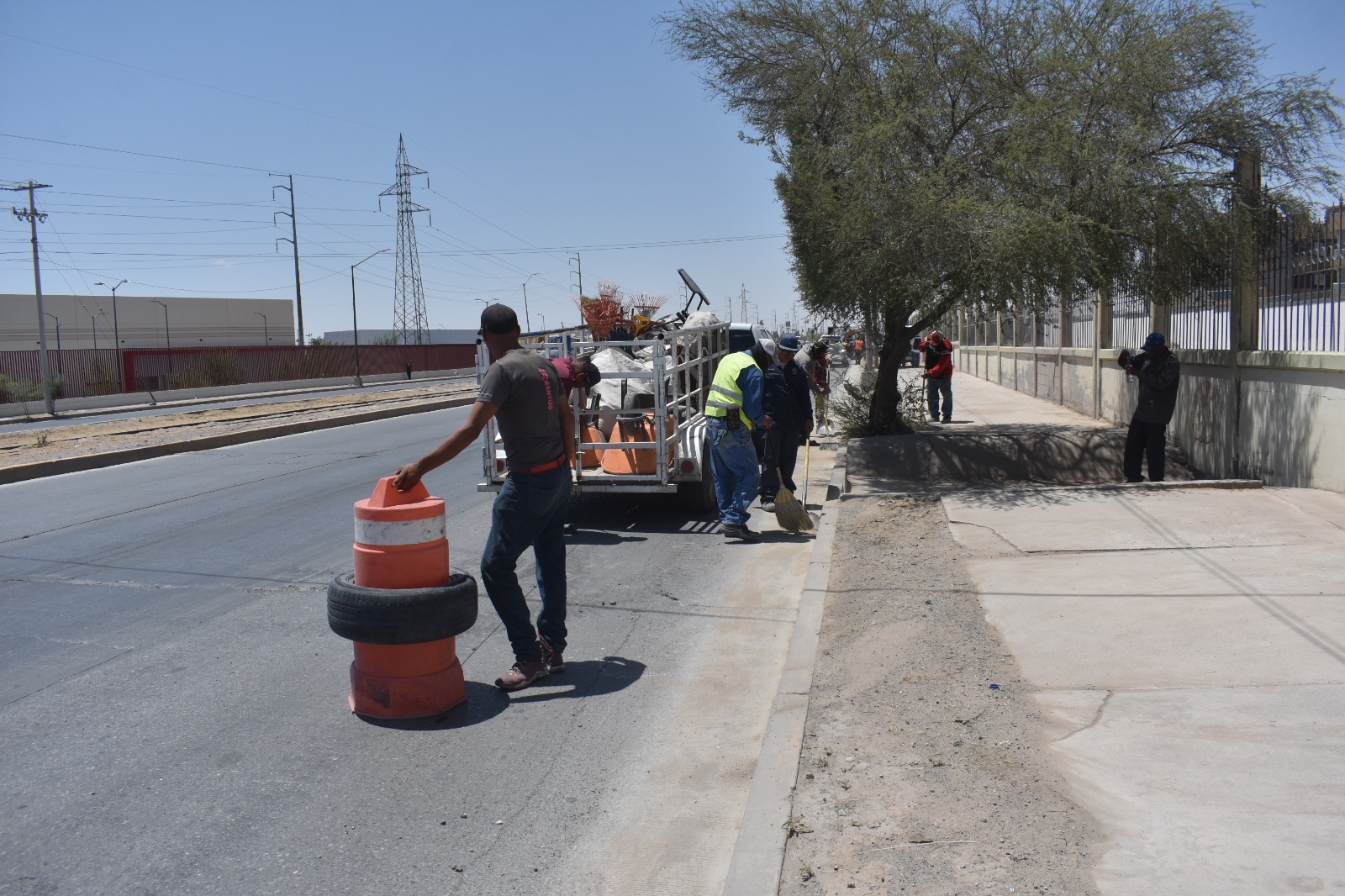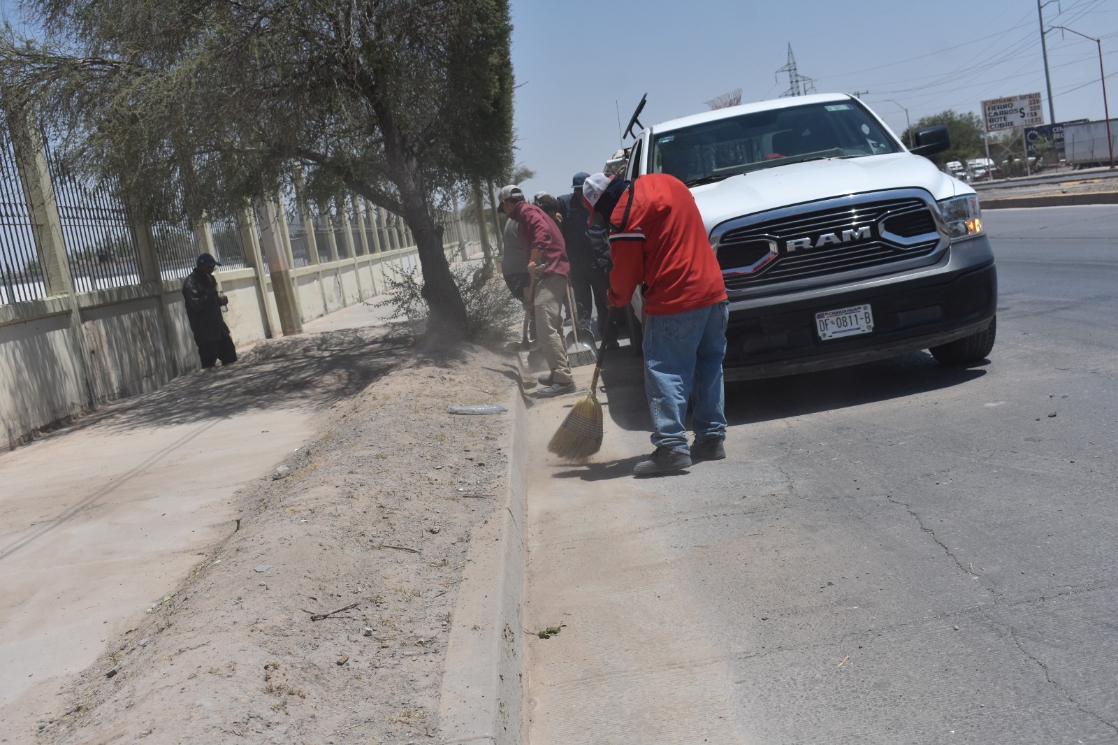 En atención a una solicitud enviada por la Guardia Nacional al director general de Servicios Públicos, Arturo Rivera Barreno, la Dirección de Limpia, encabezada por su titular Gibran Solís, inició ayer un operativo especial de limpieza en el tramo del eje vial Juan Gabriel, a la altura del crucero de la avenida Barranco Azul, donde se encuentran las instalaciones de la SEDENA y la Guardia Nacional.