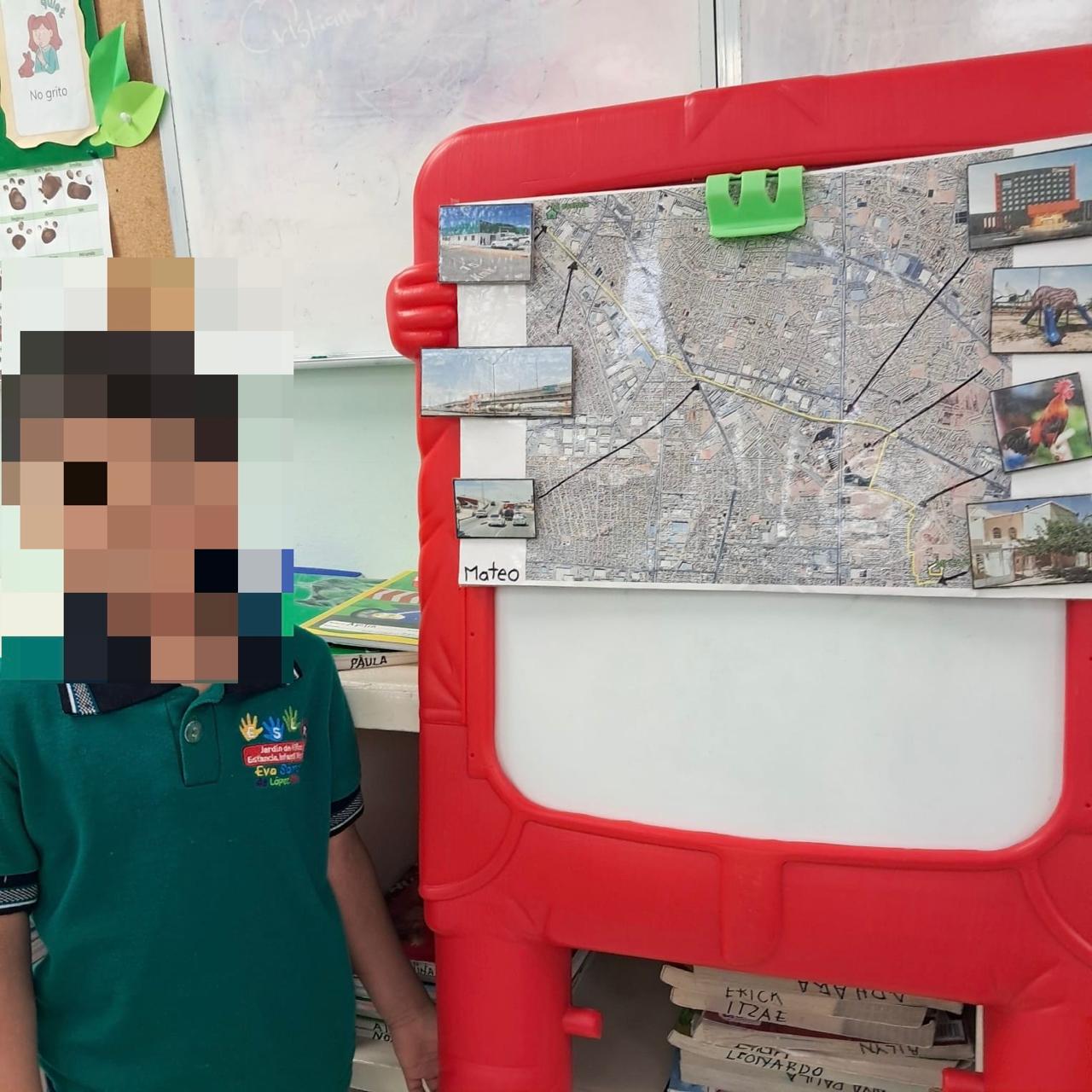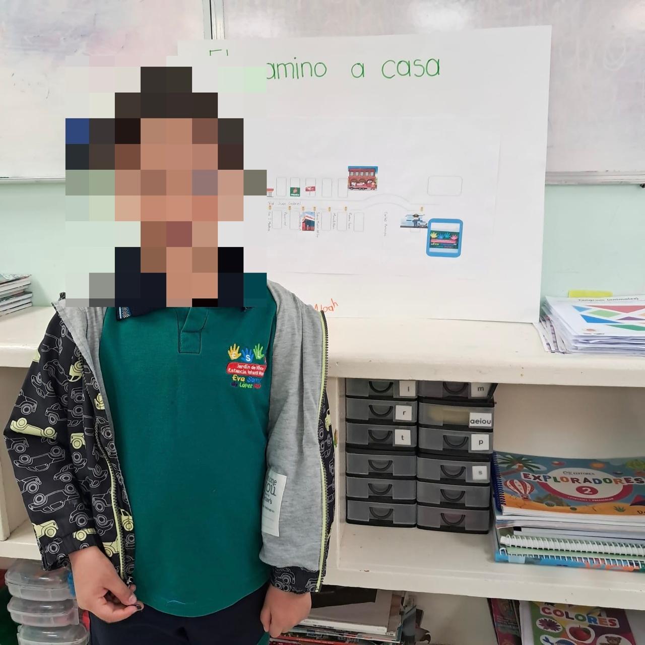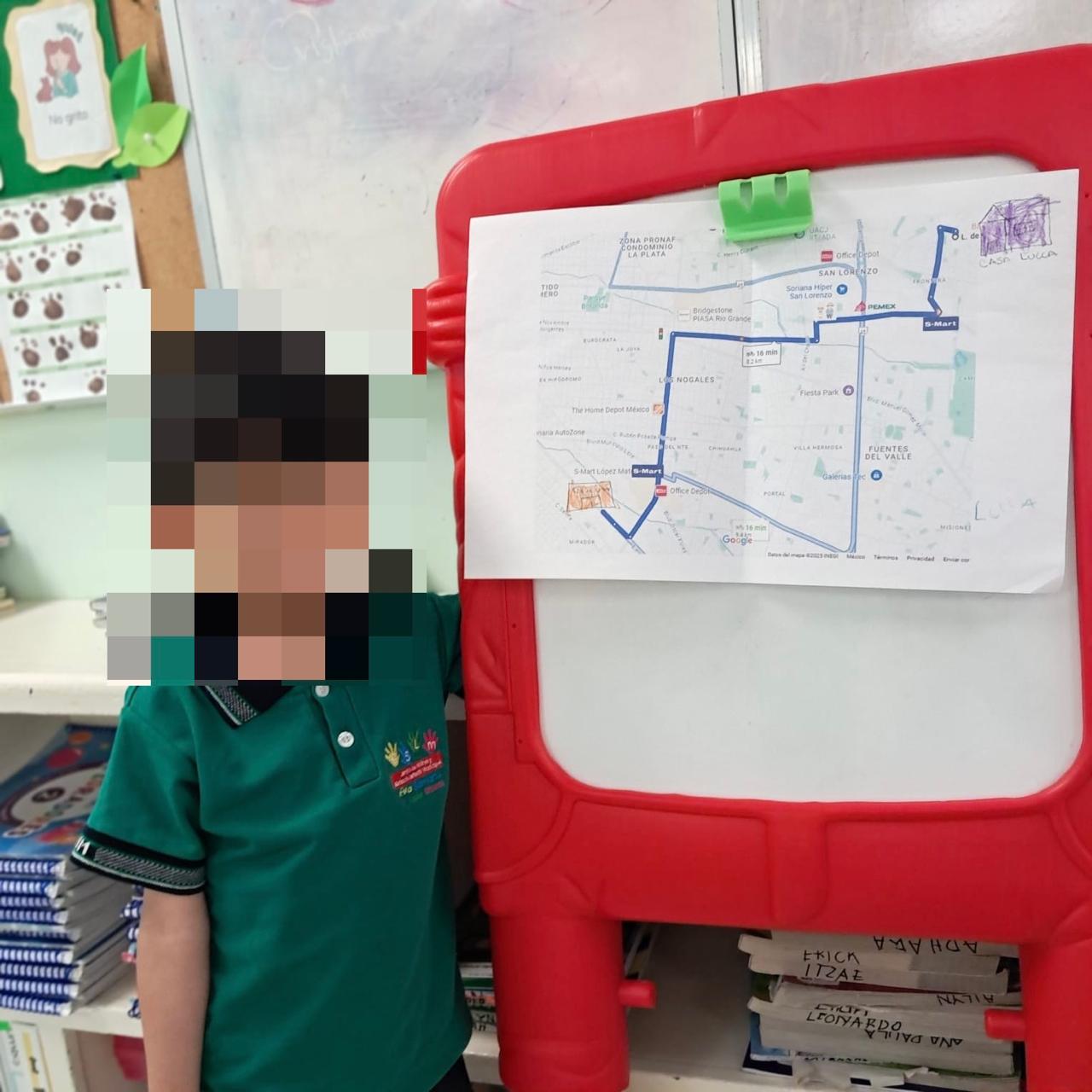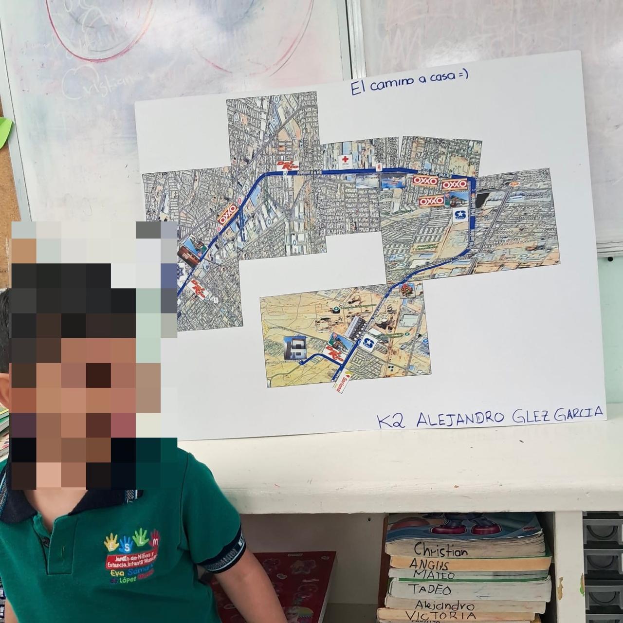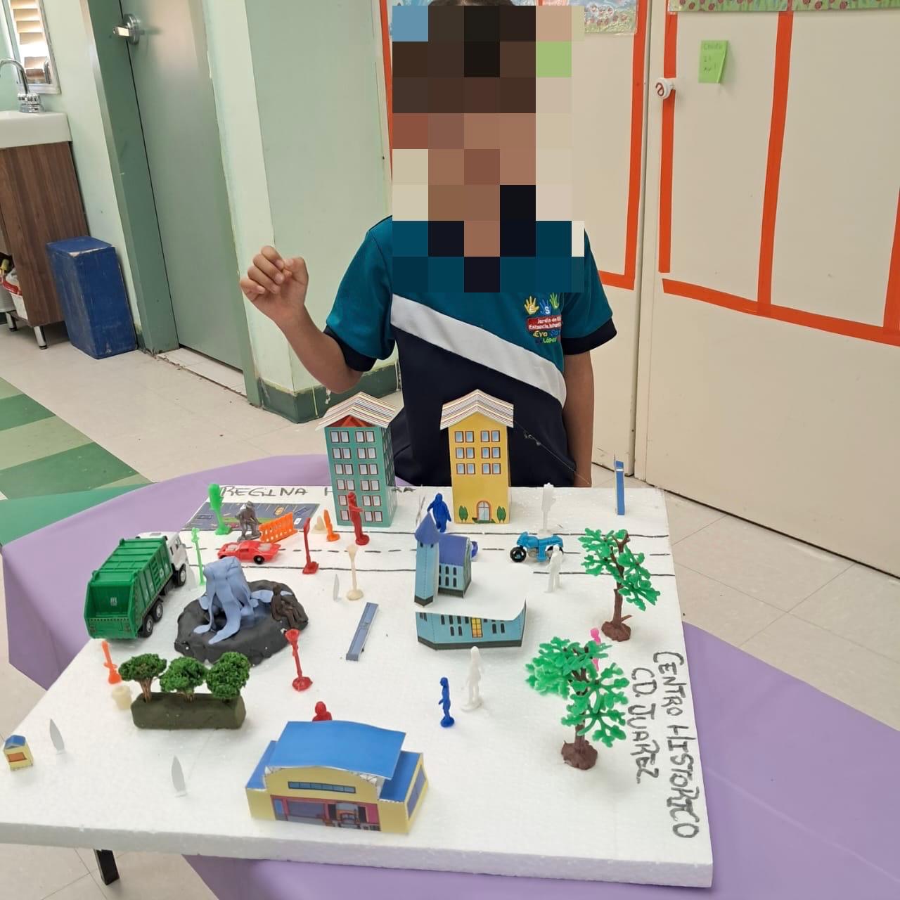 Explicó que hicieron un croquis que recorre y describe el trayecto de la escuela a la casa del alumno, usando referencias como museos, tiendas y puentes. Finalmente, llevaron a cabo una maqueta que representa una estampa típica de la ciudad.