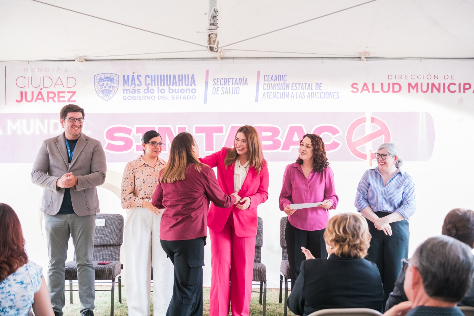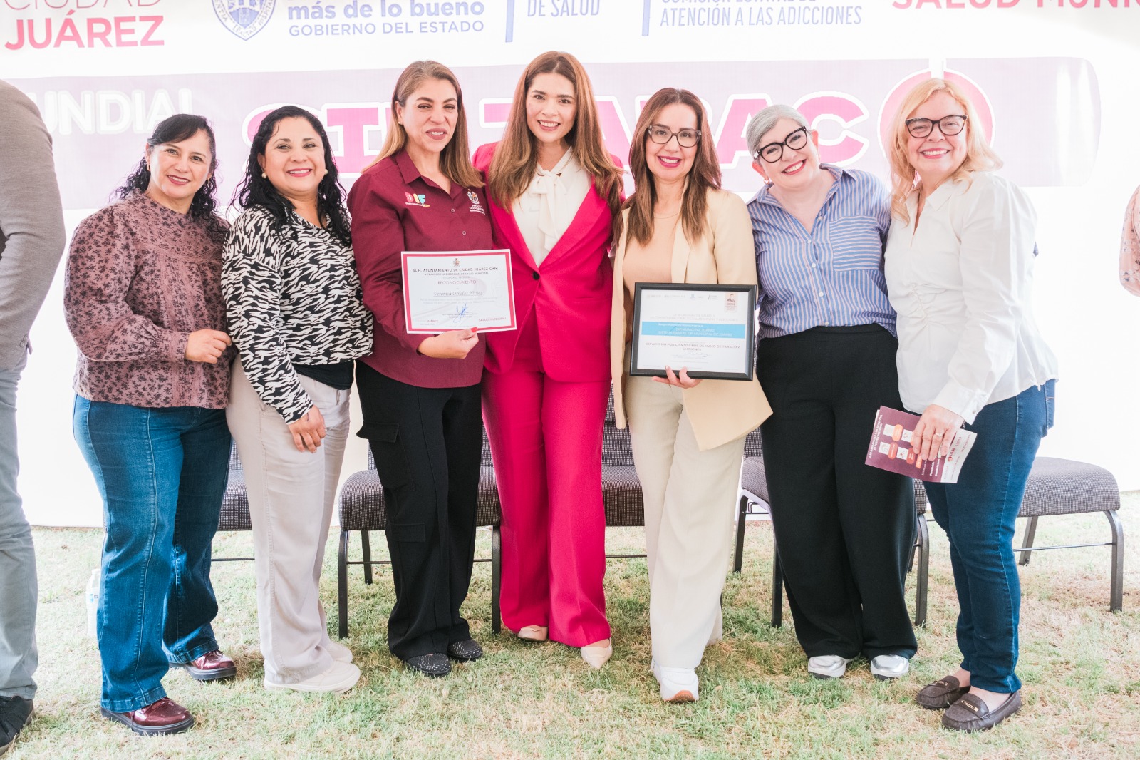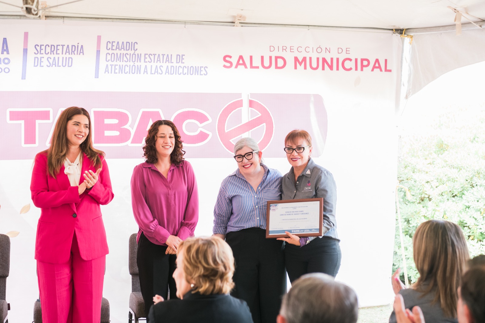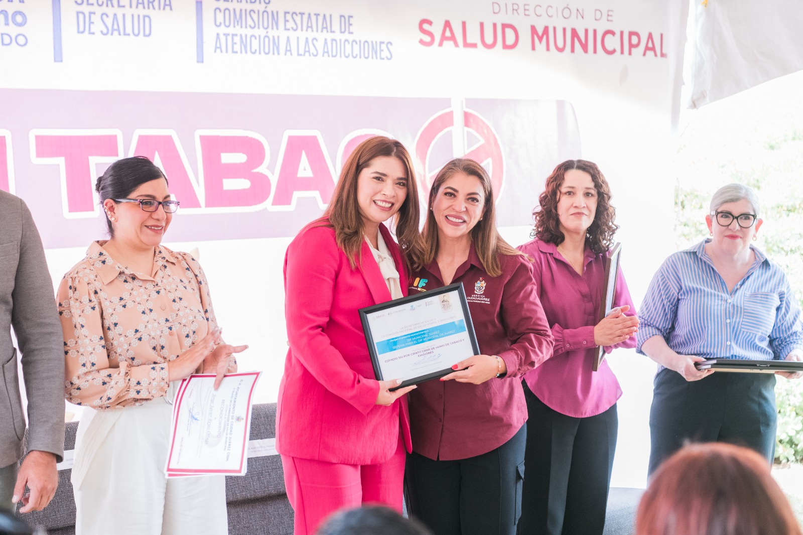 La entrega se llevó a cabo en el marco del Día Mundial Sin Tabaco, que se conmemora cada 31 de mayo, y fue otorgada por la Secretaría de Salud y la Comisión Nacional de Salud Mental y Adicciones a la Presidenta del DIF Municipal, Rubí Enríquez.