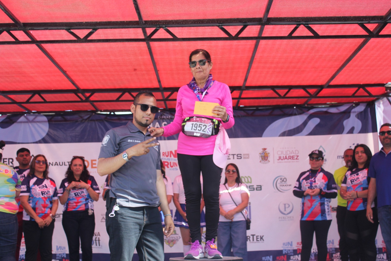 El director del Instituto Municipal del Deporte y Cultura Física de Juárez Juan Carlos Escalante, y la presidenta de CANACINTRA, Isela Molina Alcay dieron el banderazo de salida y se mostraron complacidos por la nutrida asistencia y el espíritu deportivo de los corredores de 3 y 10 kilómetros.