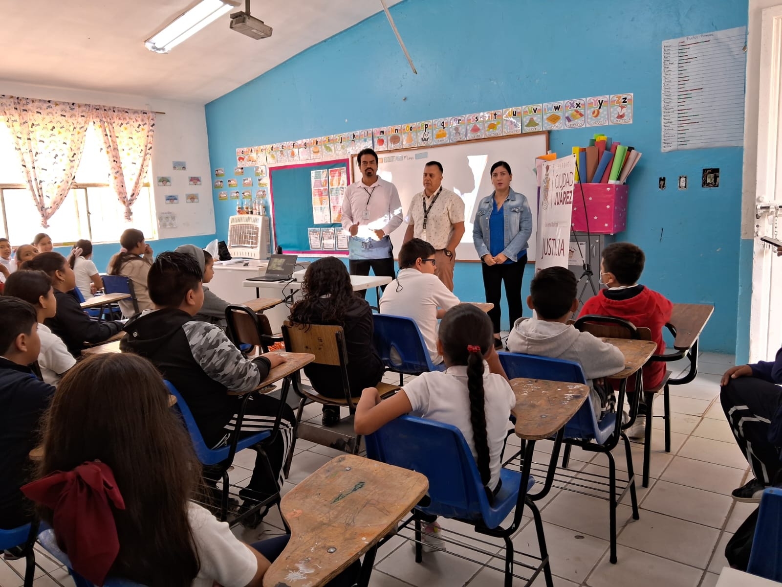 "Hoy estamos visitando a las y los alumnos de la Escuela Primaria Octavio Paz en la colonia Ampliación Fronteriza dentro del programa Justicia Itinerante", indicó el titular de la dependencia, Jorge Salomé Bissuet Galarza.