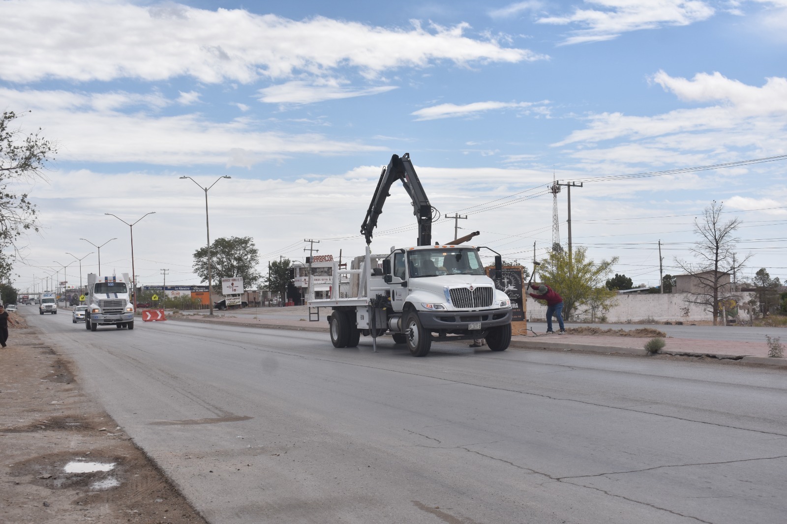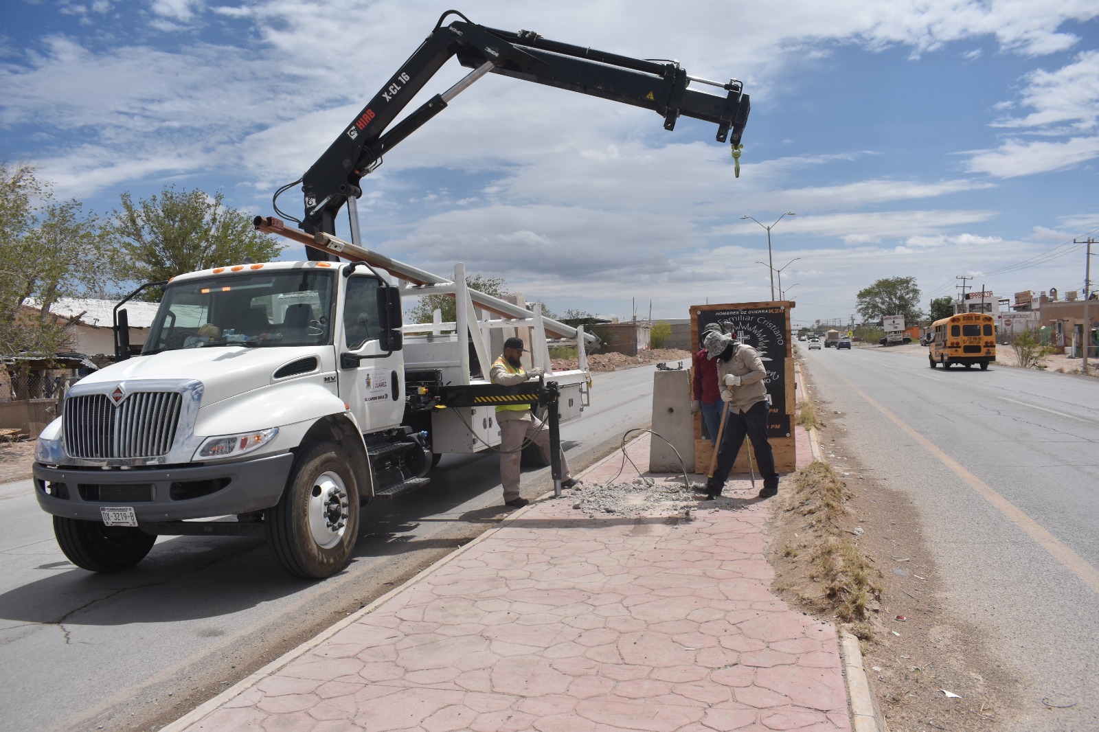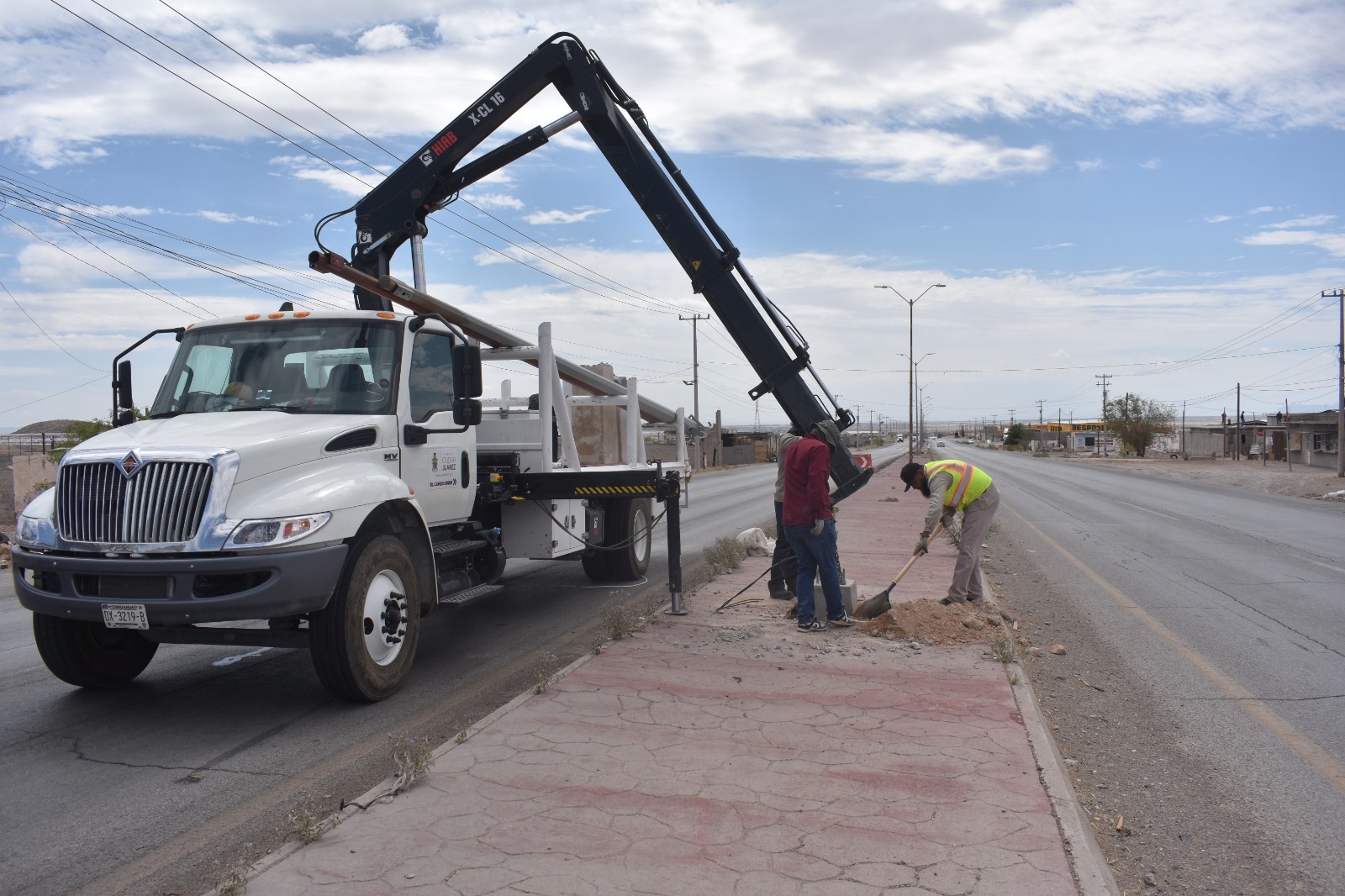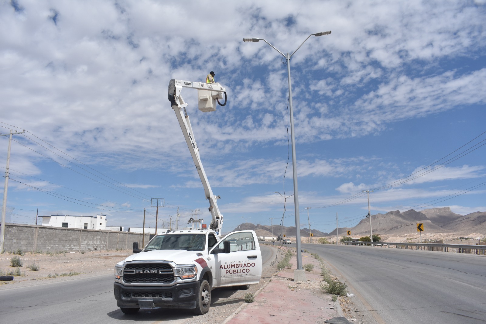 La Dirección de Alumbrado Público continúa con los trabajos de rehabilitación e instalación de infraestructura eléctrica en la carretera a Casas Grandes, una vialidad prioritaria por su alto flujo vehicular y frecuencia de accidentes.