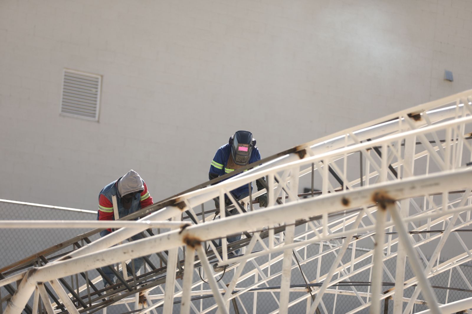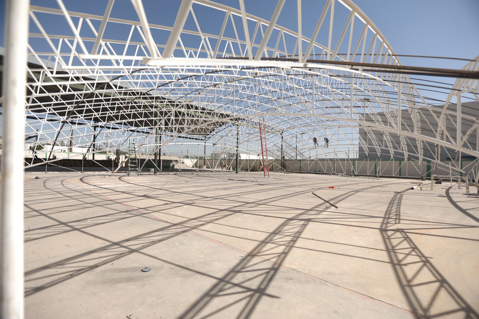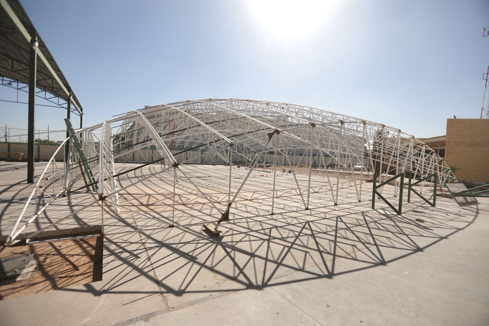 Trabaja Obras Públicas en construcción de domo en el Colegio de Bachilleres 11