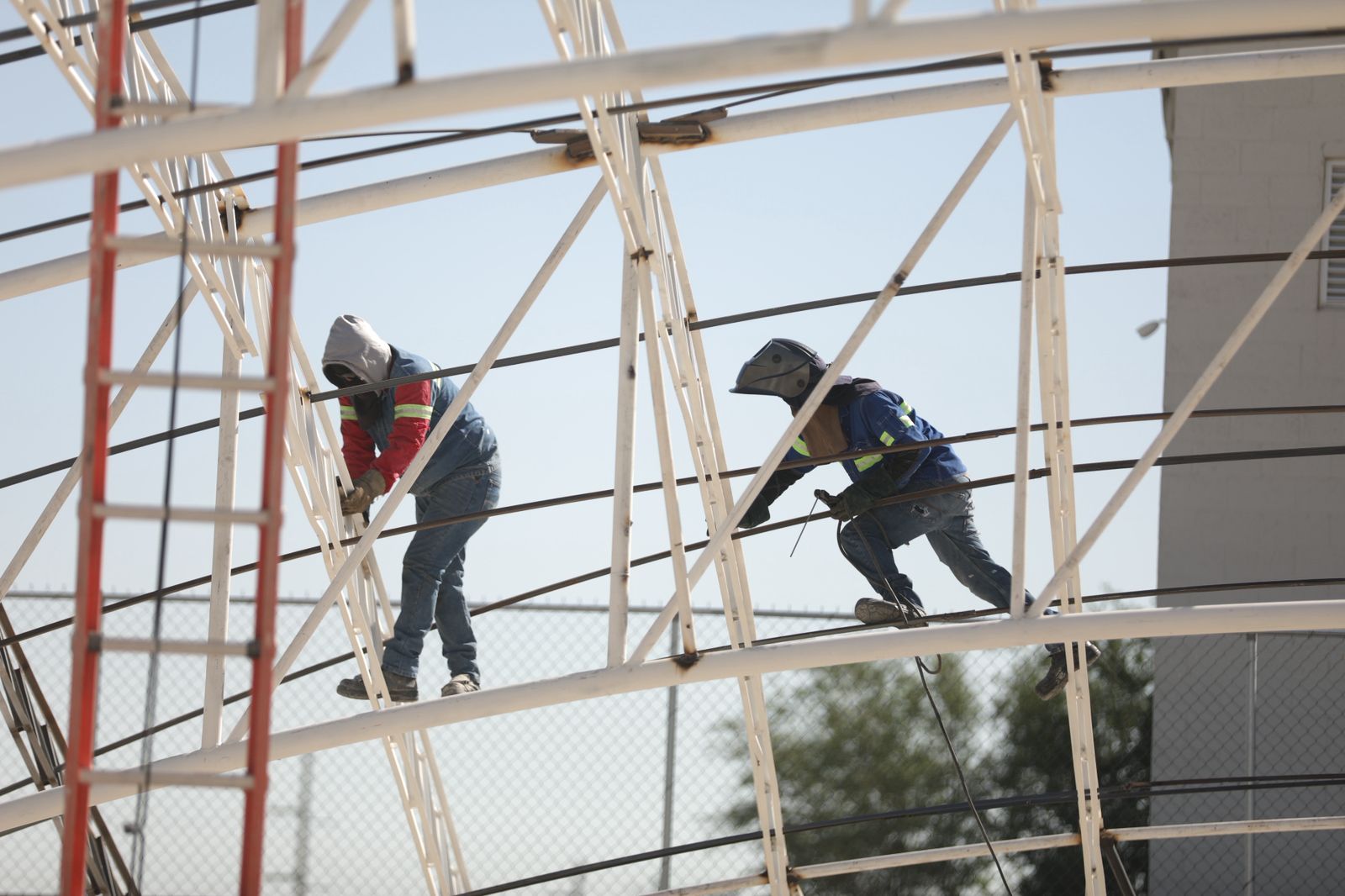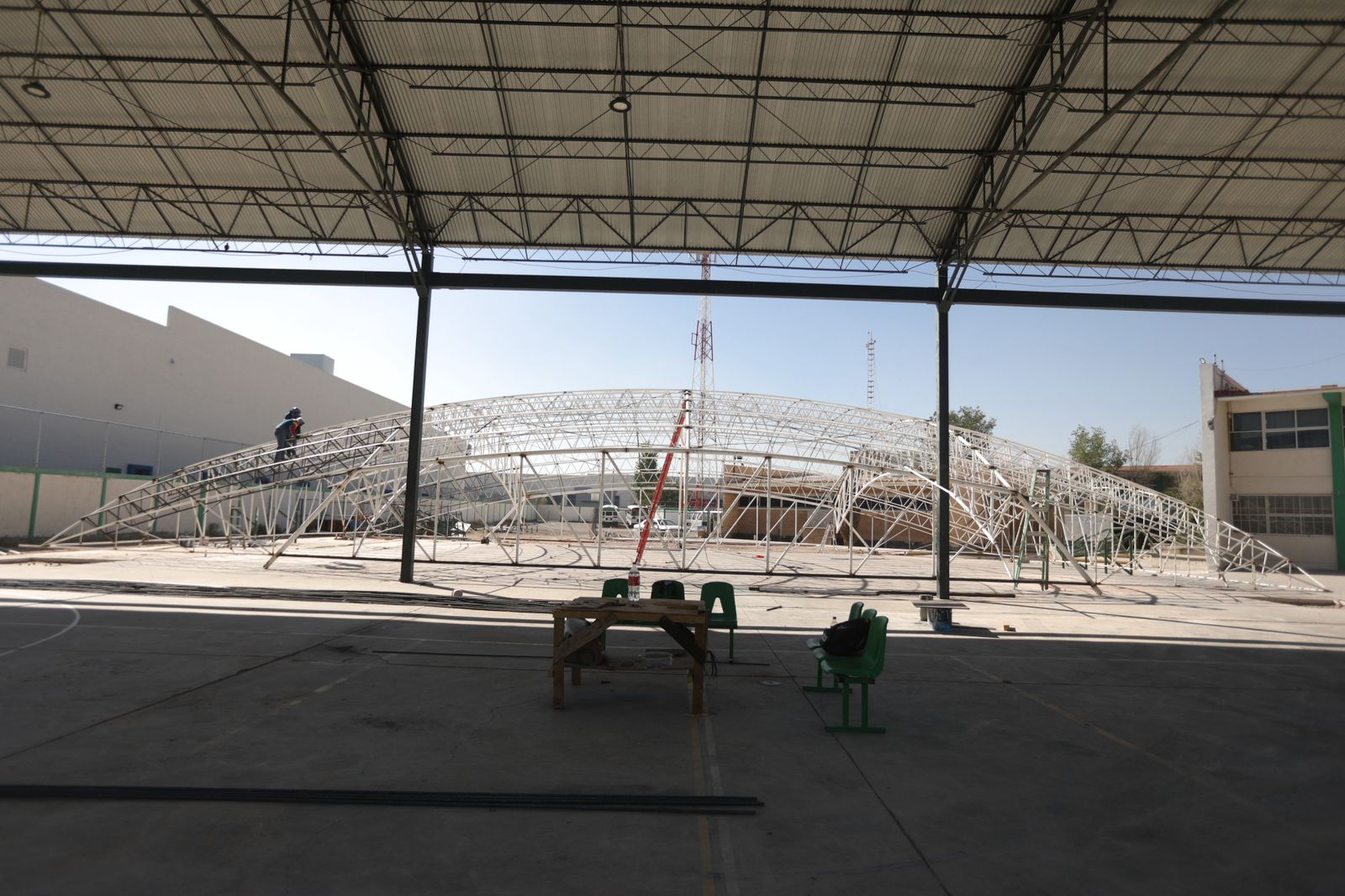 Como parte de las acciones para mejorar las instalaciones educativas, la Dirección General de Obras Públicas trabaja en la construcción de una cancha de usos múltiples y un domo en el Colegio de Bachilleres plantel 11, ubicado en la calle Francisco Bocanegra y Domingo García Ramos, en el Parque Industrial Américas.