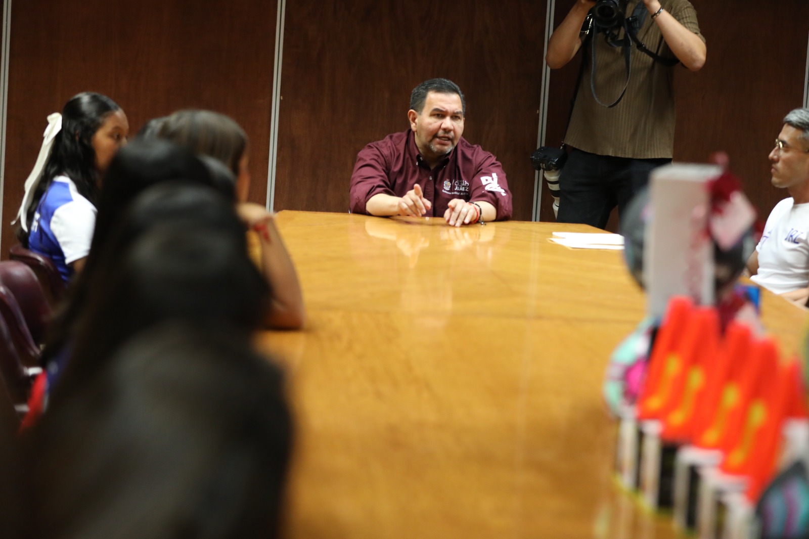 El alcalde recibió a la selección fronteriza y reconoció el esfuerzo y entrega de las jugadoras, ya que demostraron que las y los juarenses tienen el compromiso de salir adelante en todo lo que se proponen.