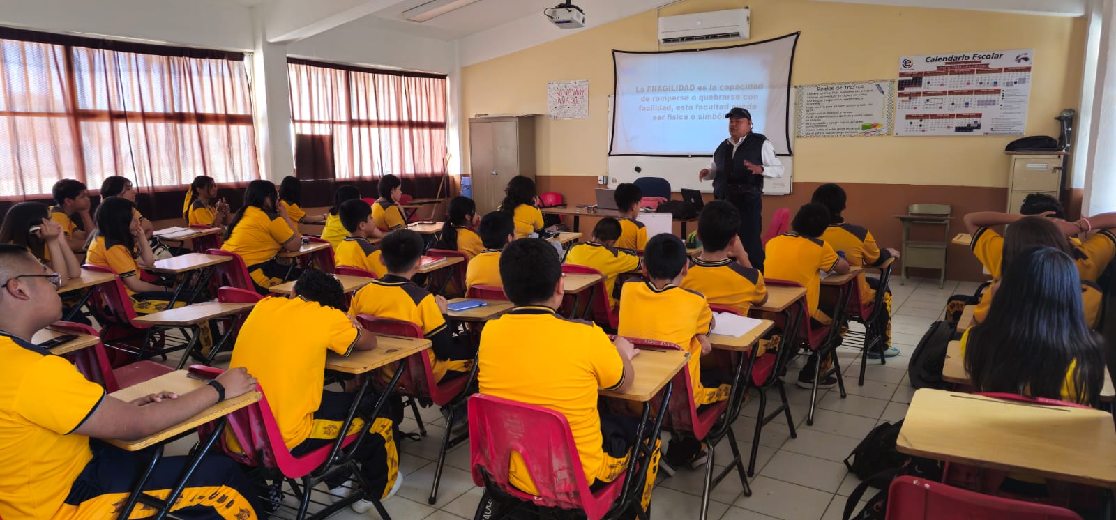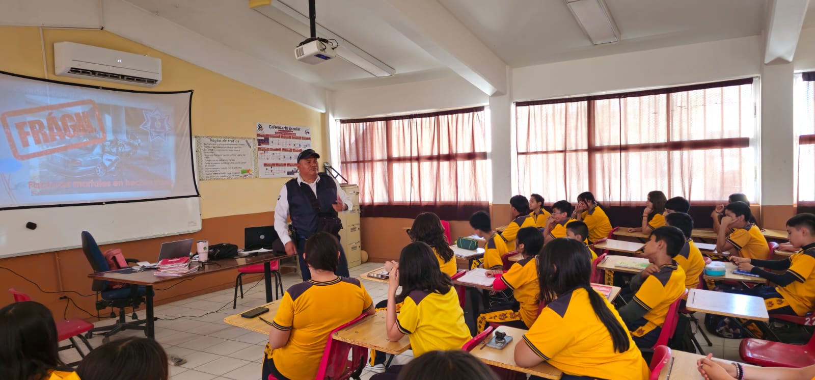 Como parte del programa Sin Tanto Rollo, implementado en la Escuela Secundaria Federal número 17, personal de la Coordinación General de Seguridad Vial ofreció la plática “Frágil” a un grupo de 59 estudiantes de ese plantel.