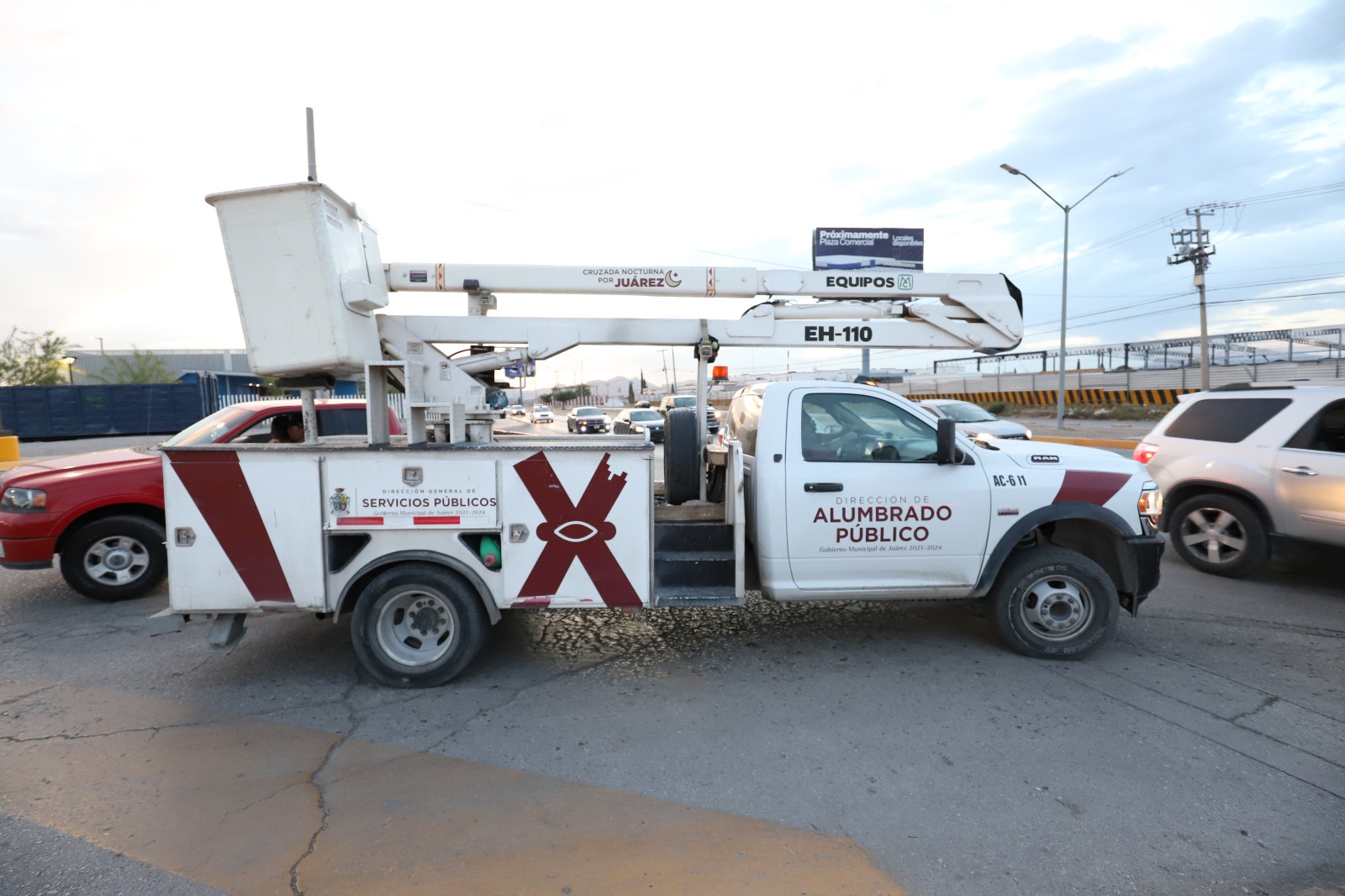 Como parte del programa Cruzada Nocturna por Juárez, la Dirección General de Servicios Públicos llevó a cabo una jornada integral de rehabilitación, mantenimiento y limpieza en el tramo del bulevar Zaragoza comprendido desde la avenida Tecnológico y hasta Las Torres, abarcando una distancia aproximada de 4 kilómetros.
