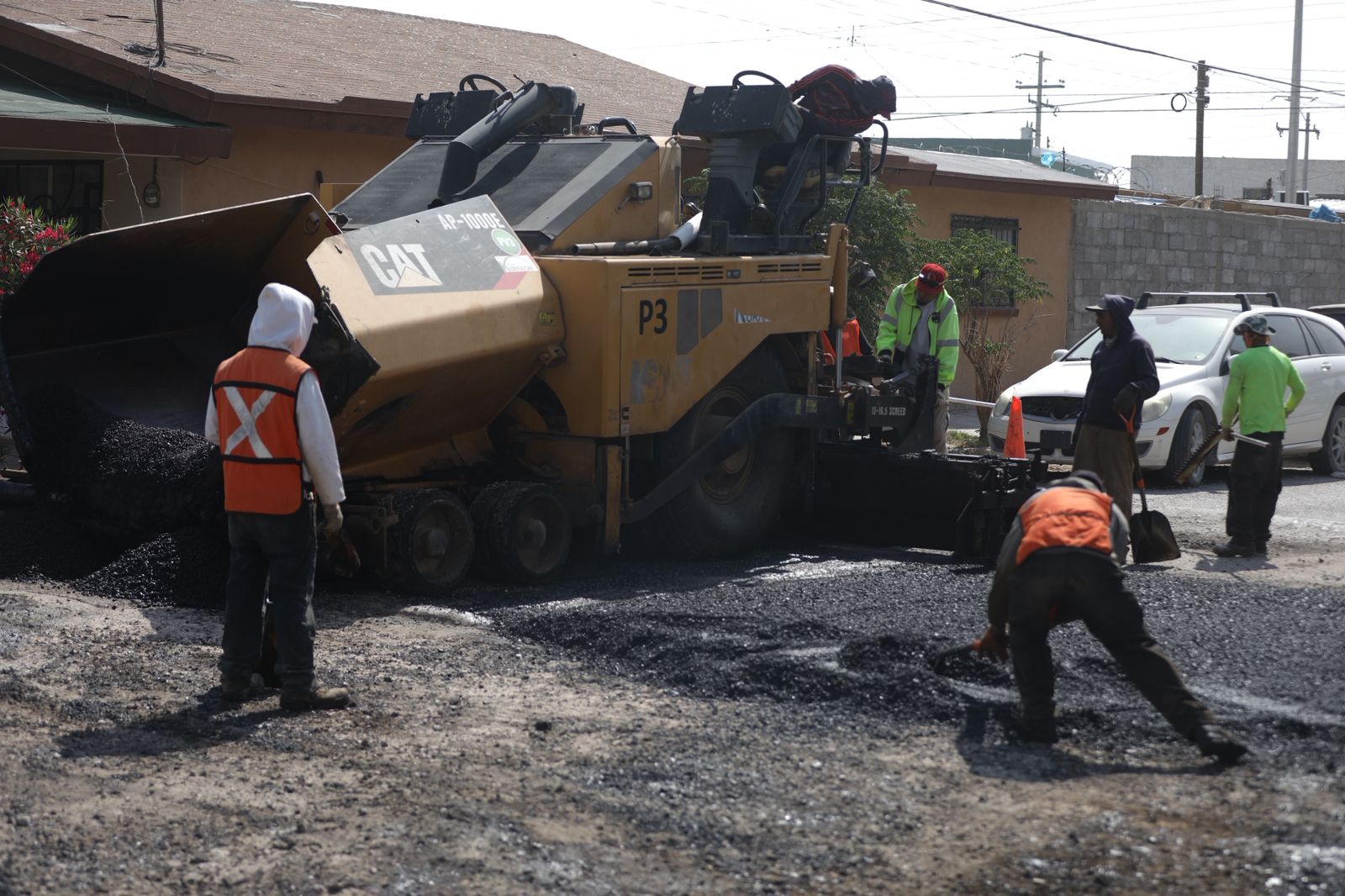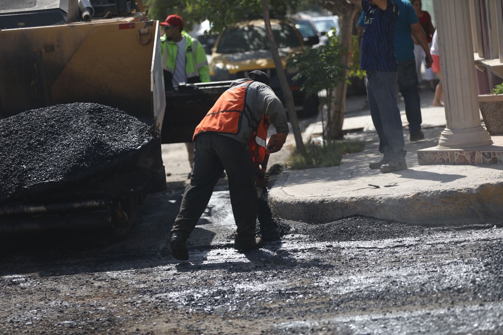 Repavimenta Obras Públicas calle Bario y José María Arteaga en el norponiente de la ciudad