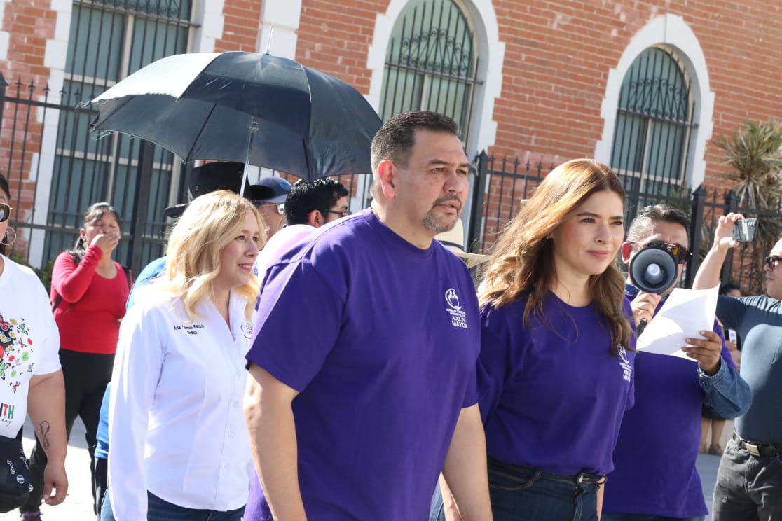 La caminata fue encabezada por el Presidente Municipal, Cruz Pérez Cuéllar y su esposa Rubí Enríquez Parada, presidenta del Sistema para el Desarrollo Integral de la Familia del Municipio.