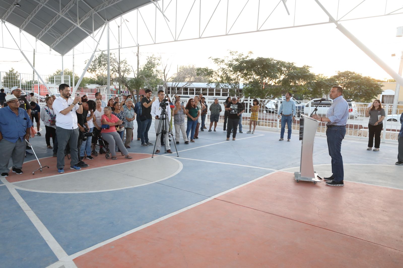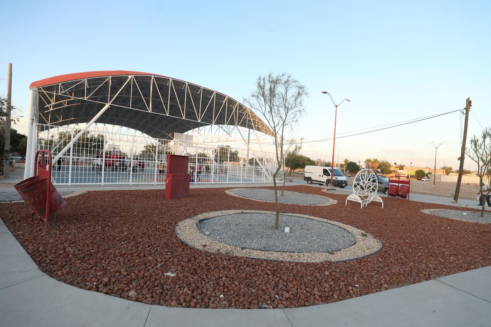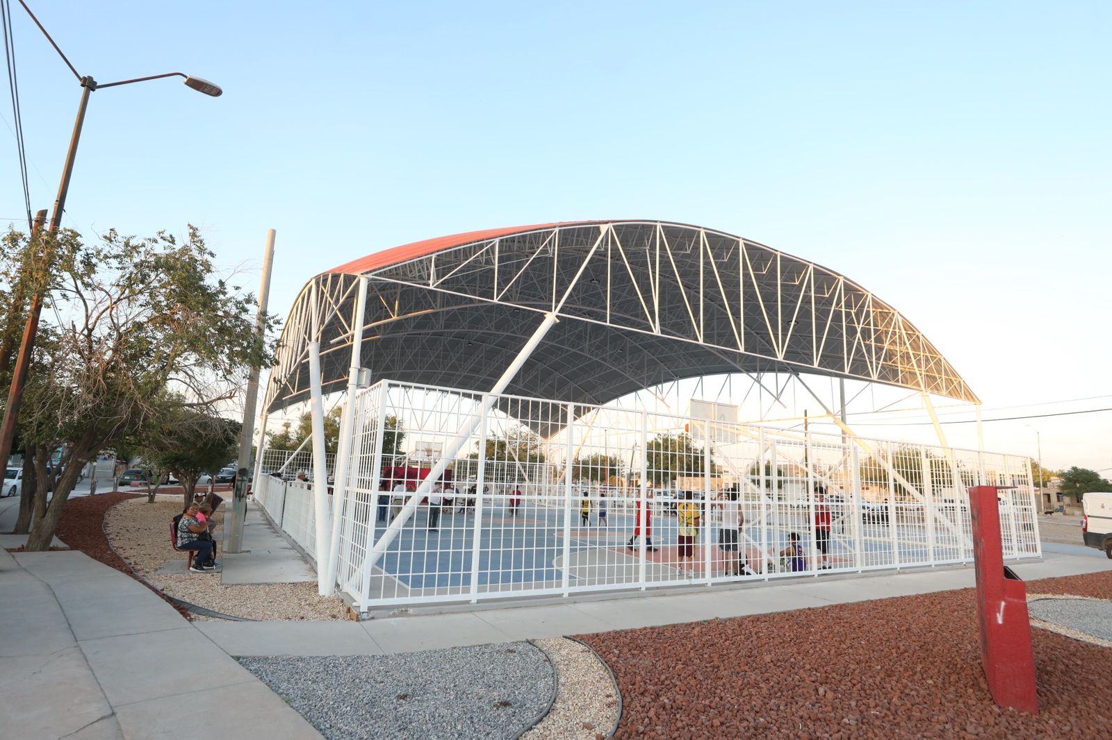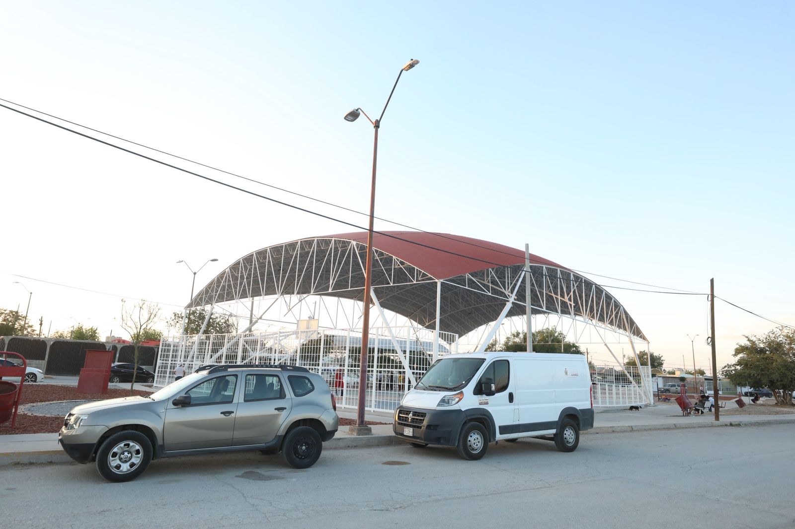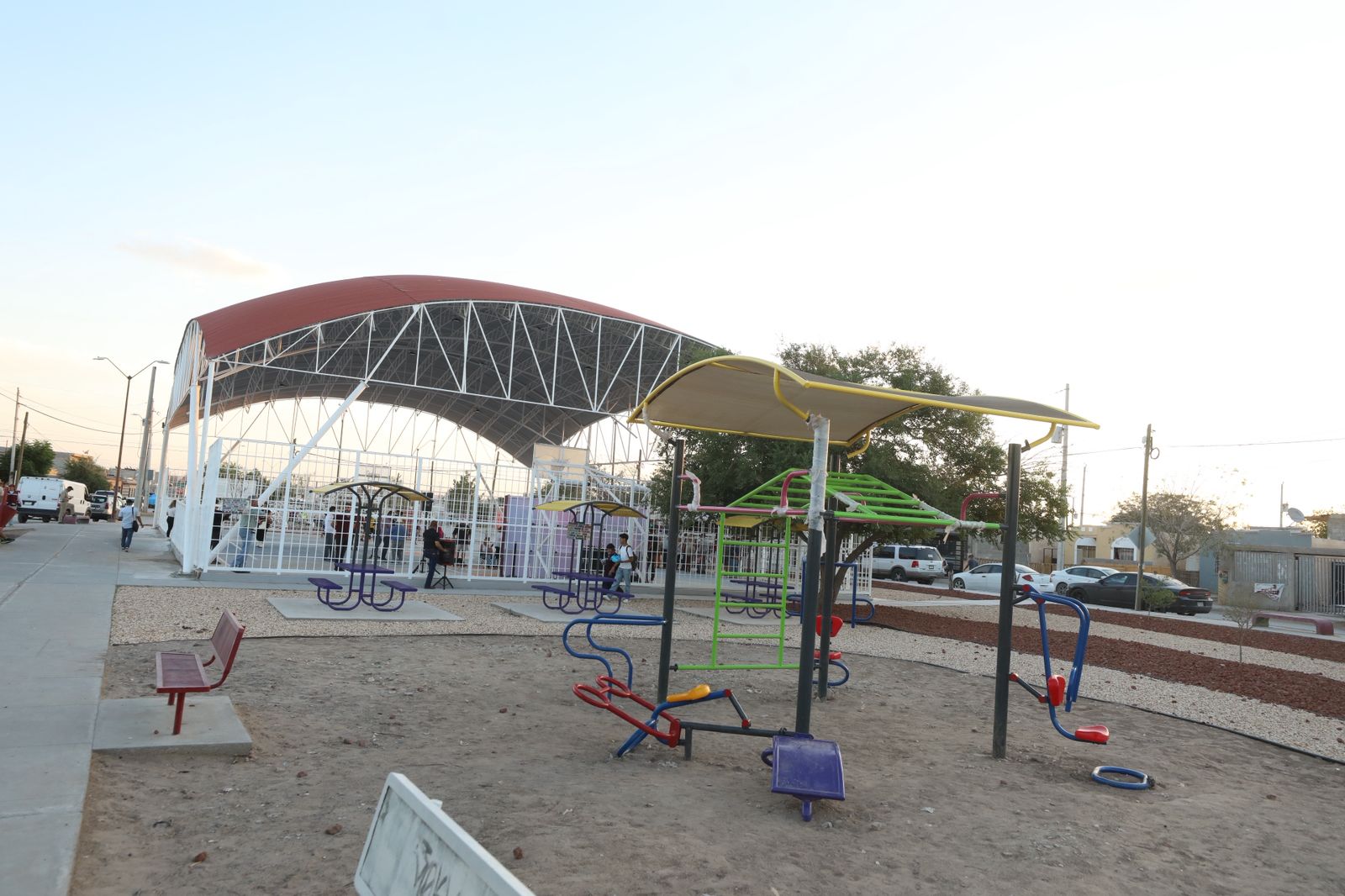 El Presidente Municipal, Cruz Pérez Cuéllar, encabezó la entrega del domo a los usuarios del parque El Gusanito, situado en el fraccionamiento Riberas del Bravo.