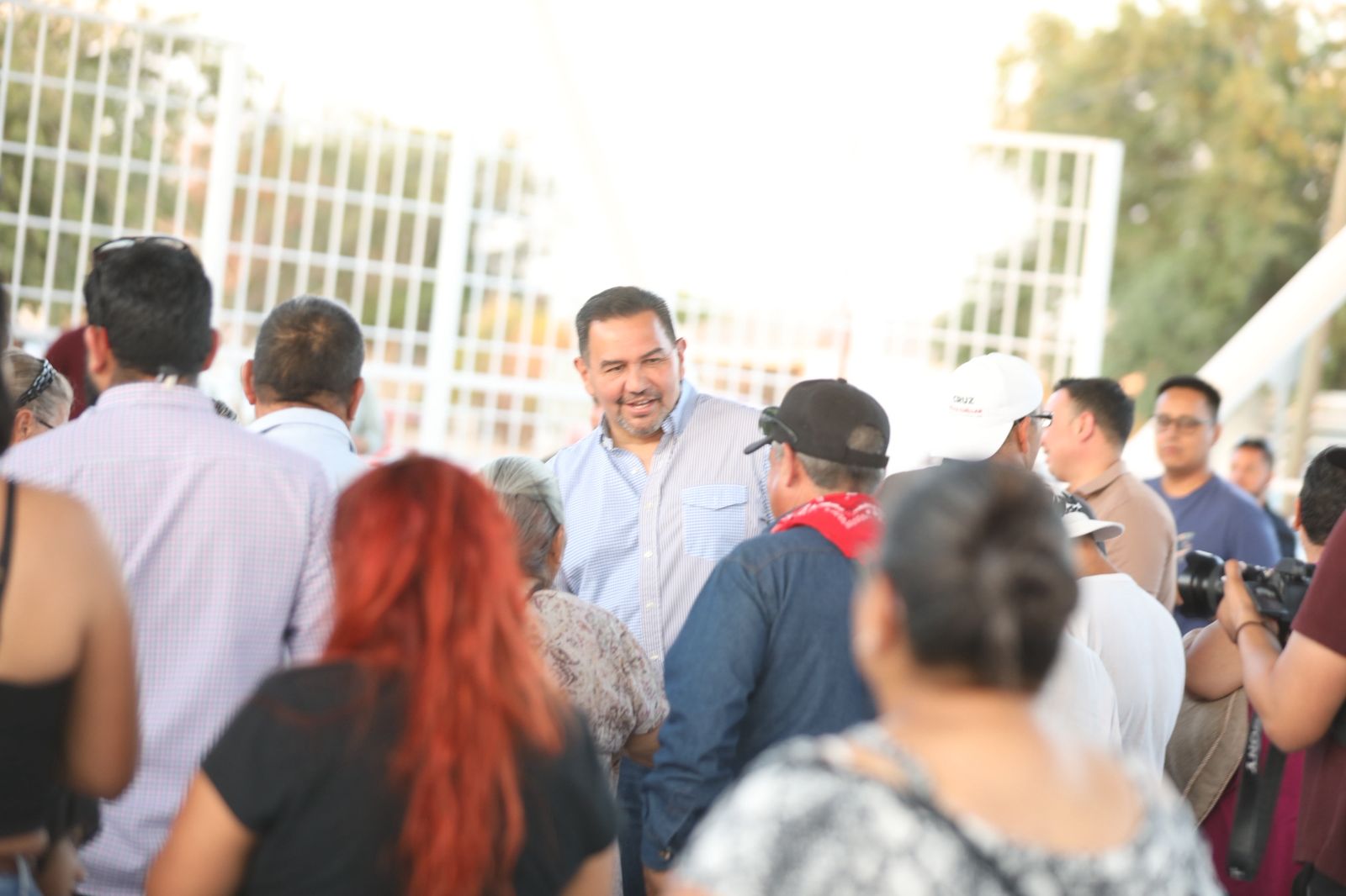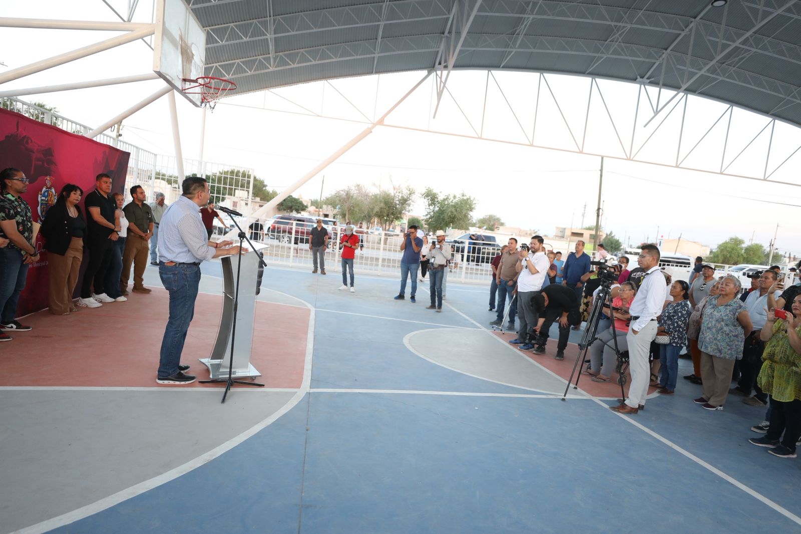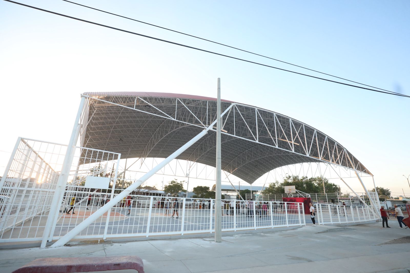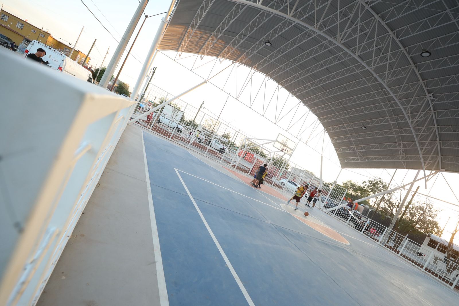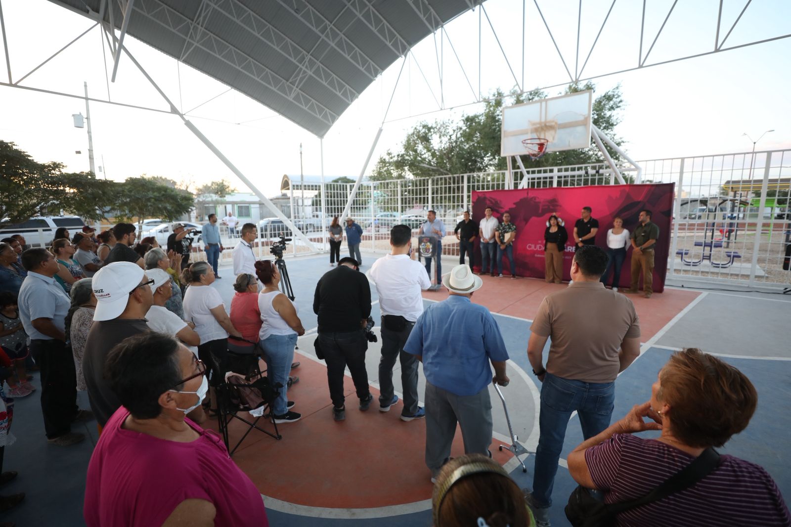 El Presidente Municipal, Cruz Pérez Cuéllar, encabezó la entrega del domo a los usuarios del parque El Gusanito, situado en el fraccionamiento Riberas del Bravo.