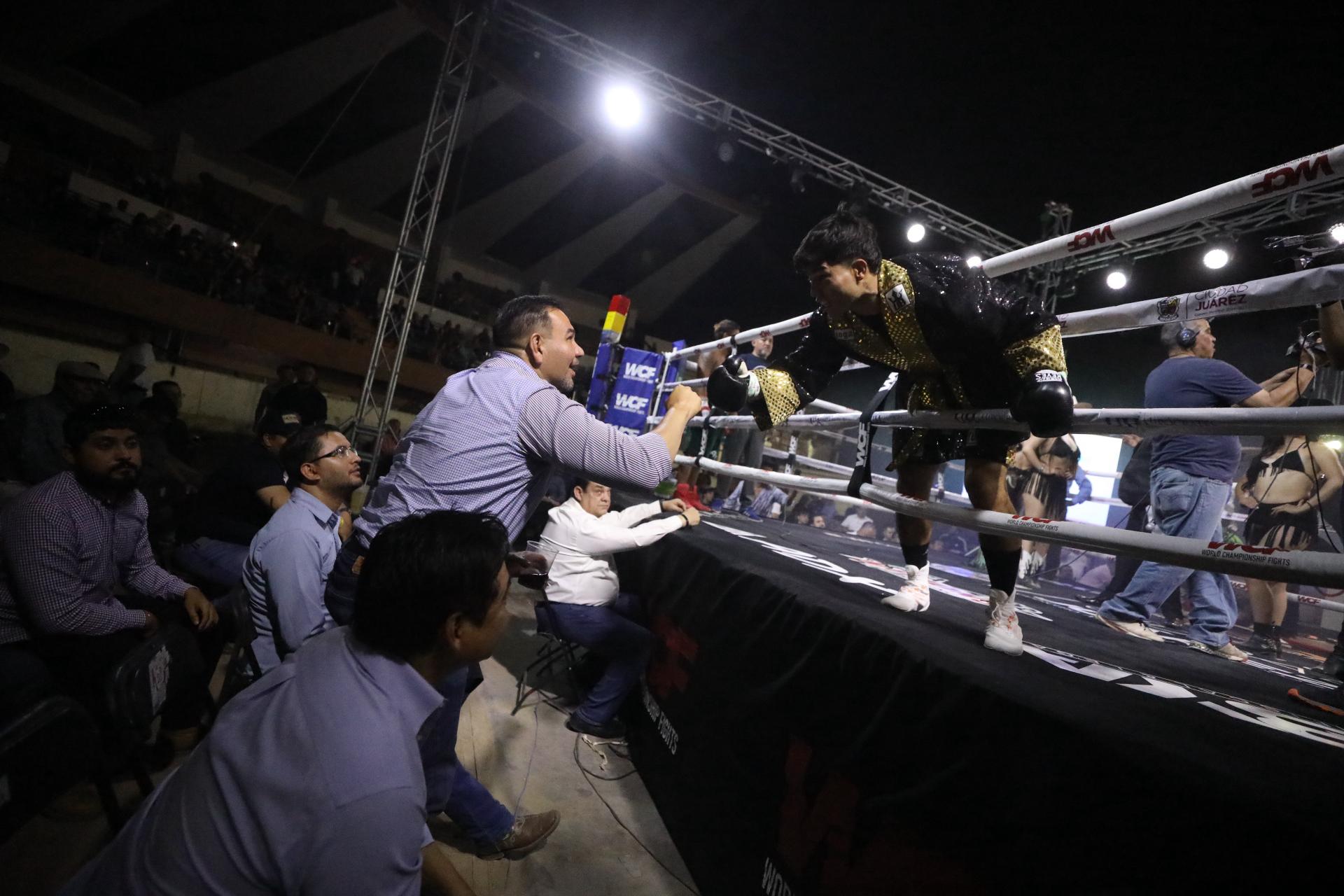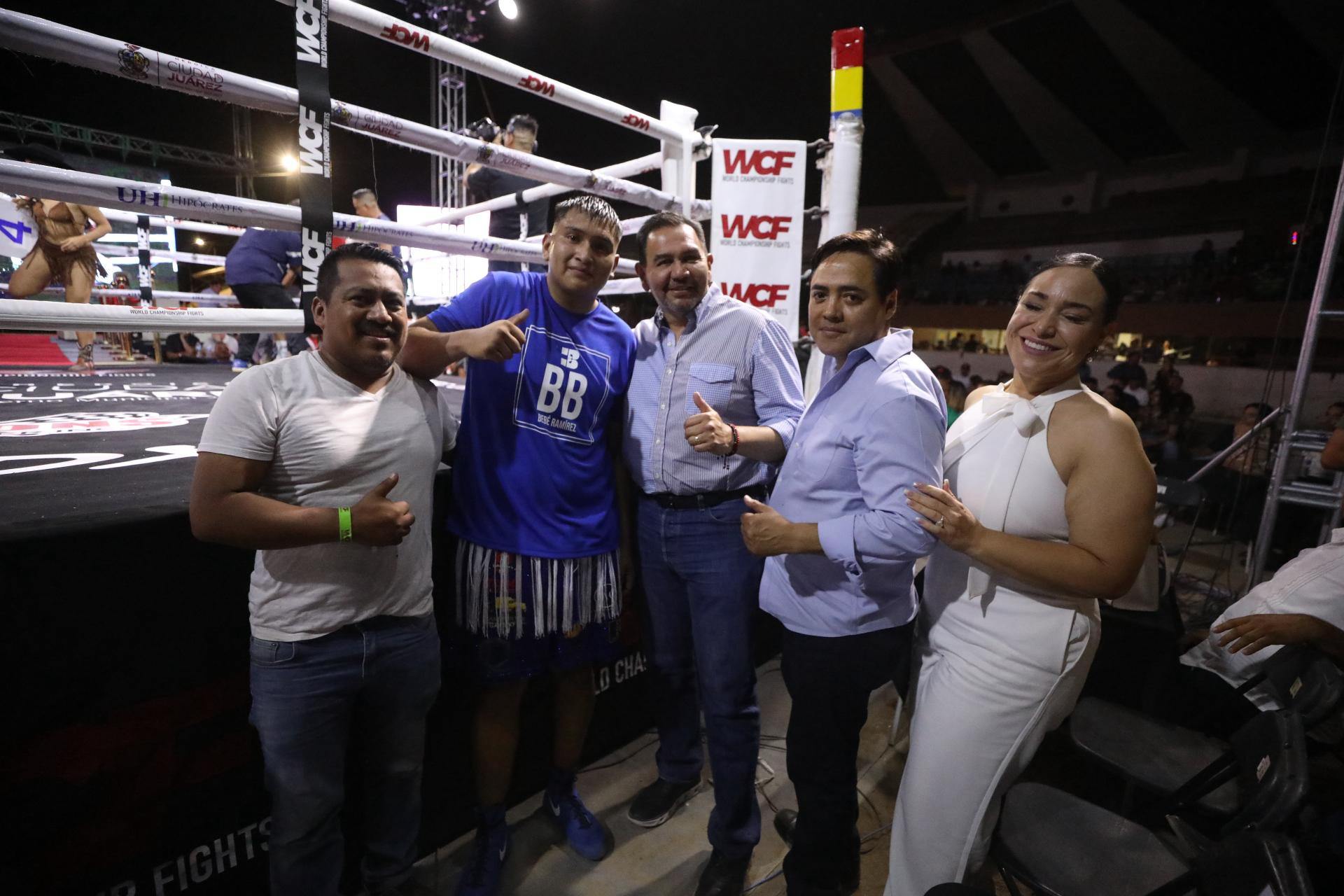 El alcalde reconoció al pugilista juarense Uziel "El Muñeco" Belman, quien se impuso por knockout en el primer asalto a su adversario, el oriundo de la ciudad de Veracruz, Francisco "Tayson" Ramírez.