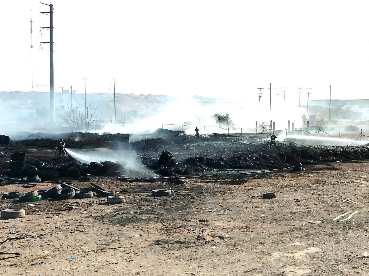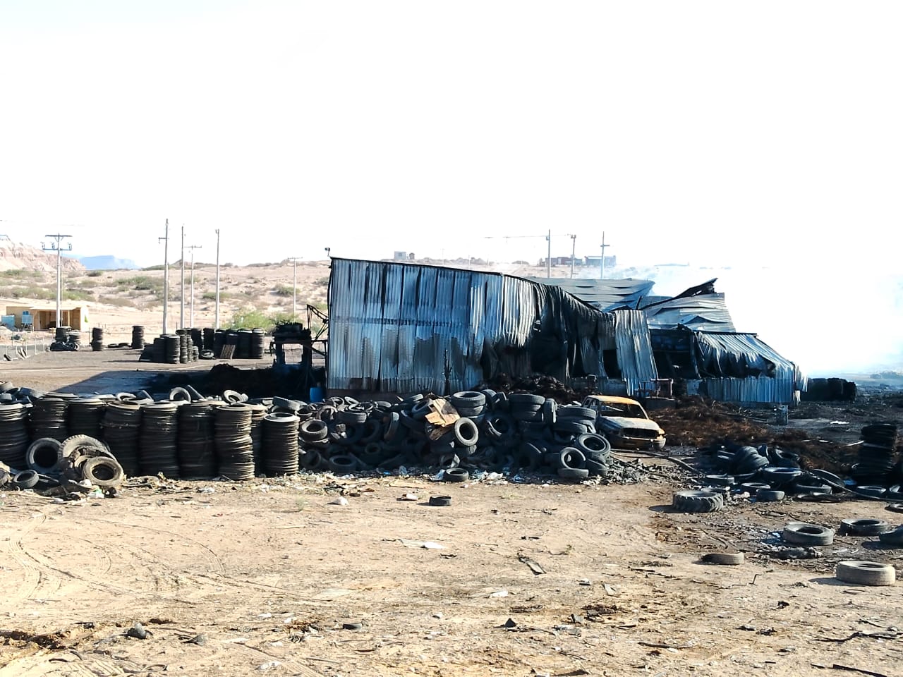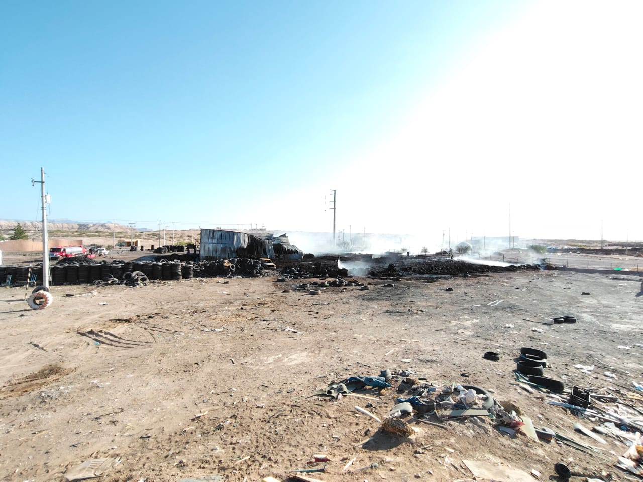 Controlan incendio en planta de trituración de neumáticos