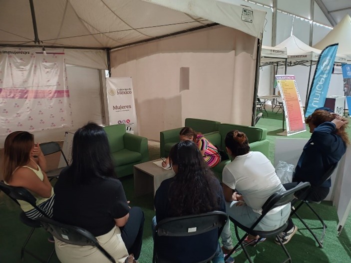 Como parte de la estrategia, el área de Atención Especializada llevó a cabo la instalación de un módulo de atención a mujeres migrantes en el Centro de Atención ubicado en El Punto, donde se brindan los servicios gratuitos de asesoría jurídica, trabajo social y atención psicológica con la finalidad de dar seguimiento puntual a los casos.
