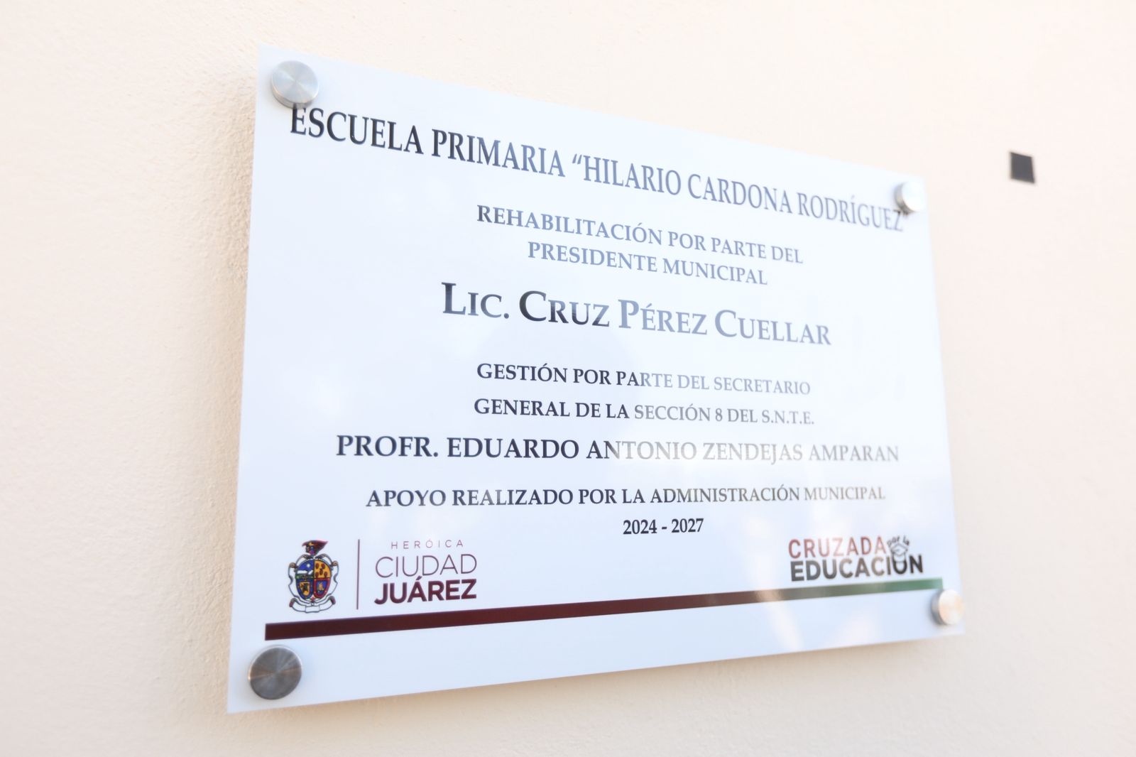 El Presidente Municipal, Cruz Pérez Cuéllar, entregó este día la rehabilitación de la Escuela Primaria Federal Hilario Cardona Rodríguez.