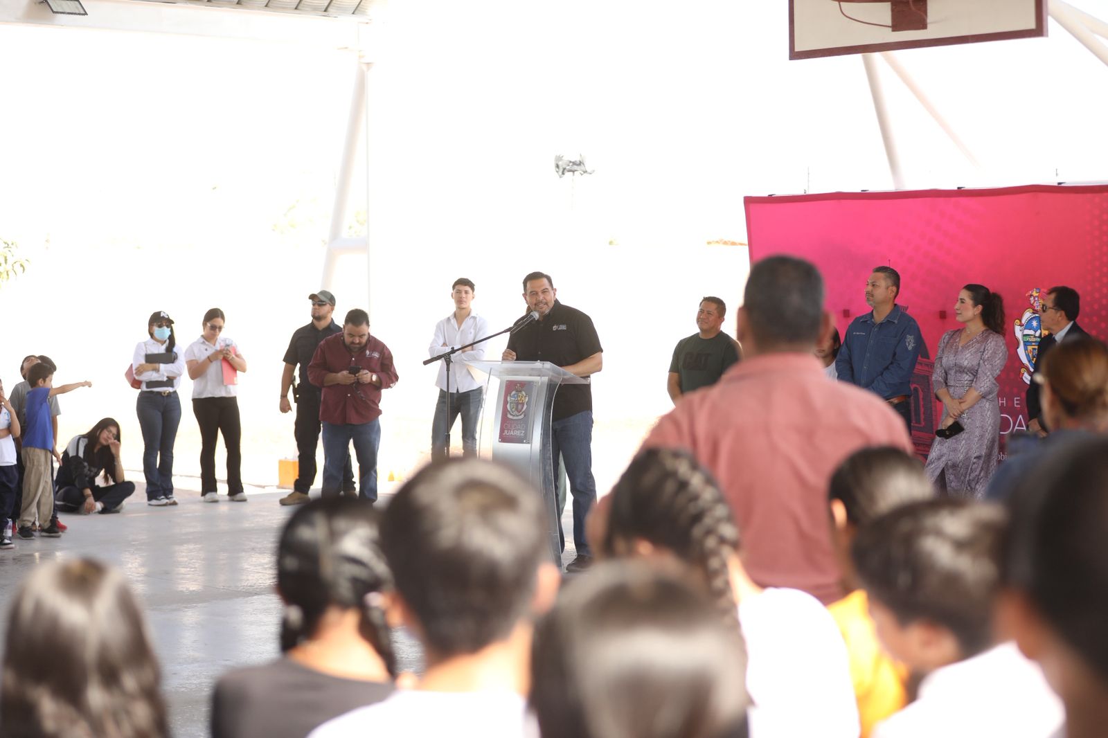 “Échenle ganas, escuchen a sus padres, a sus maestras y maestros, nosotros seguiremos ofreciéndoles espacios dignos para que se eduquen y preparen fiscalmente”, les dijo el alcalde a los alumnos.
