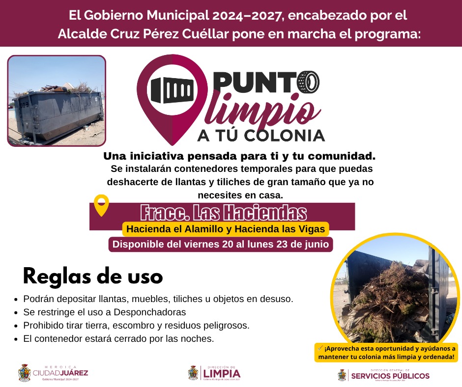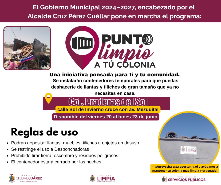 “Estamos reforzando la presencia del programa Punto Limpio a tu colonia, respondiendo a solicitudes ciudadanas y procurando mantener nuestras calles y espacios públicos libres de acumulación de residuos. Invitamos a la comunidad a utilizar estos contenedores de manera responsable”, señaló.