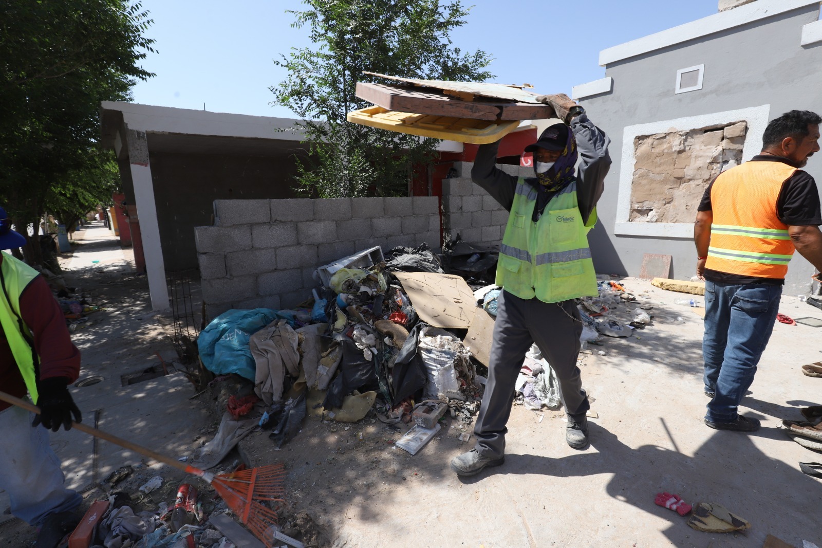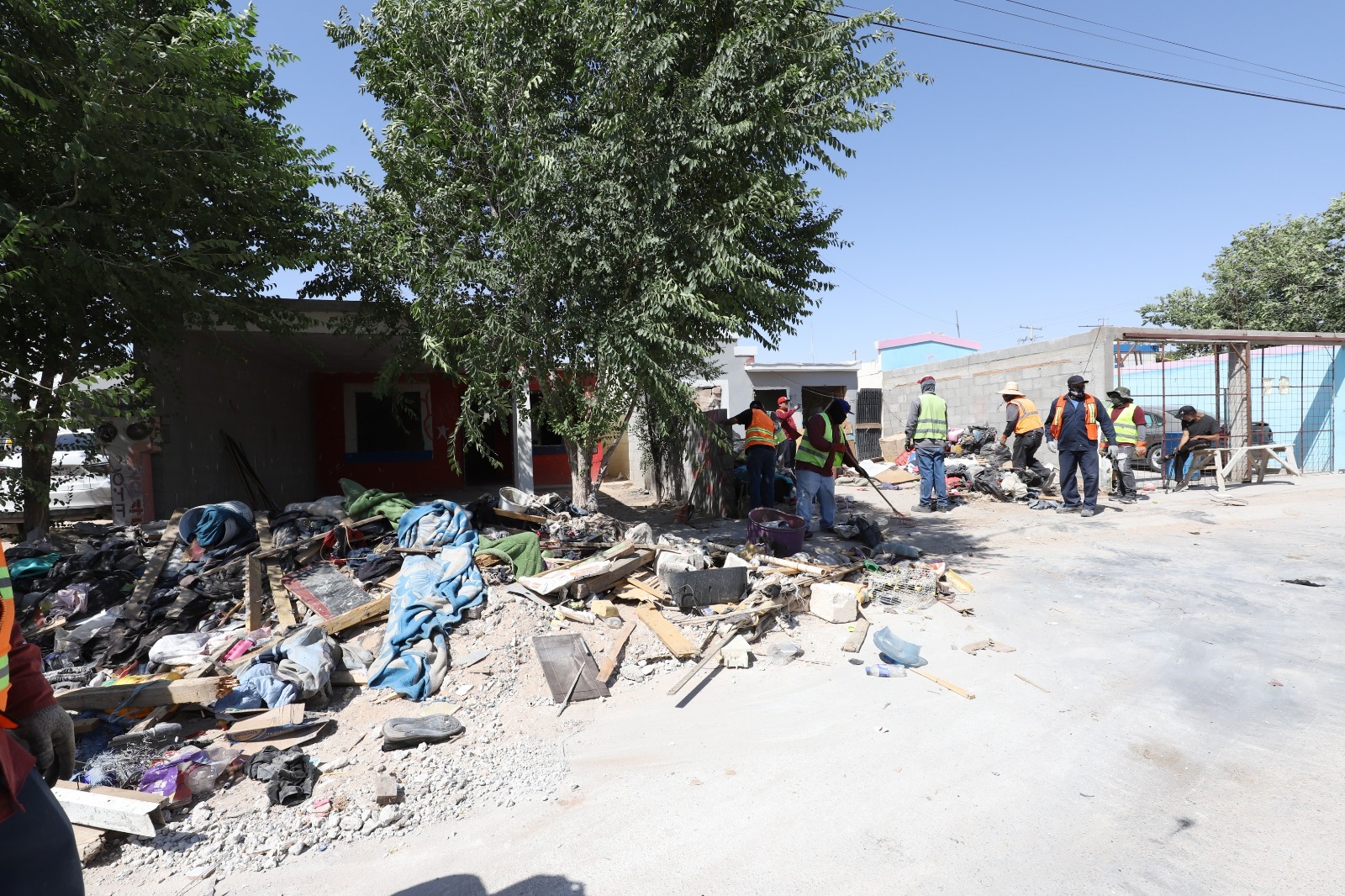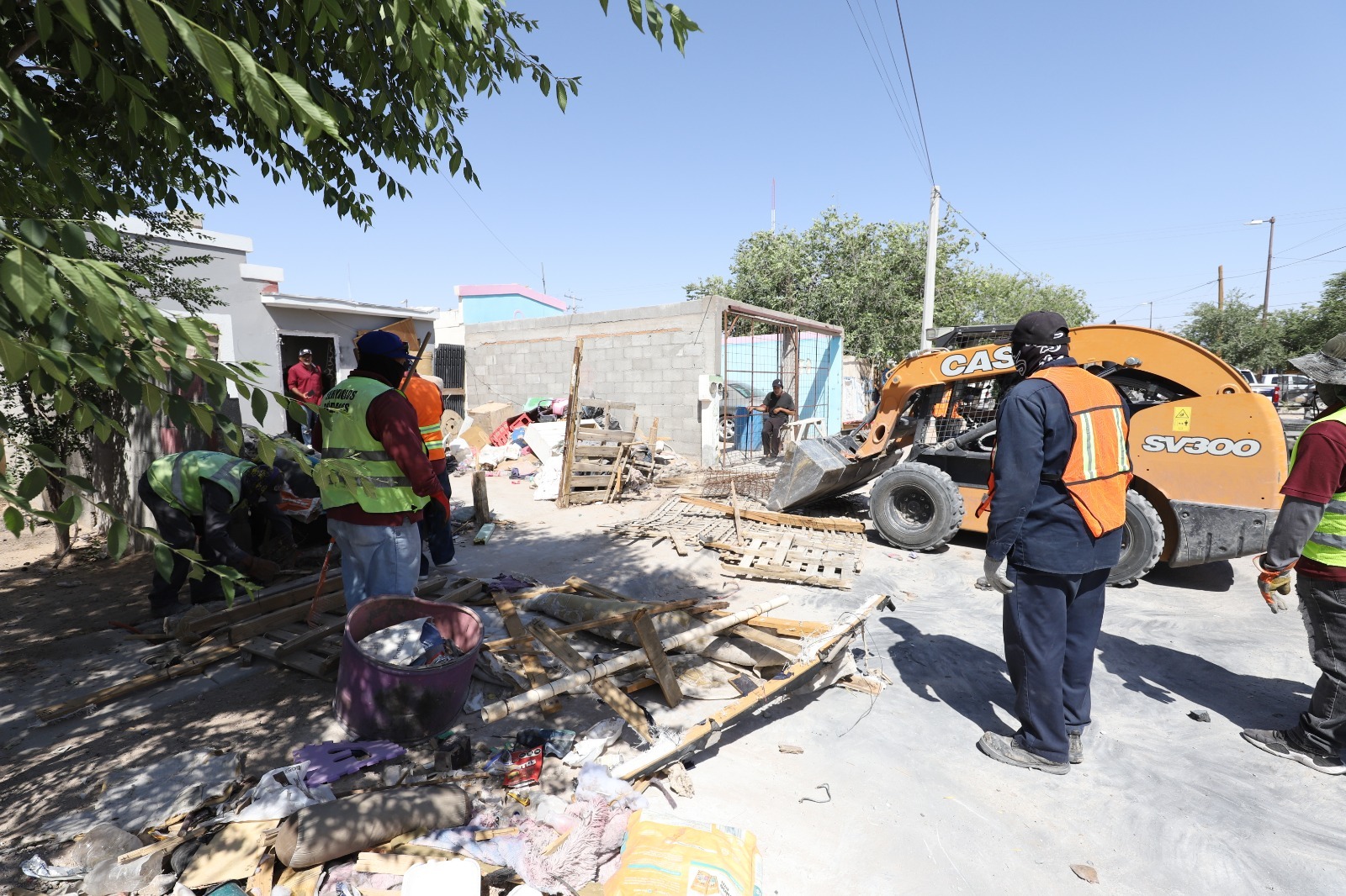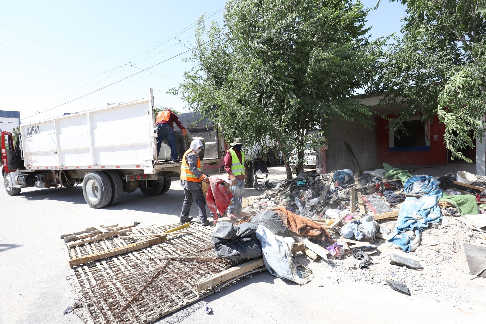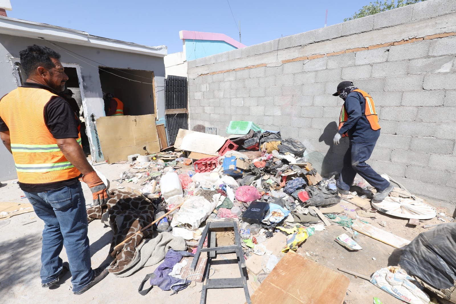 Como parte del programa de Reordenamiento Urbano, la Dirección General de Servicios Públicos, en coordinación con diversas dependencias municipales, llevó a cabo un operativo de limpieza en una vivienda ubicada en la colonia Urbivilla a Todo Color, en el Suroriente de la ciudad, la cual presentaba un severo problema de acumulación de residuos, ropa, colchones y materiales en desuso.