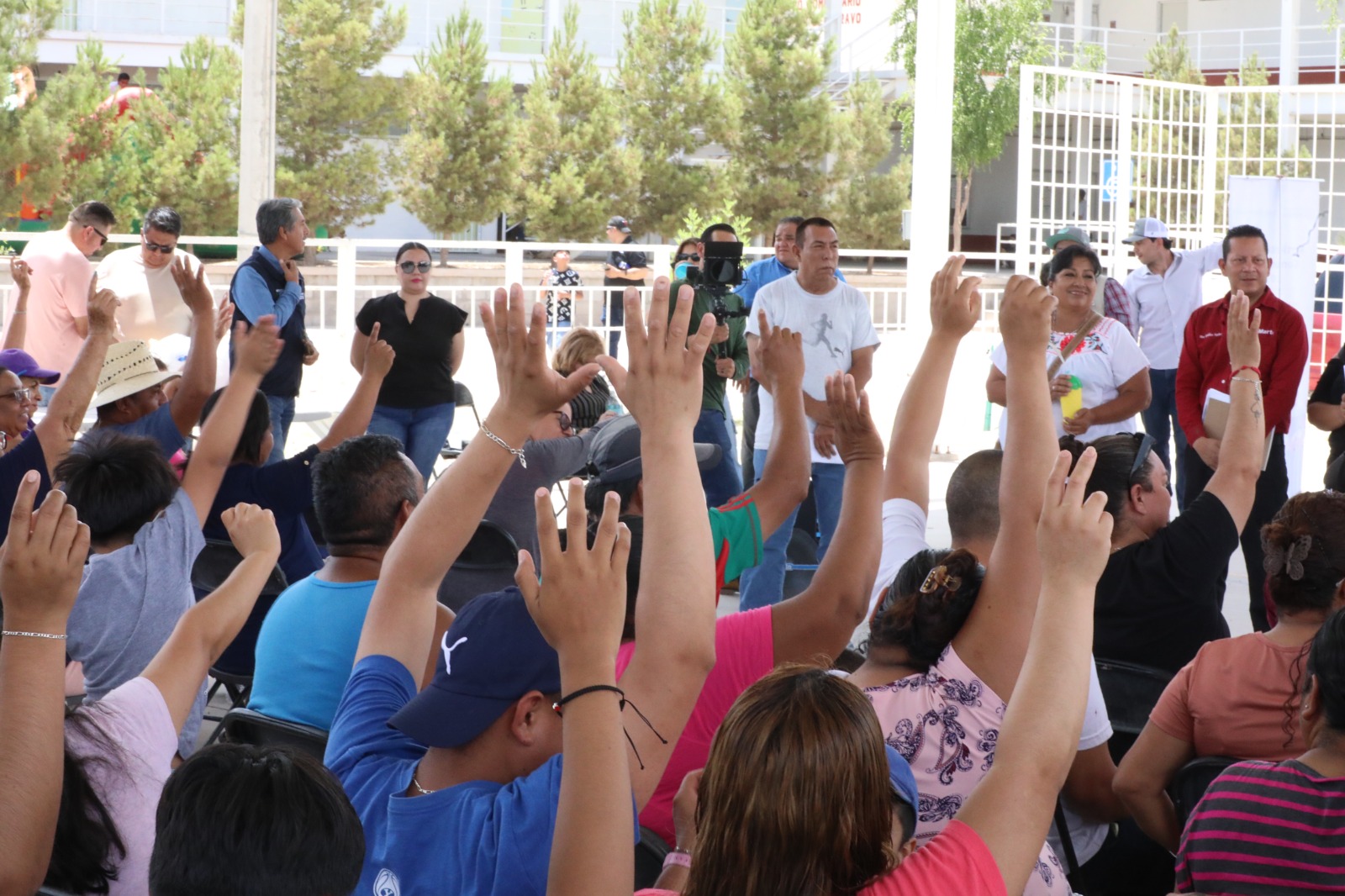 "Mediante una dinámica se conformó y tomó protesta al Comité de Obra Comunitaria de habitantes de Riberas del Bravo", declaró Irving Villa, representante de Secretaría de Desarrollo Agrario, Territorial y Urbano (SEDATU).