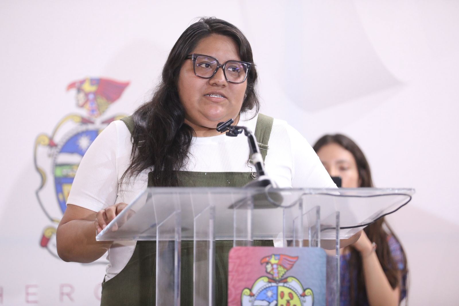 Gabriela Sánchez, una de las artistas encargadas de La Otra Periferia y licenciada en artes visuales, informó que este es un proyecto de arte de los alumnos de la Escuela Secundaria Federal 17, en donde se aborda la normalización de la violencia en las adolescencias, con una intervención artística sobre periódico y un bordado tradicional.