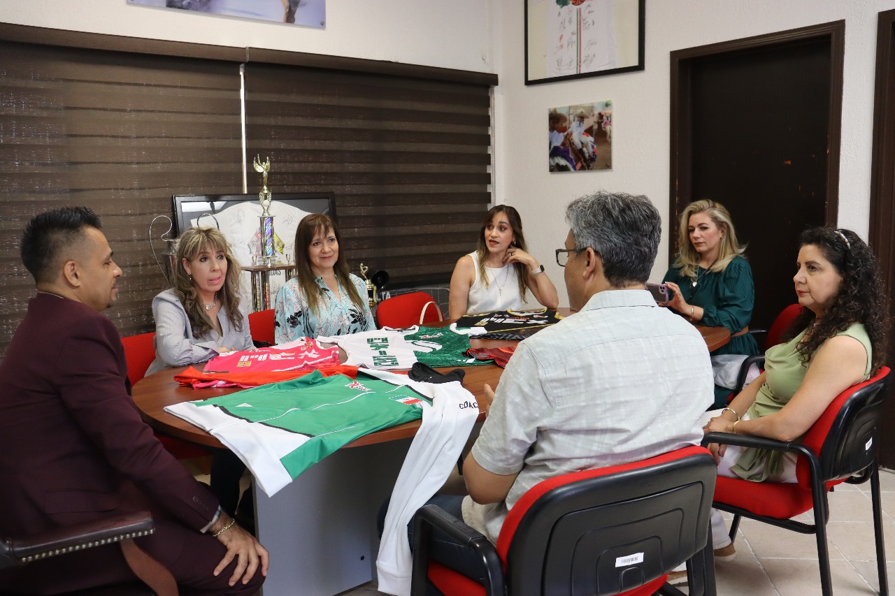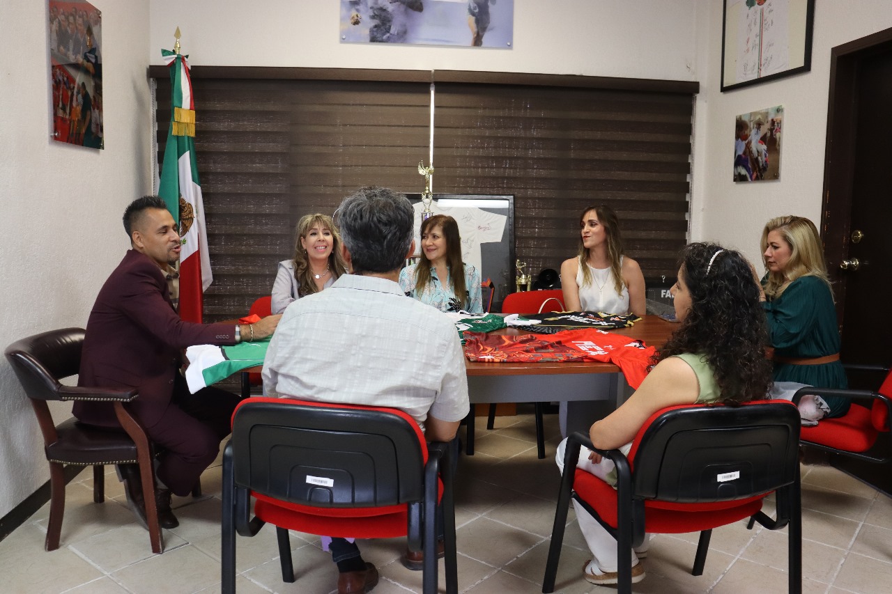Las representantes de la delegación nacional de maxi baloncesto 55 y más femenil, visitaron al director del Instituto Municipal del Deporte y Cultura Física de Juárez, Juan Escalante.