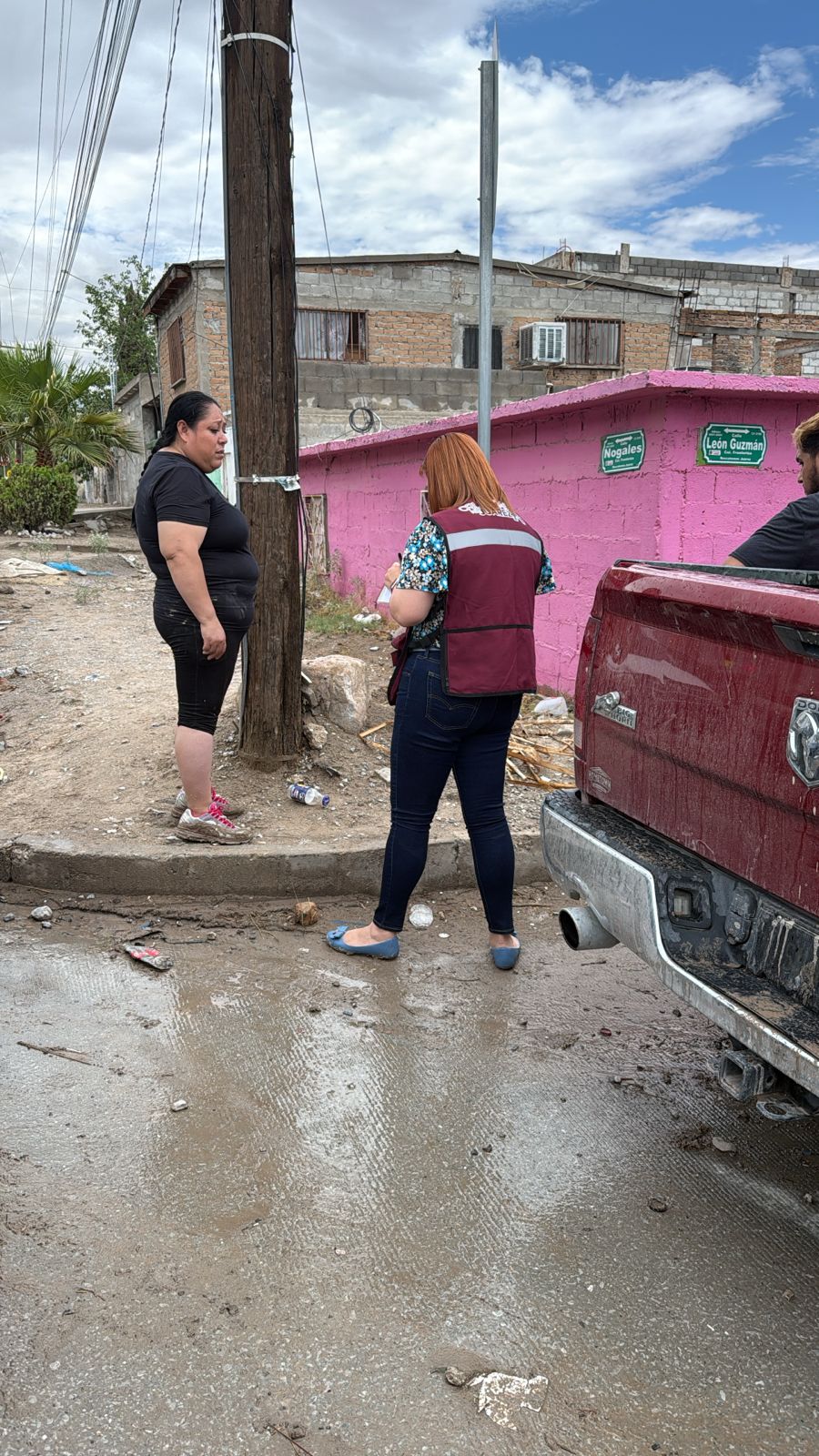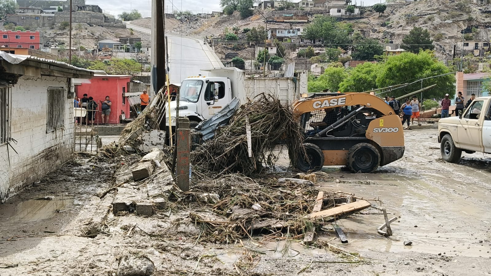Empleados de diversas dependencias municipales continúan trabajando de manera coordinada en el poniente de la ciudad para ayudar a las familias afectadas por las intensas lluvias.