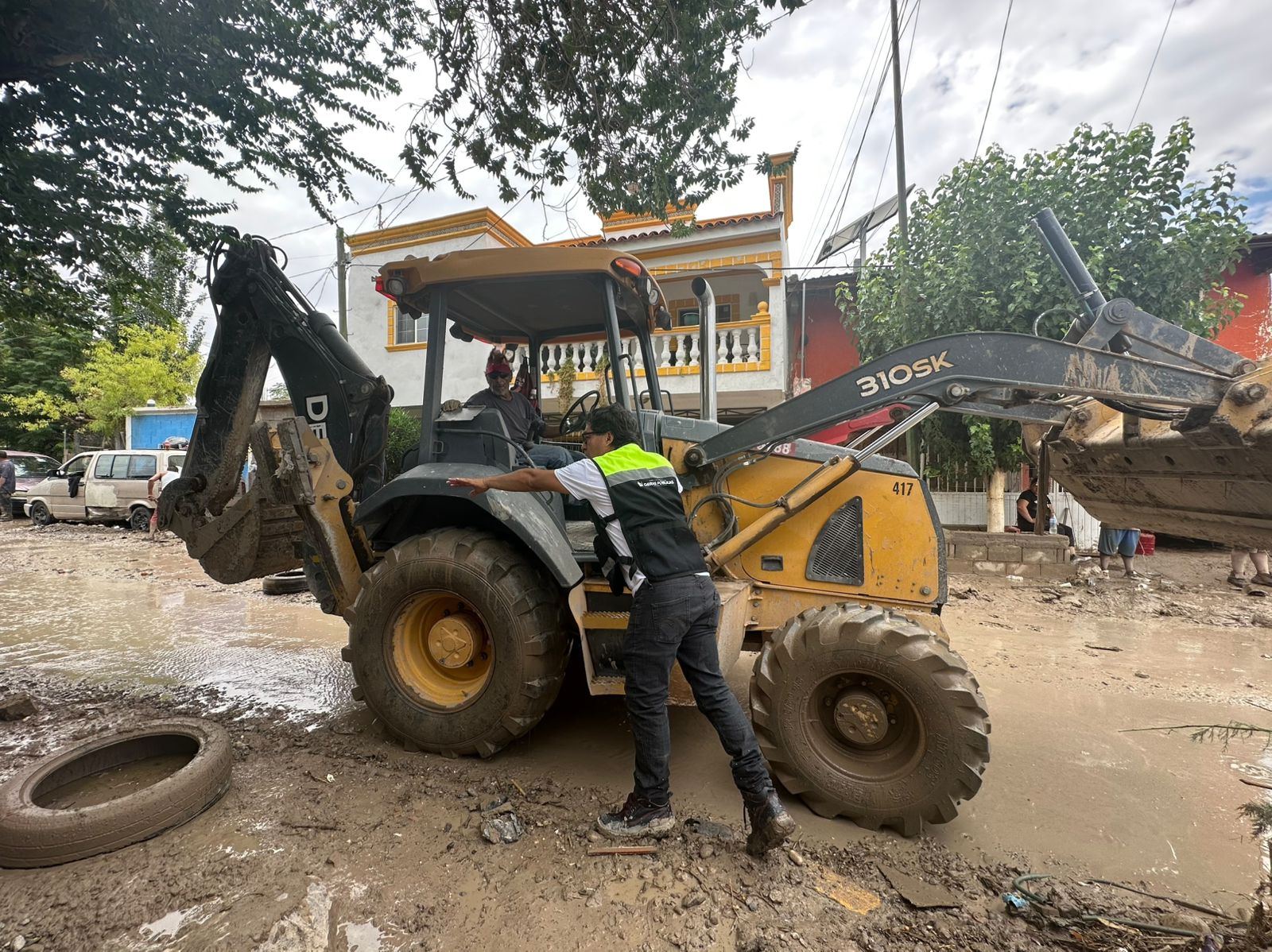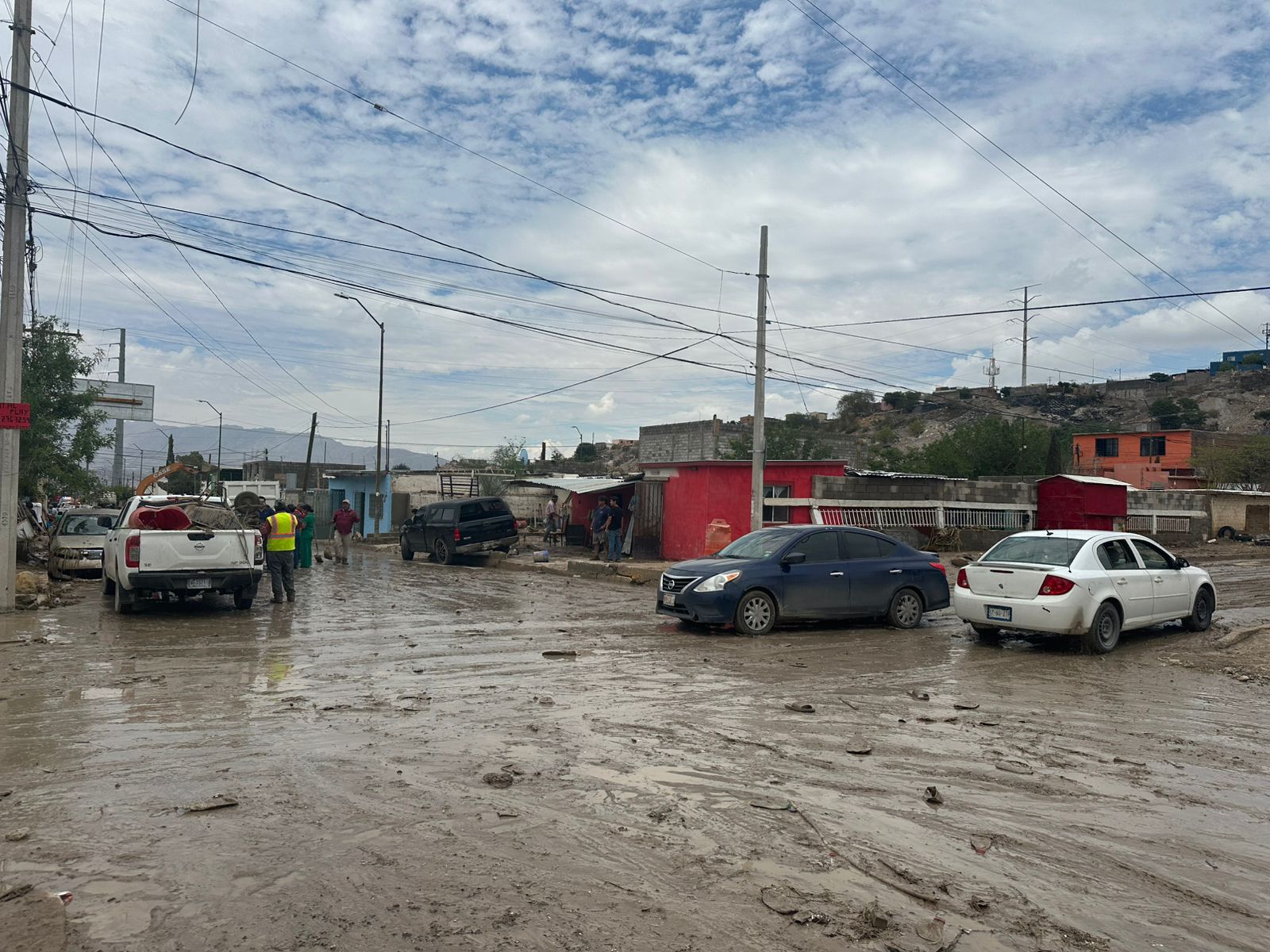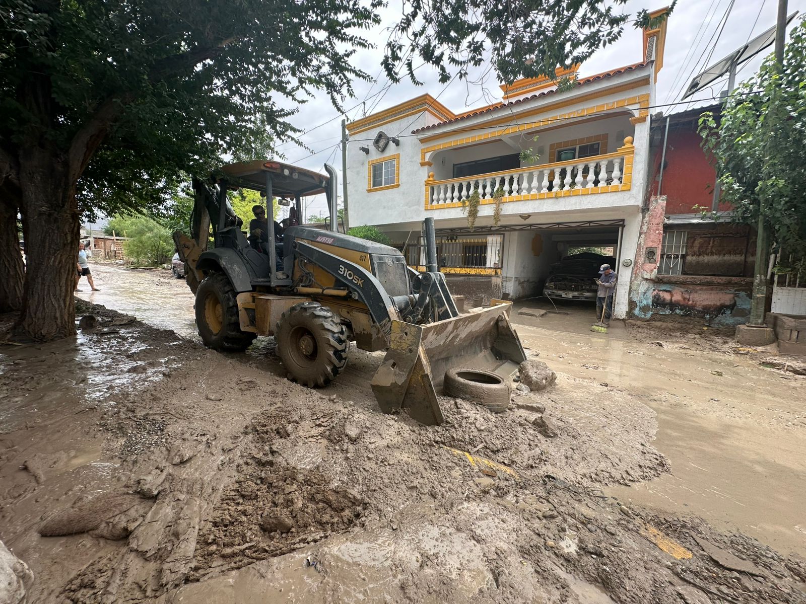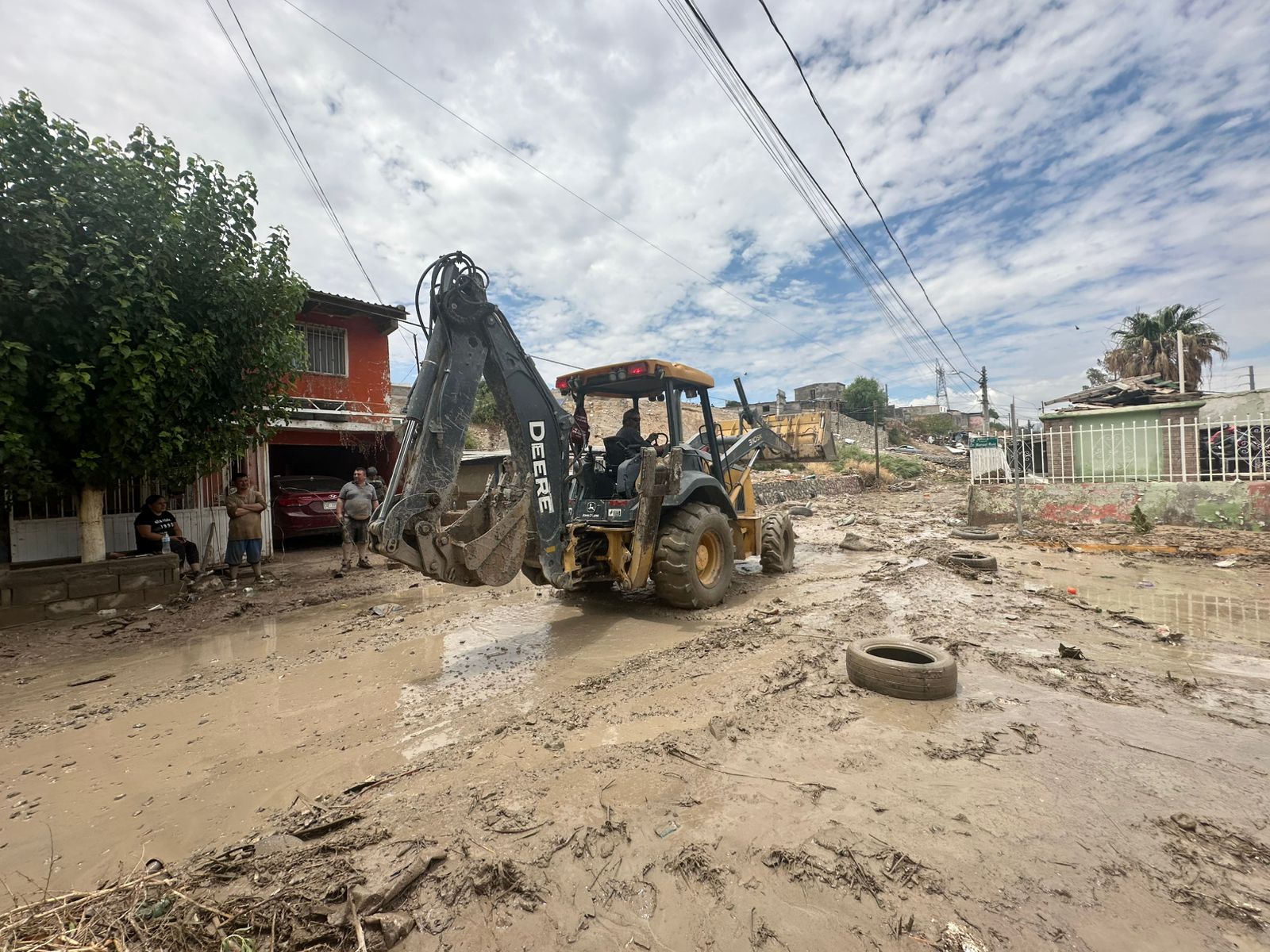 Daniel González García, titular de la dependencia, informó que con retroexcavadora y dos camiones se trabaja en el retiro de tierra de arrastre de la calle Loreto y Dr. Manuel Ruíz, ubicadas en la colonia Fronteriza, en donde la fuerte corriente trajo consigo gran cantidad de basura y a su vez lodo que perjudicaba las viviendas de dicha área.