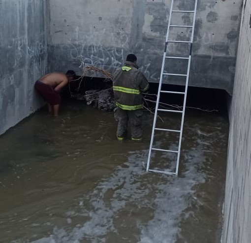 Elementos de la Dirección General de Protección Civil protagonizaron un emotivo rescate al salvar a un perro que se encontraba atrapado en un canal de agua pluvial en la colonia Azteca.