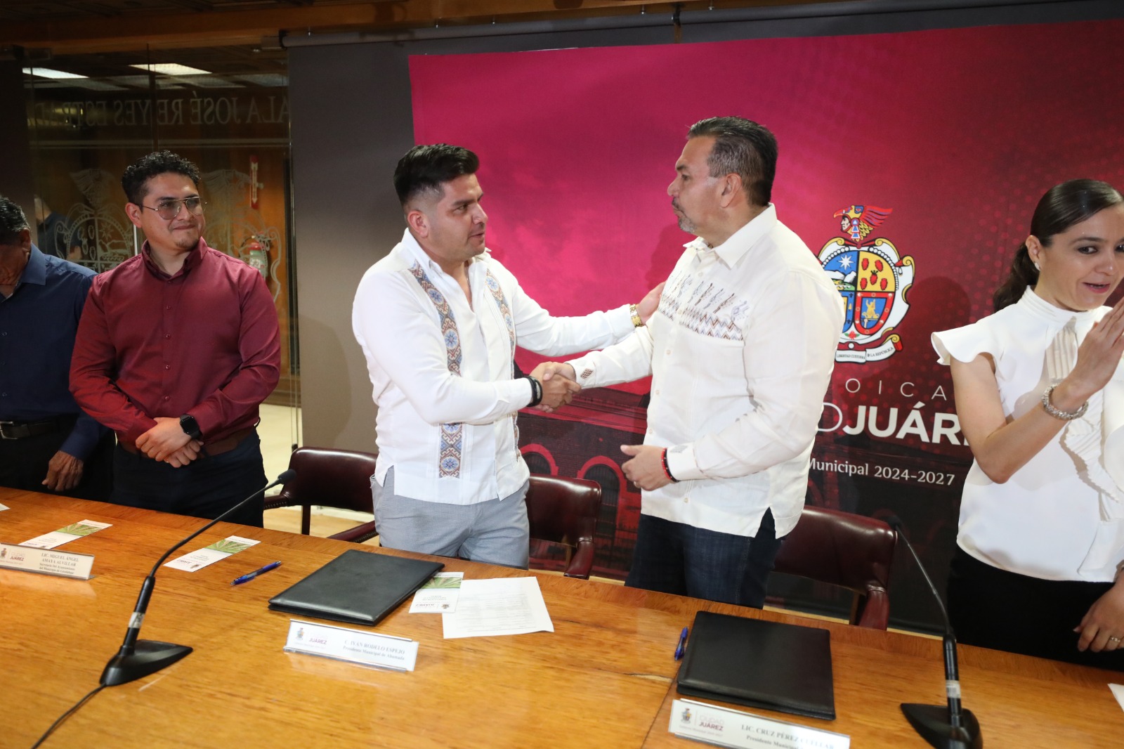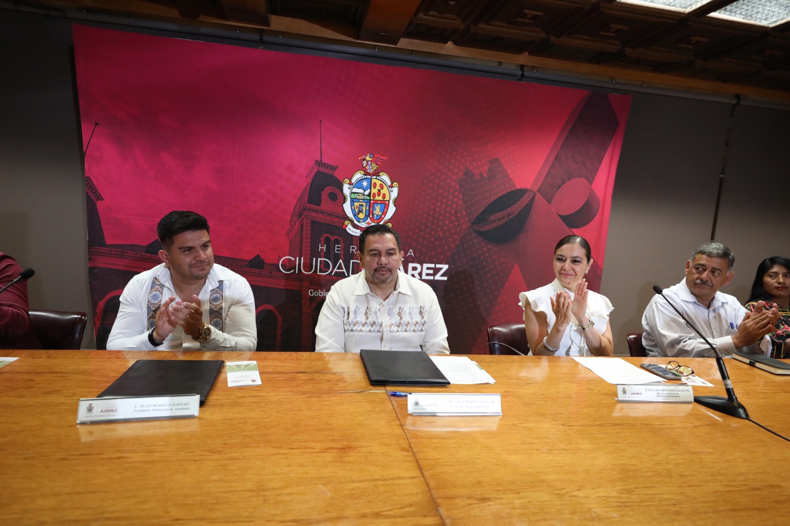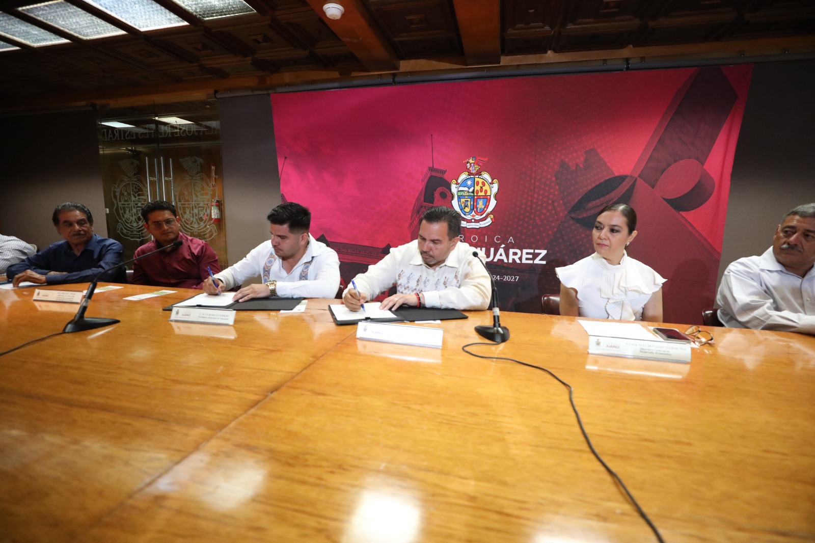 El alcalde Cruz Pérez Cuéllar encabezó la reunión y agradeció a los presentes por acudir a la firma del convenio, que será de gran utilidad, ya que las acciones a realizar se han implementado por tres años y los testimonios en El Valle de Juárez son muy positivos.