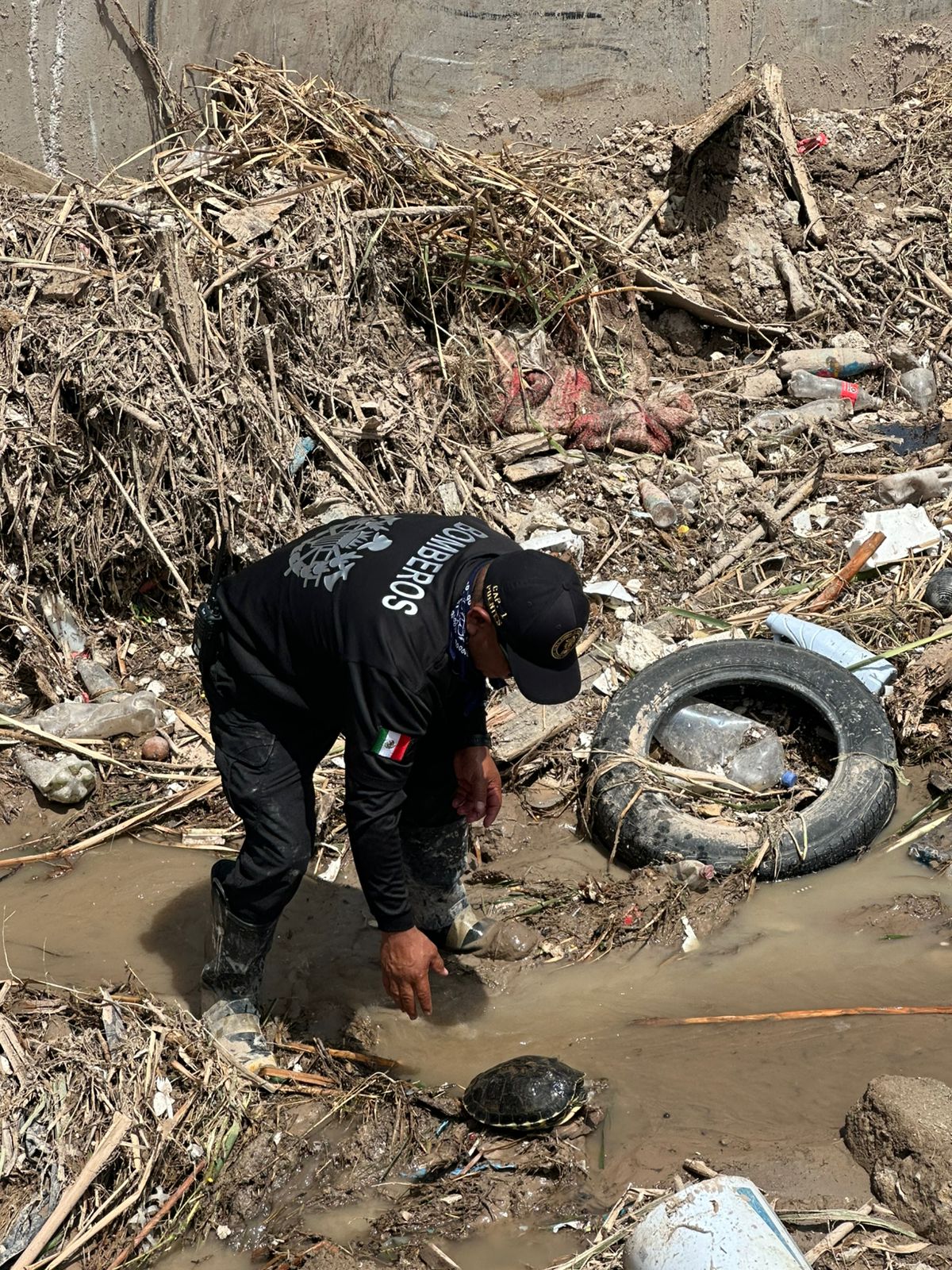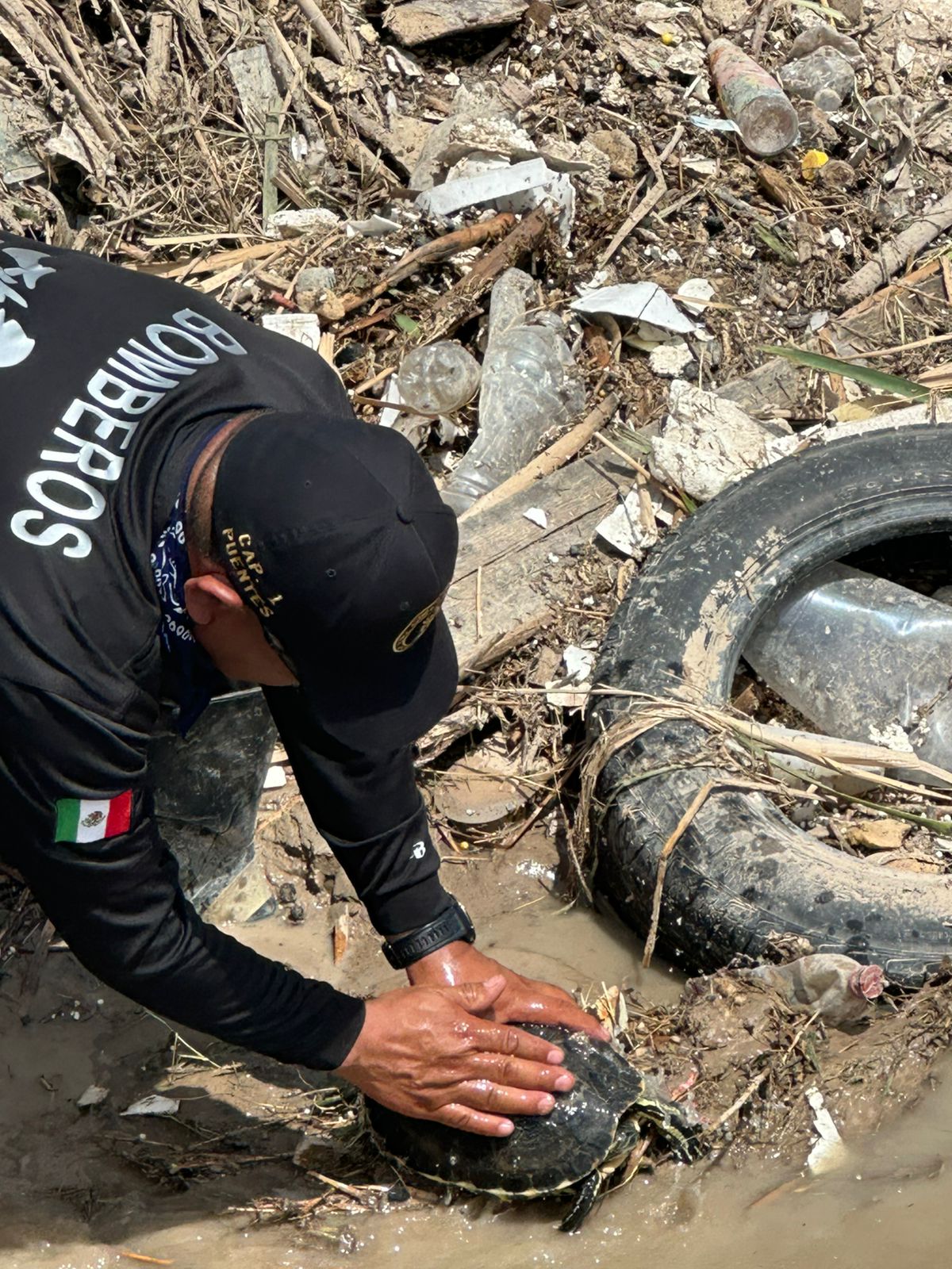 Elementos del Departamento de Bomberos de Ciudad Juárez, adscritos a la Dirección General de Protección Civil, realizaron el rescate de una tortuga mientras llevaban a cabo trabajos de desazolve en un pozo de captación, informó Sergio Rodríguez, titular de la dependencia.