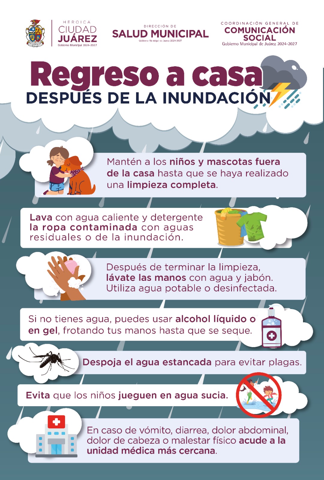 La Dirección de Salud, en conjunto con la Coordinación General de Comunicación Social, emite diversas recomendaciones para asear las viviendas después de sufrir una inundación.