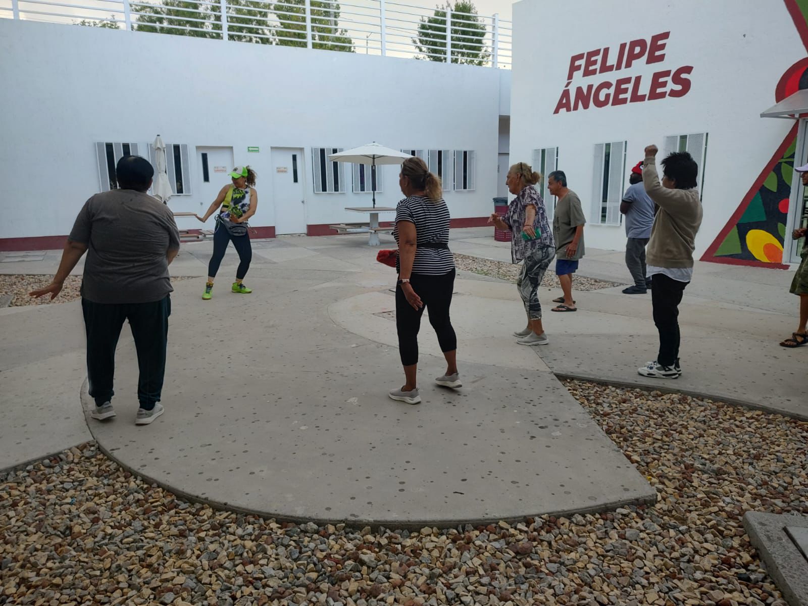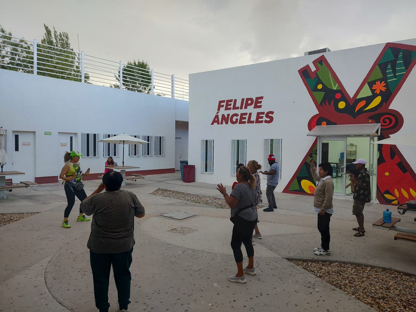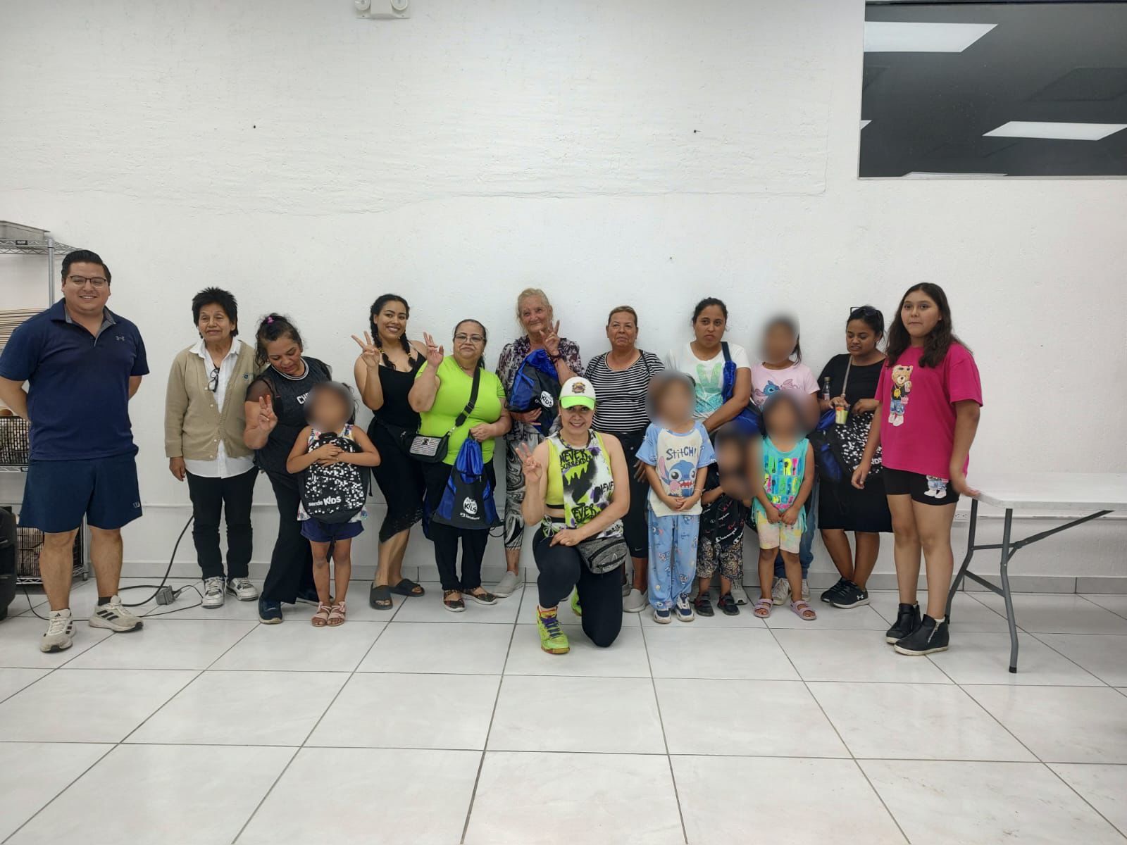 Una de las acciones que se realizaron fue la clase de zumba, donde participaron vecinas del sector y personas migrantes que están en el albergue. Esta sesión fue impartida por la instructora María de Jesús Hinojosa, quien motivó a todas y todos a disfrutar de un momento de activación física y convivencia.