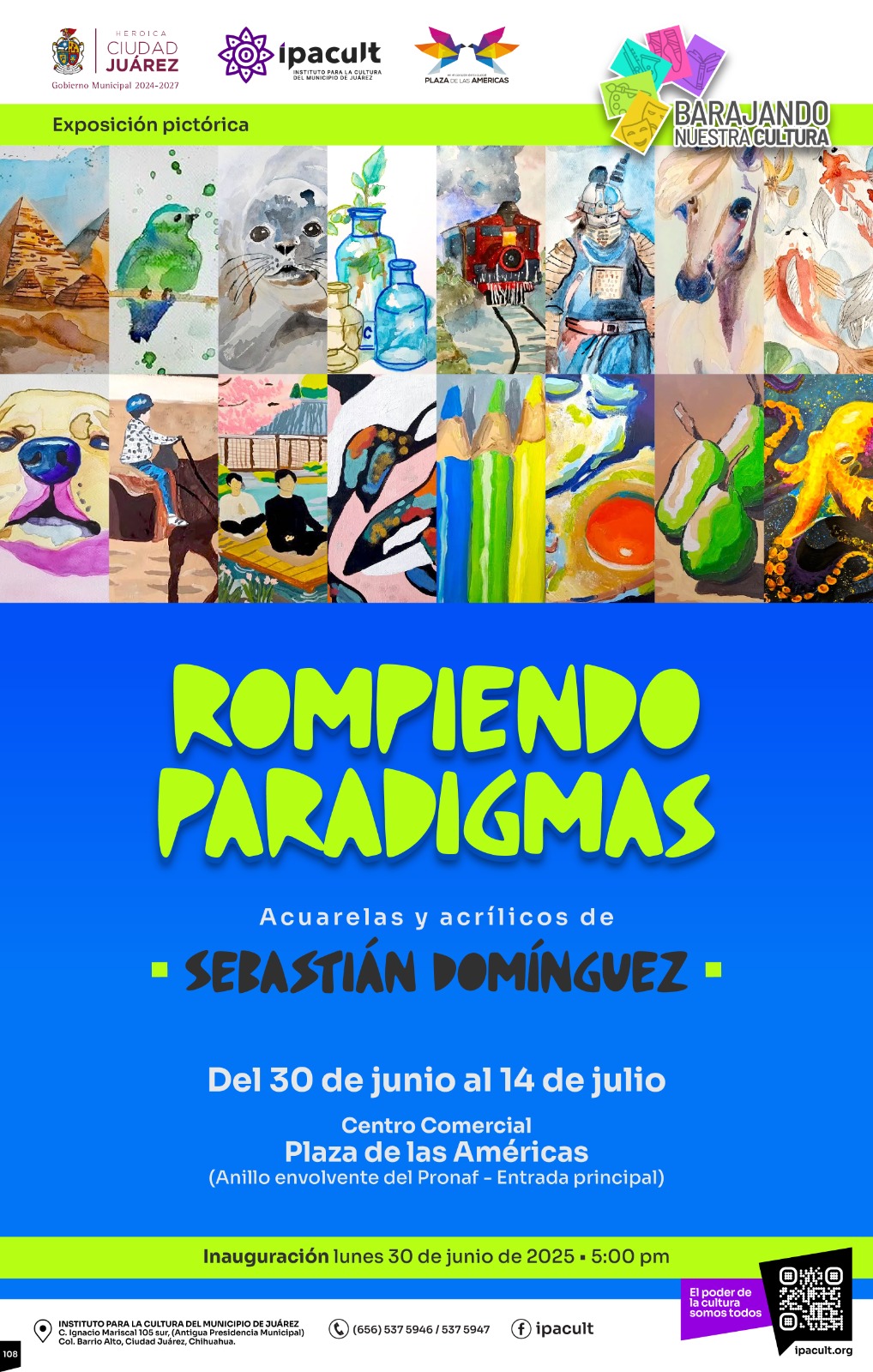 El Instituto para la Cultura del Municipio de Juárez (IPACULT) continúa fortaleciendo el tejido cultural de la ciudad a través del impulso a jóvenes talentos con su respaldo a la exposición pictórica “Rompiendo paradigmas”, del artista infantil Sebastián Domínguez.