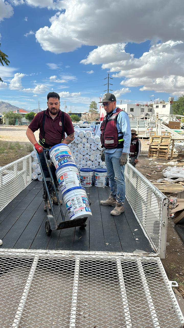 De igual forma se da a la tarea de distribuir material como pintura, cemento e impermeabilizante a las familias afectadas.