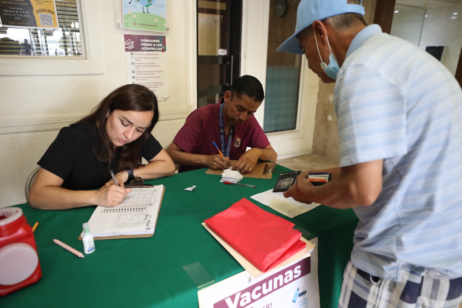 Personal de la dependencia permaneció esta semana en las instalaciones de la Presidencia Municipal, donde aplicó las dosis a empleados y a la ciudadanía que acudió a realizar algún trámite.