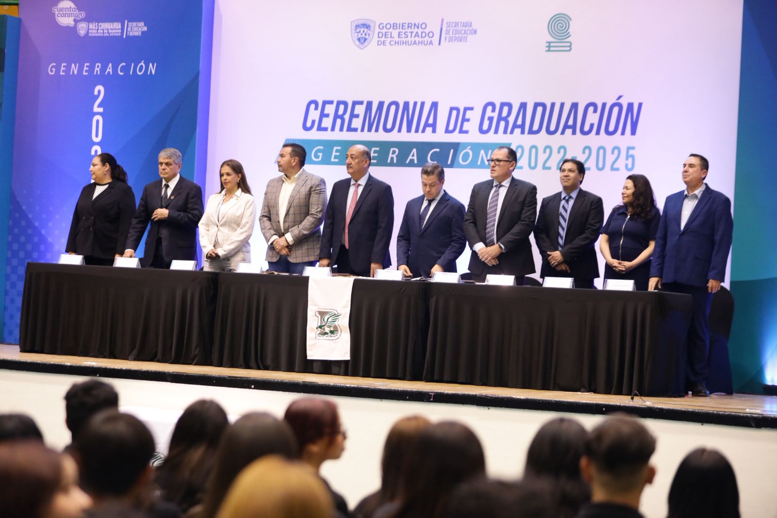 El Presidente Municipal, Cruz Pérez Cuéllar asistió como invitado de honor a la ceremonia, en la que reconoció el esfuerzo y dedicación de los jóvenes que a lo largo de los últimos tres años cursaron la educación media superior.