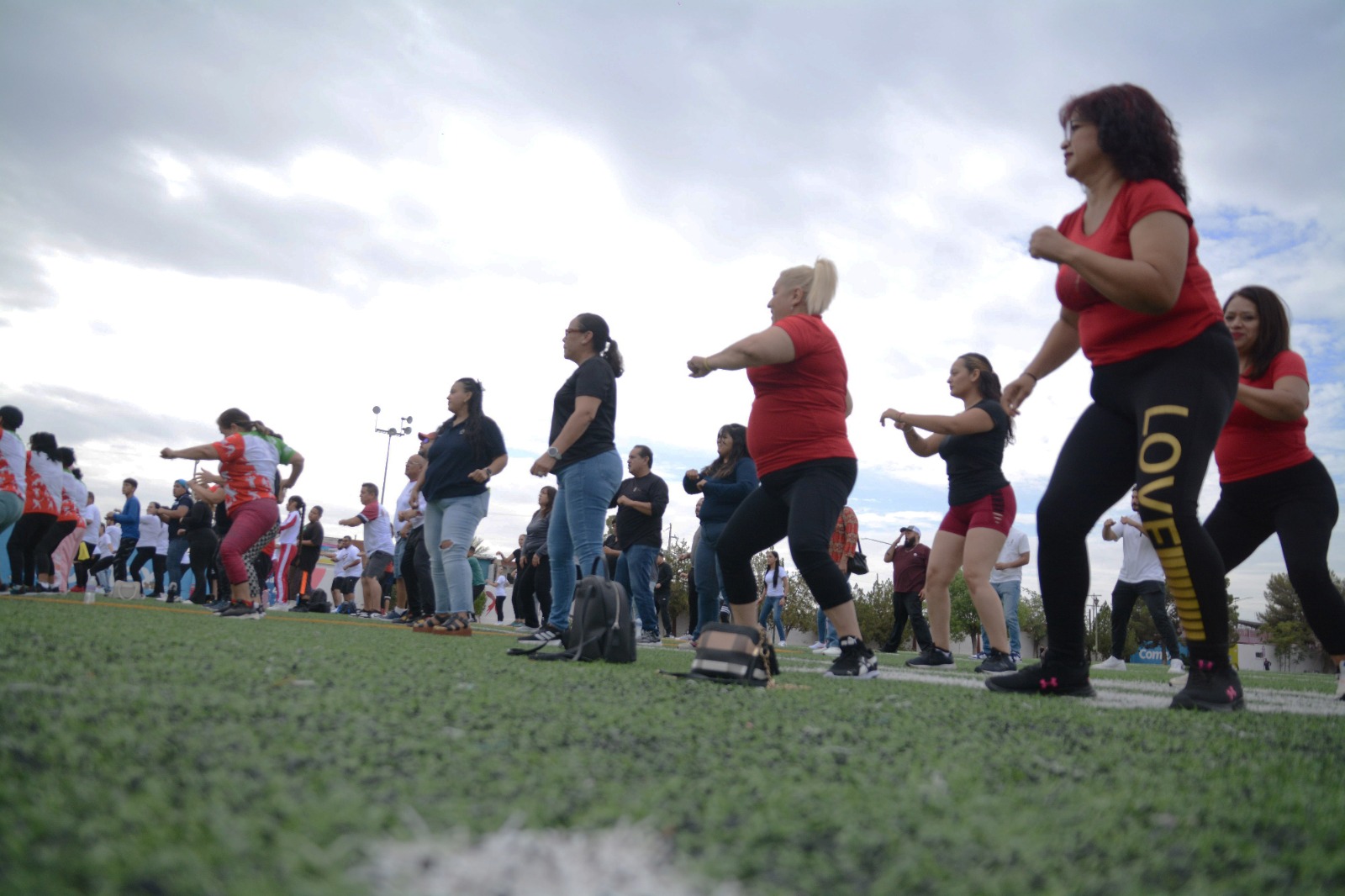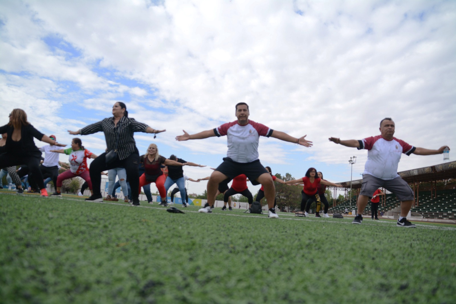 Dijo que la actividad estuvo a cargo del profesor Francisco Palacios, quien instruyó a las y los participantes en una rutina dinámica para mejorar su salud y condición física.