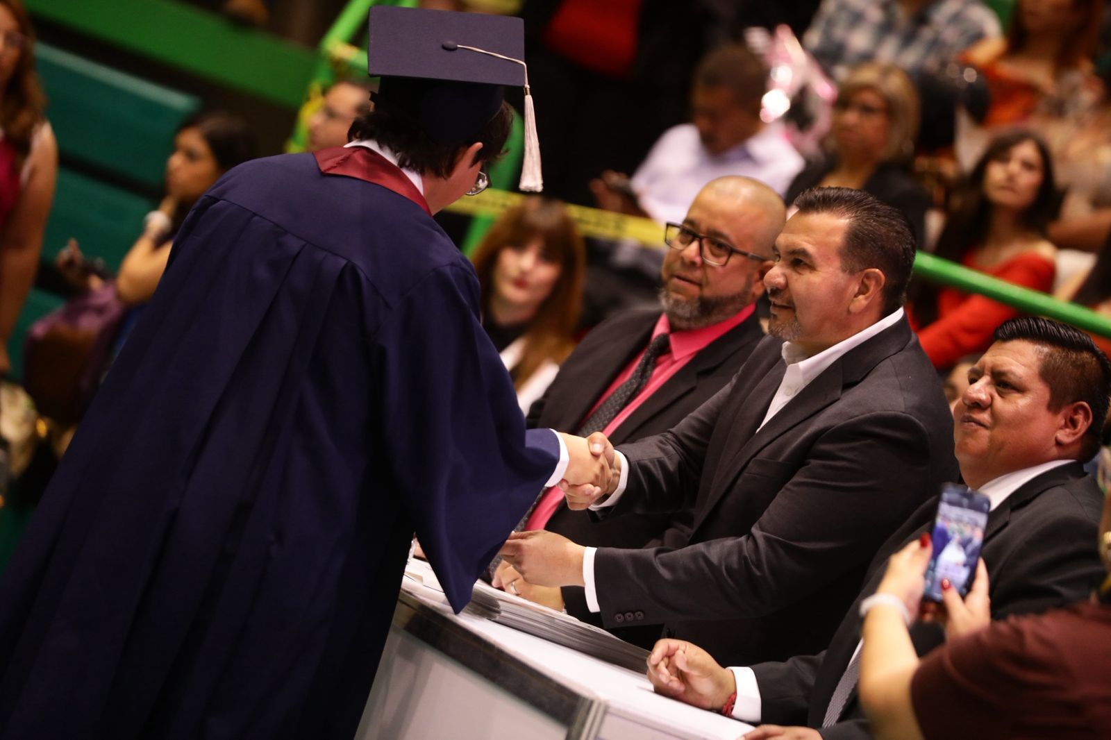 En el marco de la graduación del Centro de Bachillerato Industrial y de Servicios número 114, el Presidente Municipal, Cruz Pérez Cuéllar, reconoció el esfuerzo de los jóvenes, así como de los padres y madres de familia de quienes hoy terminaron su educación media superior.