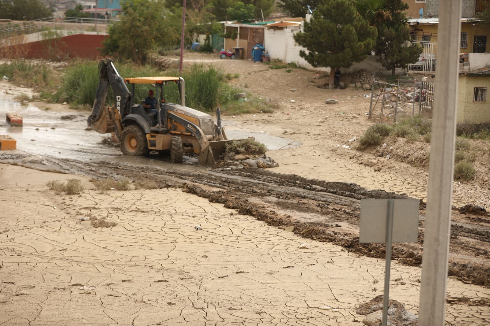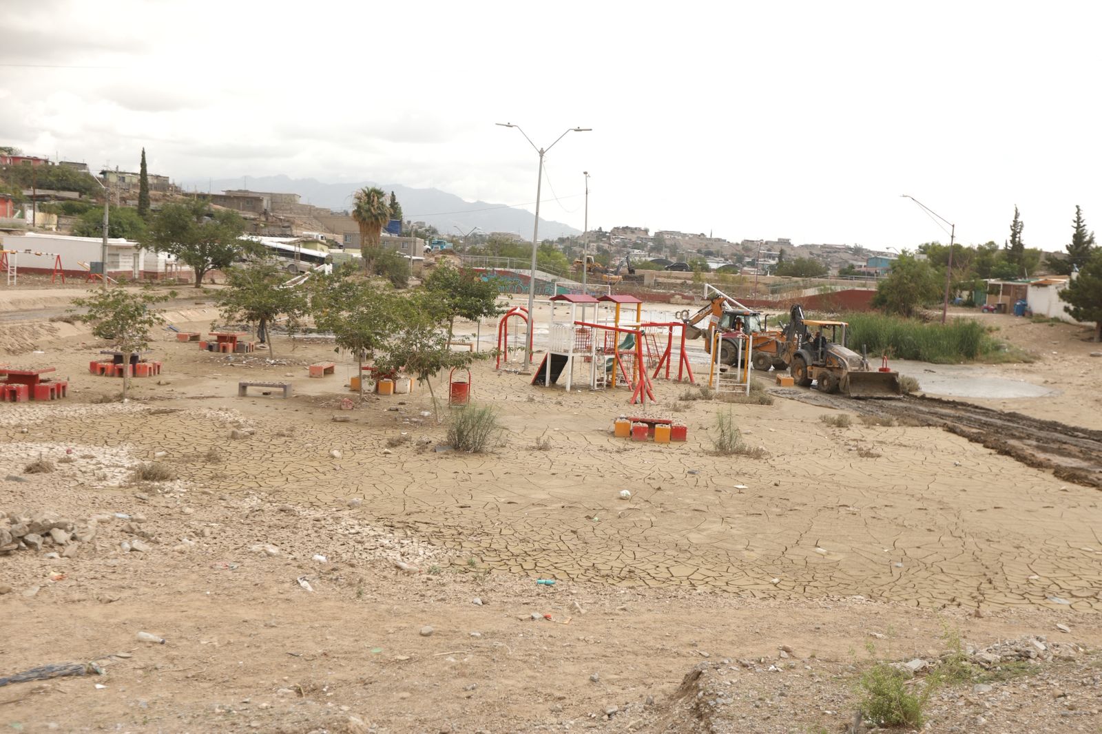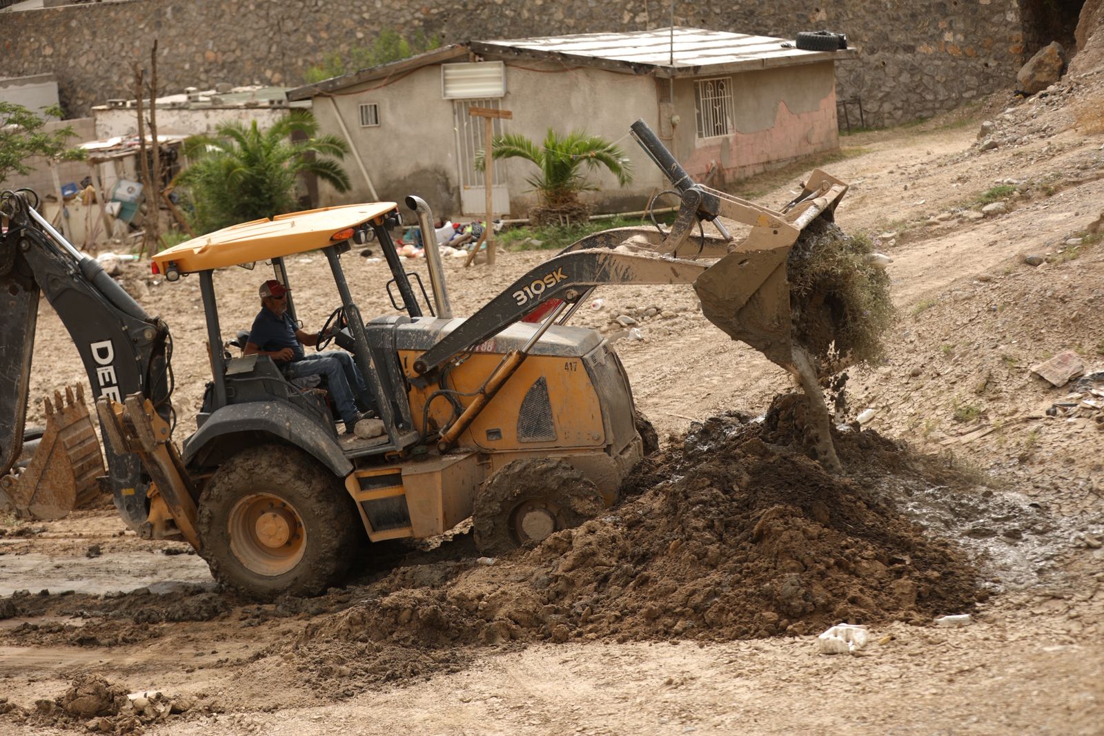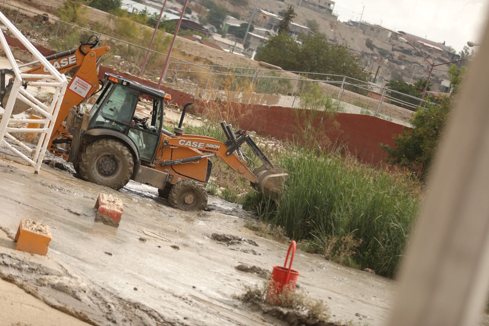 A fin de continuar con las labores de reconstrucción y limpieza de las zonas afectadas por las fuertes lluvias ocurridas durante la semana pasada en el poniente de la ciudad, la Dirección General de Obras Públicas intensificó trabajos en diversos puntos, como las colonias Plutarco Elías Calles y Fronteriza Baja.