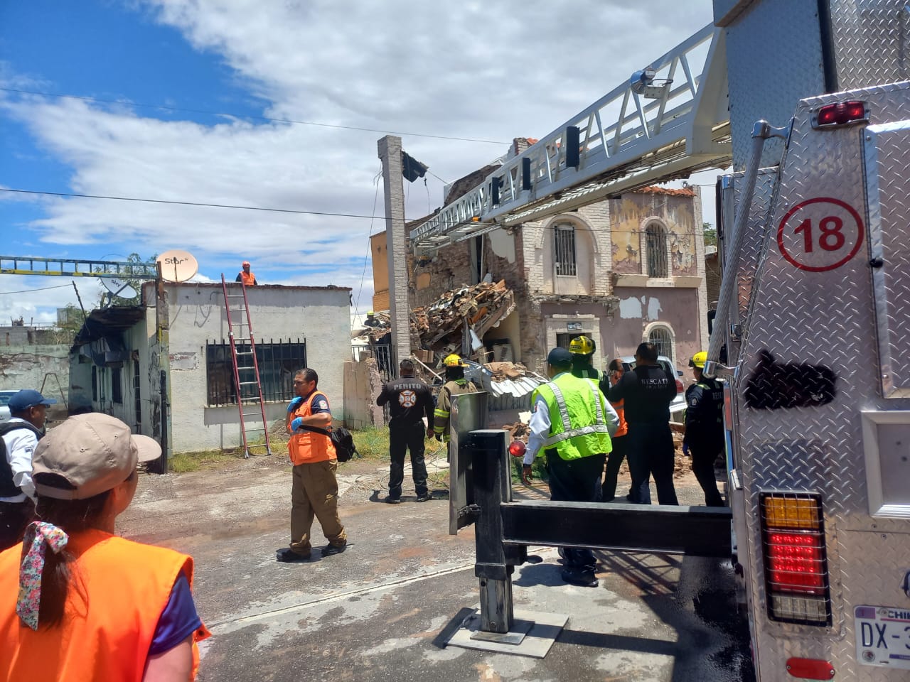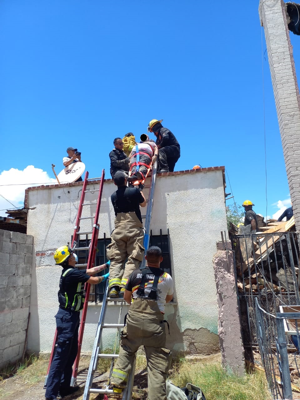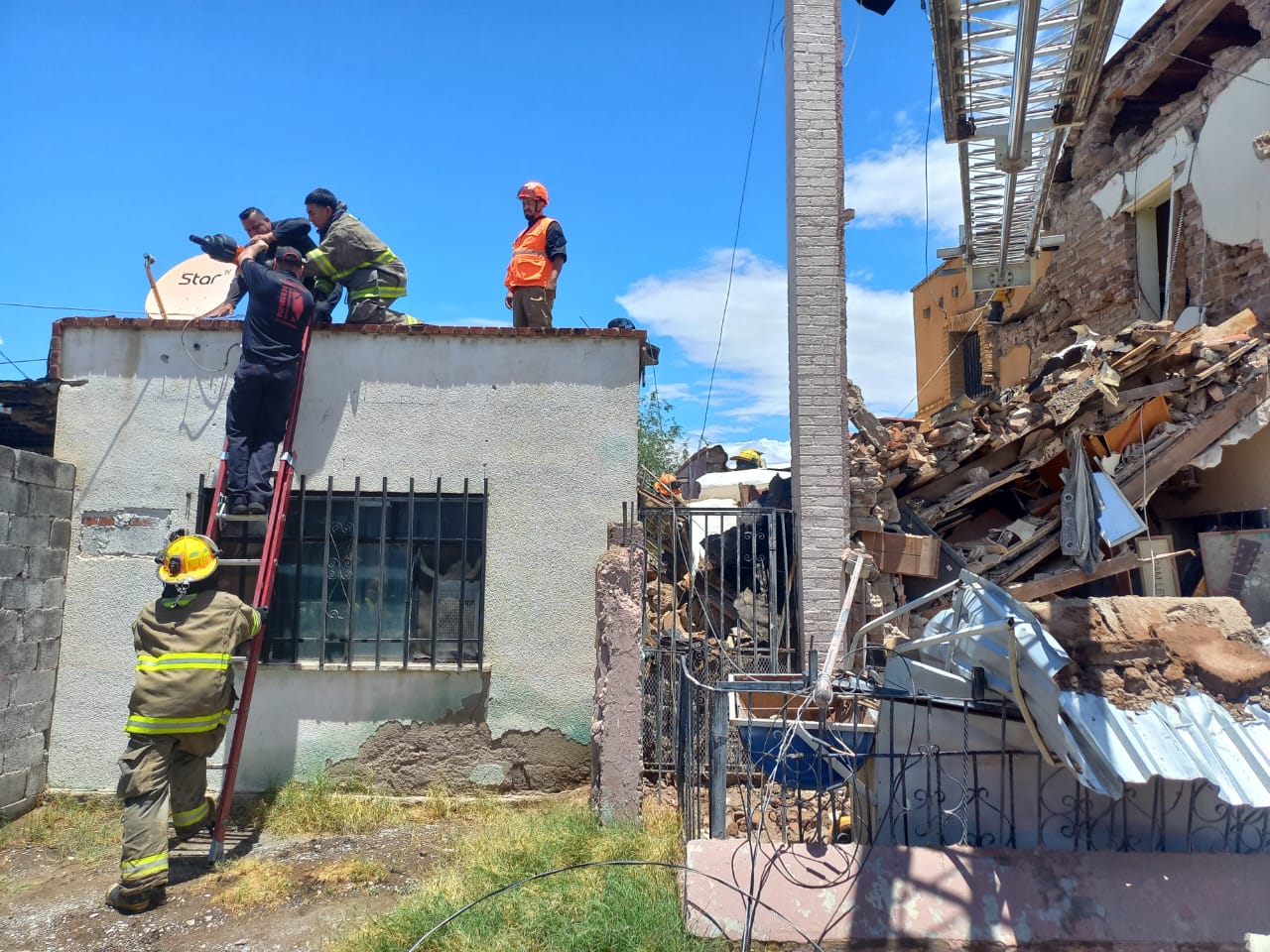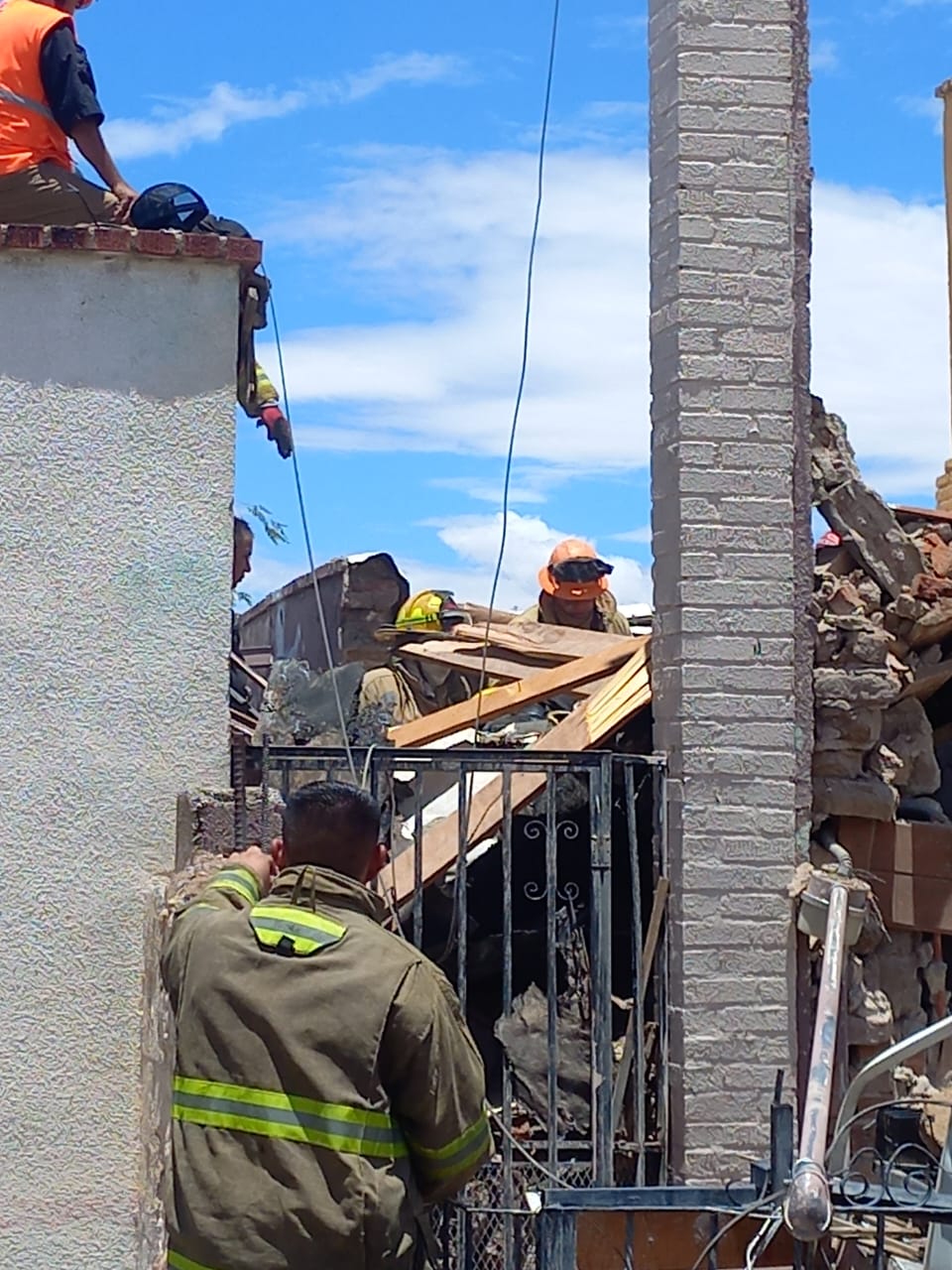 Este miércoles, elementos de los Departamentos de Bomberos y Rescate atendieron una emergencia por el derrumbe parcial de una vivienda de dos plantas en la colonia Partido Escobedo.