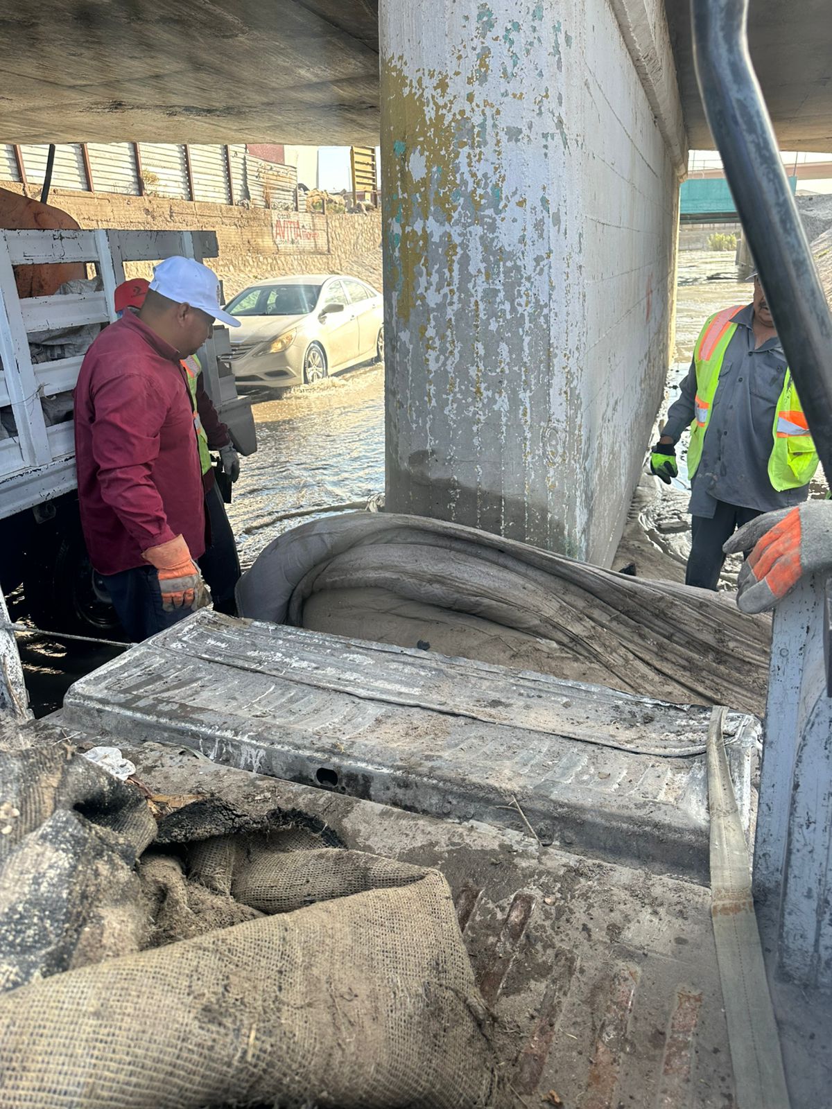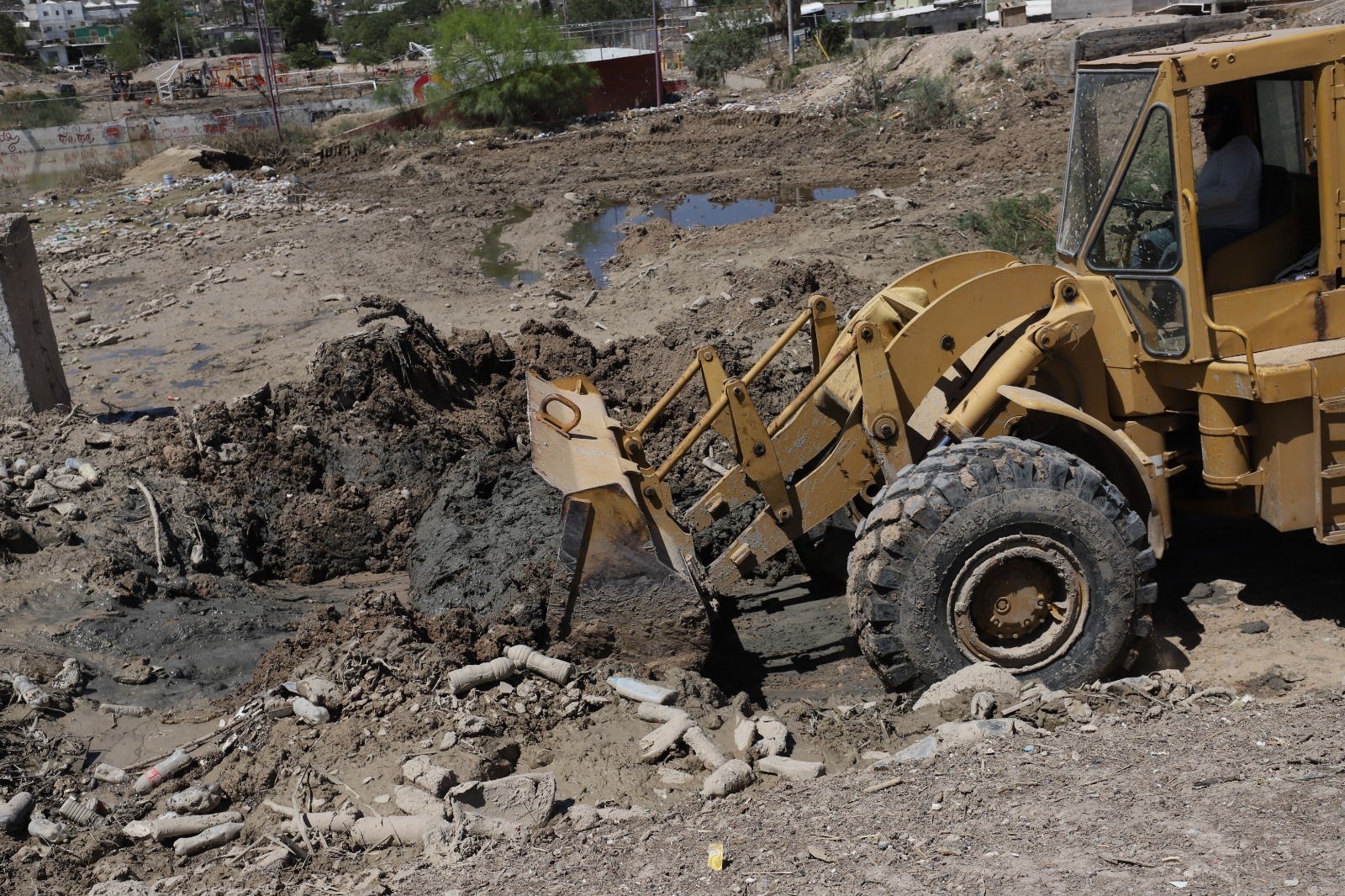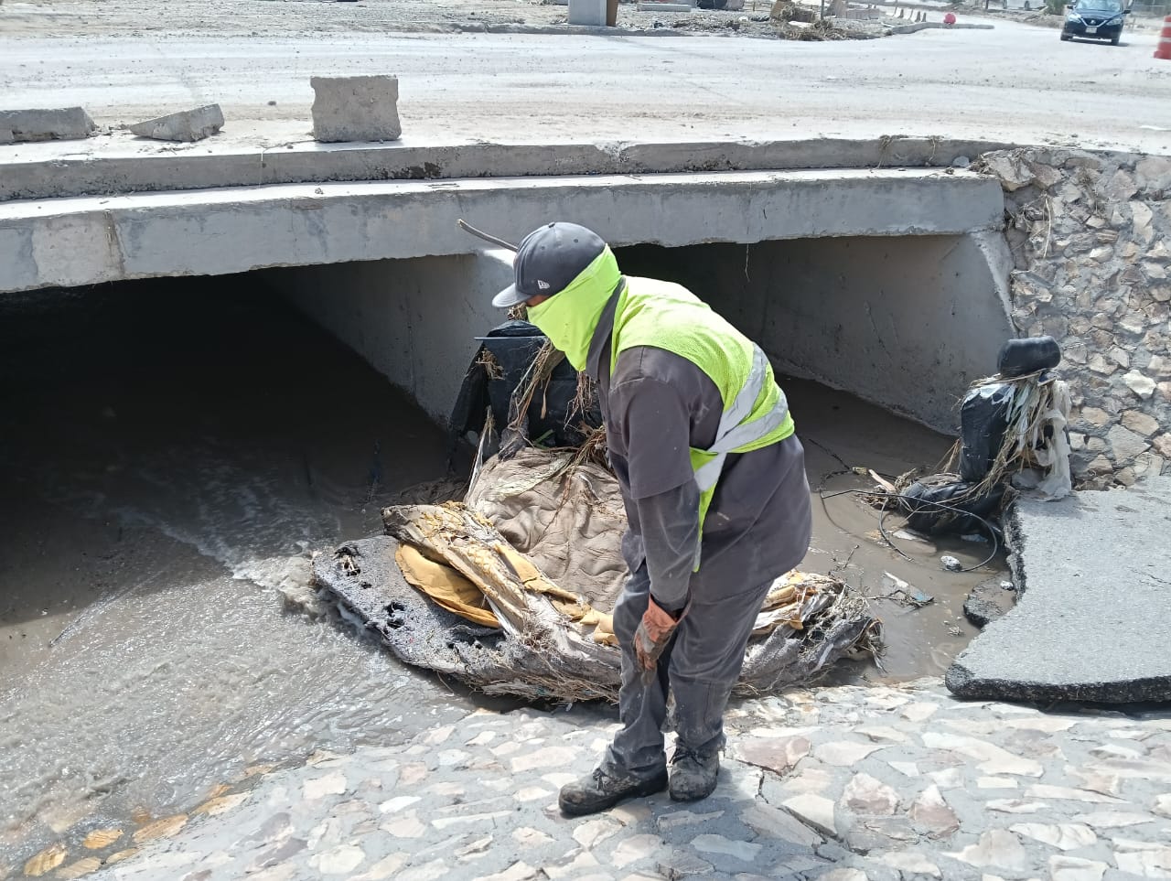 También se incorporó la Dirección de Obras Públicas con trabajos coordinados en la limpieza del dique de la colonia Plutarco Elías calles. Otros trabajos han sido retiro de hierba y limpieza general del Arroyo de Las Víboras y en la colonia Plutarco Elías Calles, así como el retiro de vehículos.