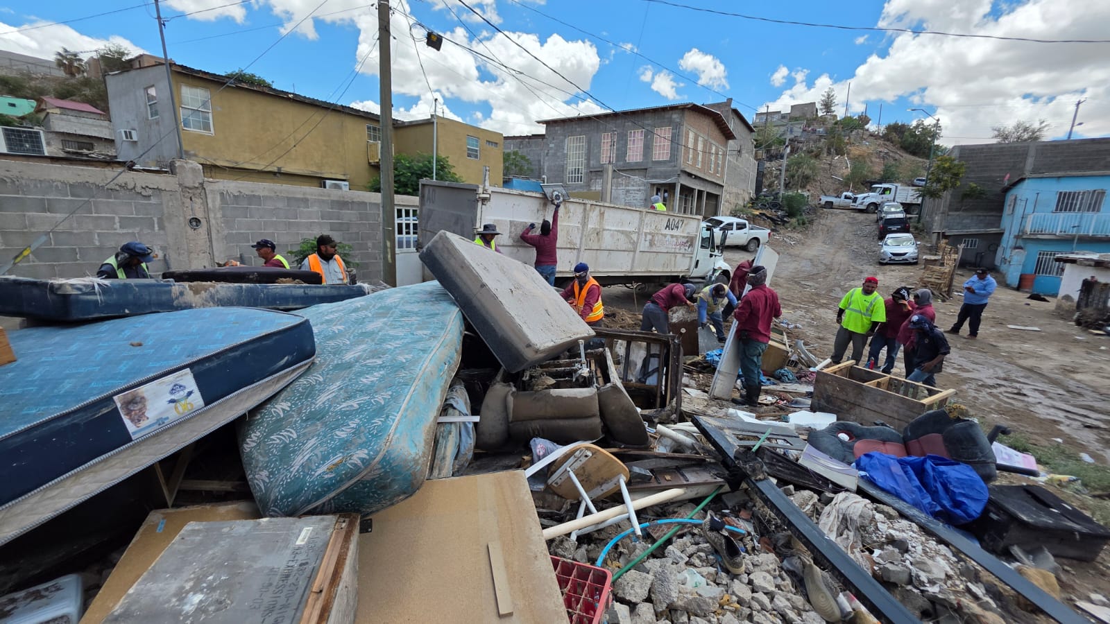 Comentó que la Dirección de Limpia empezó labores desde el primer día atendiendo lo más complicado y urgente retirando el azolve, lodo, basura y escombro de las calles.