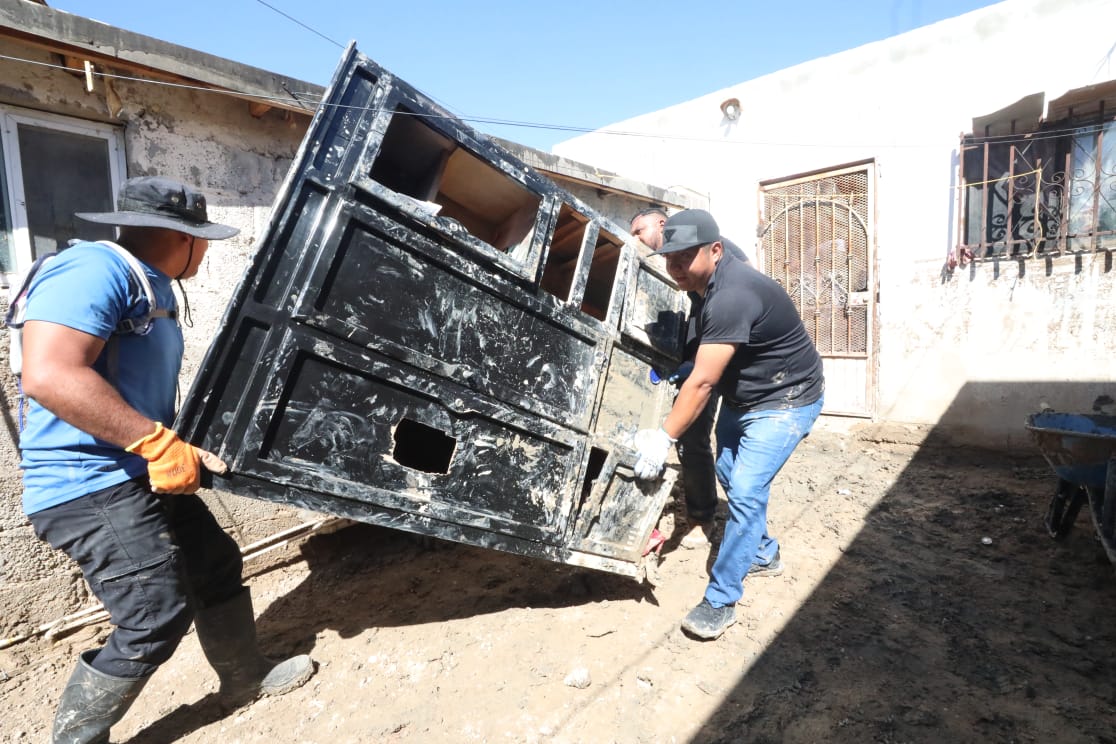 Mencionó que desde hace una semana no había ingresado a su casa porque el lodo bloqueó la puerta y era imposible abrir la puerta. Ayer acudió con personal de la Dirección General de Asentamientos Humanos a solicitar apoyo para limpiar, su sorpresa fue que acudieron de forma inmediata al día siguiente, incluso llegaron media hora antes que ella para iniciar con las labores.